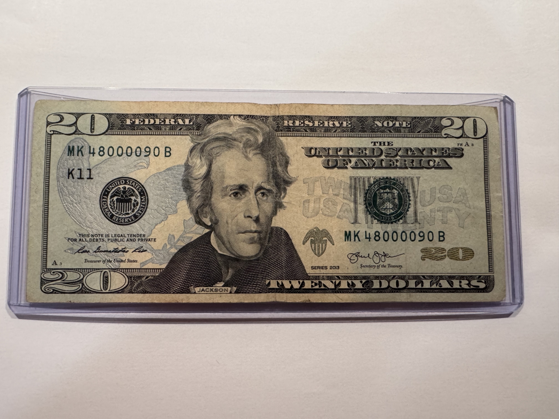 Rare United States Jackson $20.00 Bill - 5 OF A KIND SERIAL NUMBER - Mint Condition In Holder