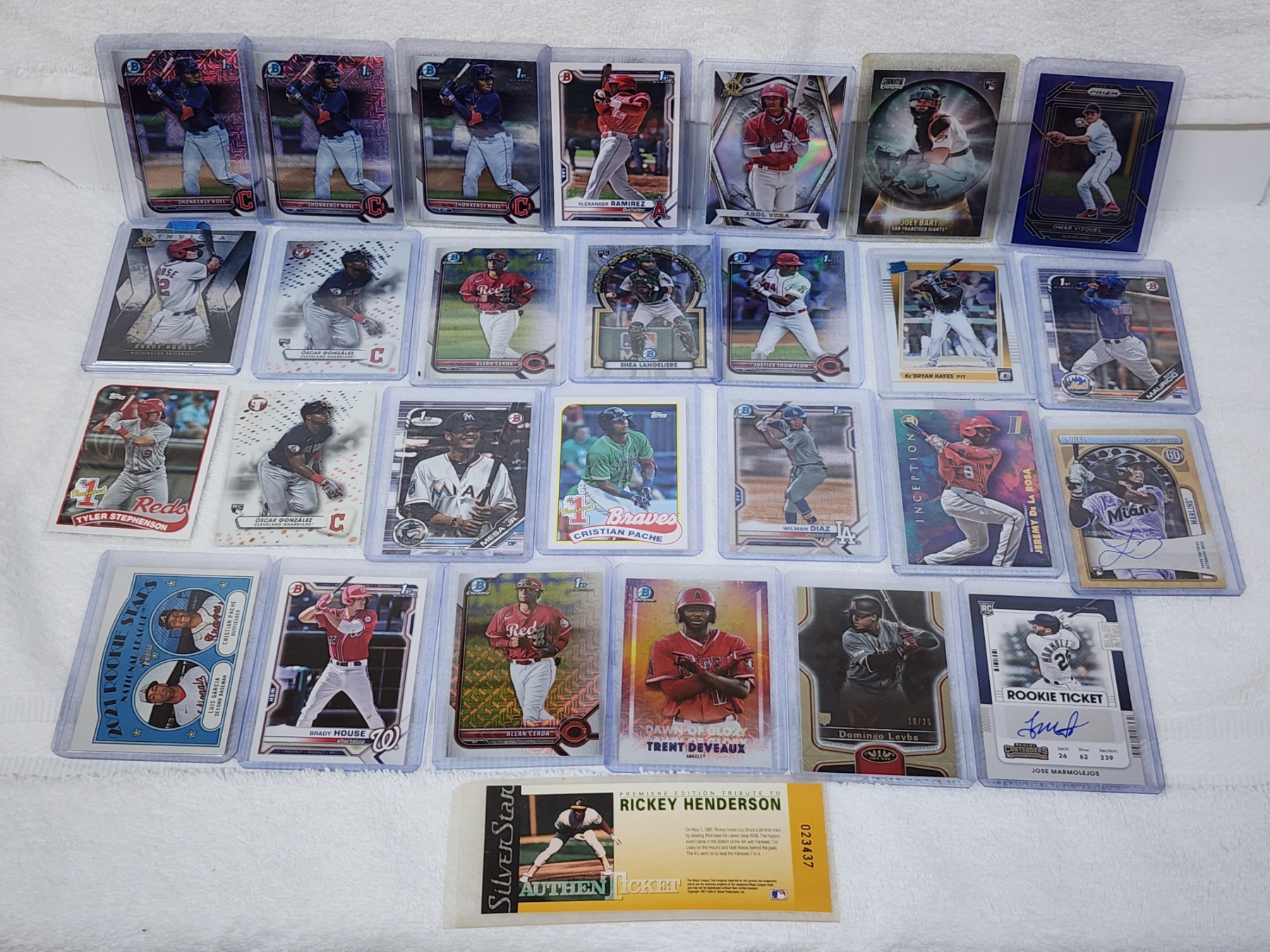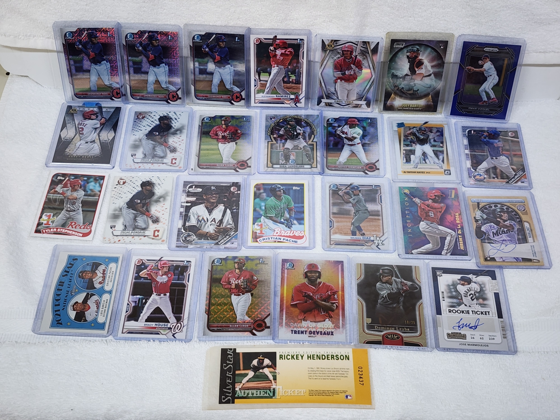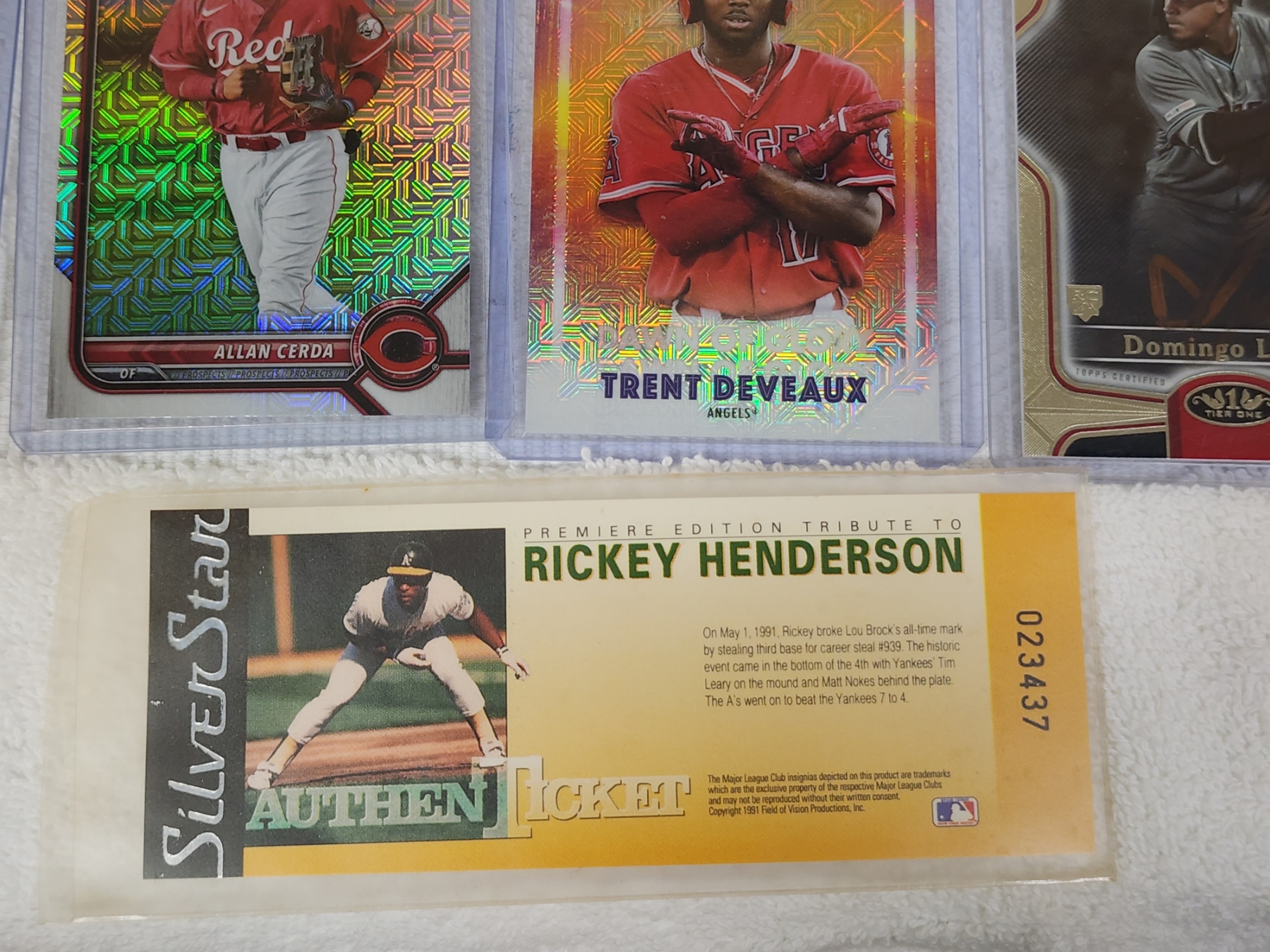 Rickey Henderson Tribute Ticket With Large Assortment of Rookie Baseball Trading Cards!