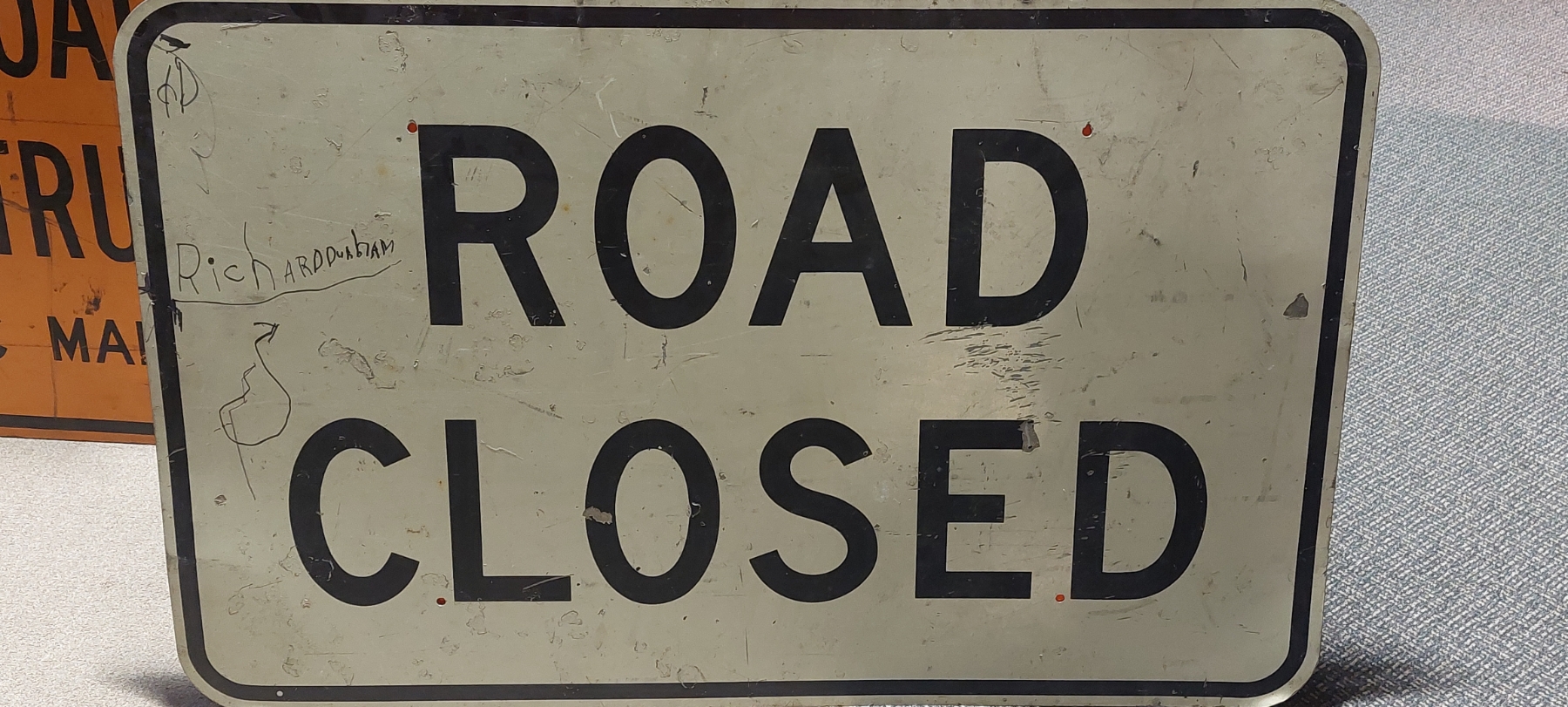 Road Sign - LARGE 48 x 30 Wood With Overlay "Road Closed" Sign - See Pics