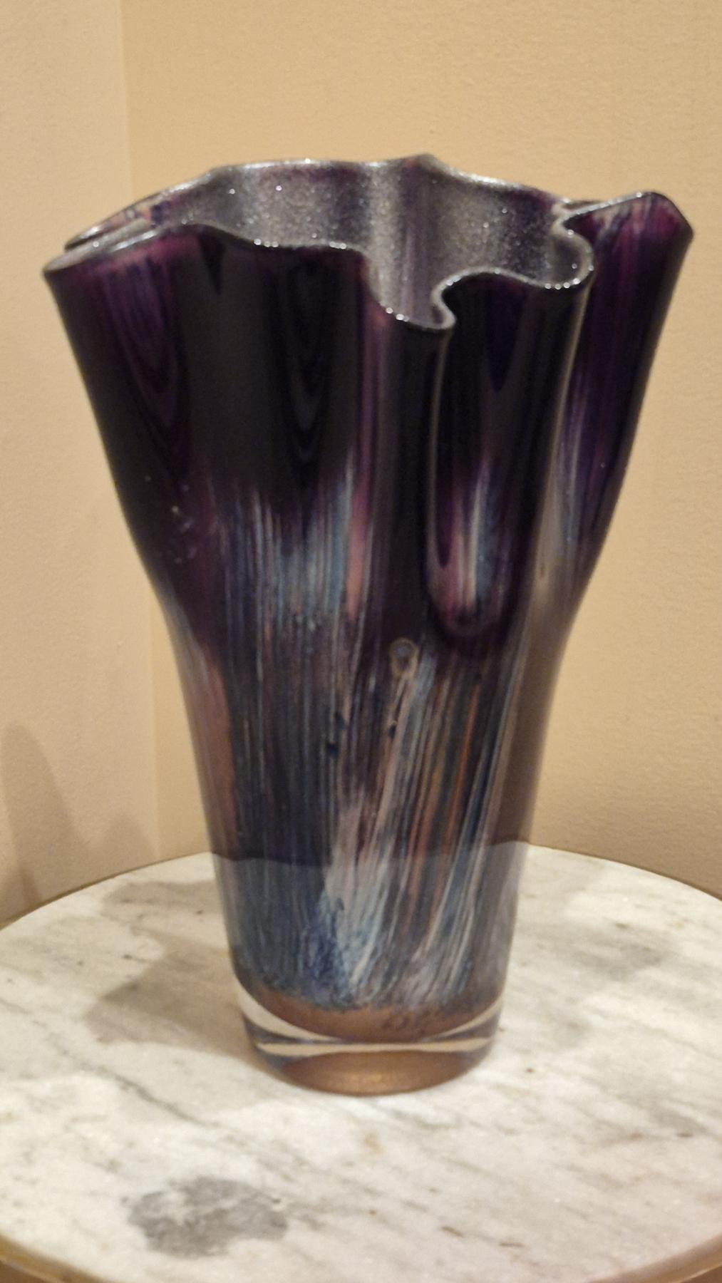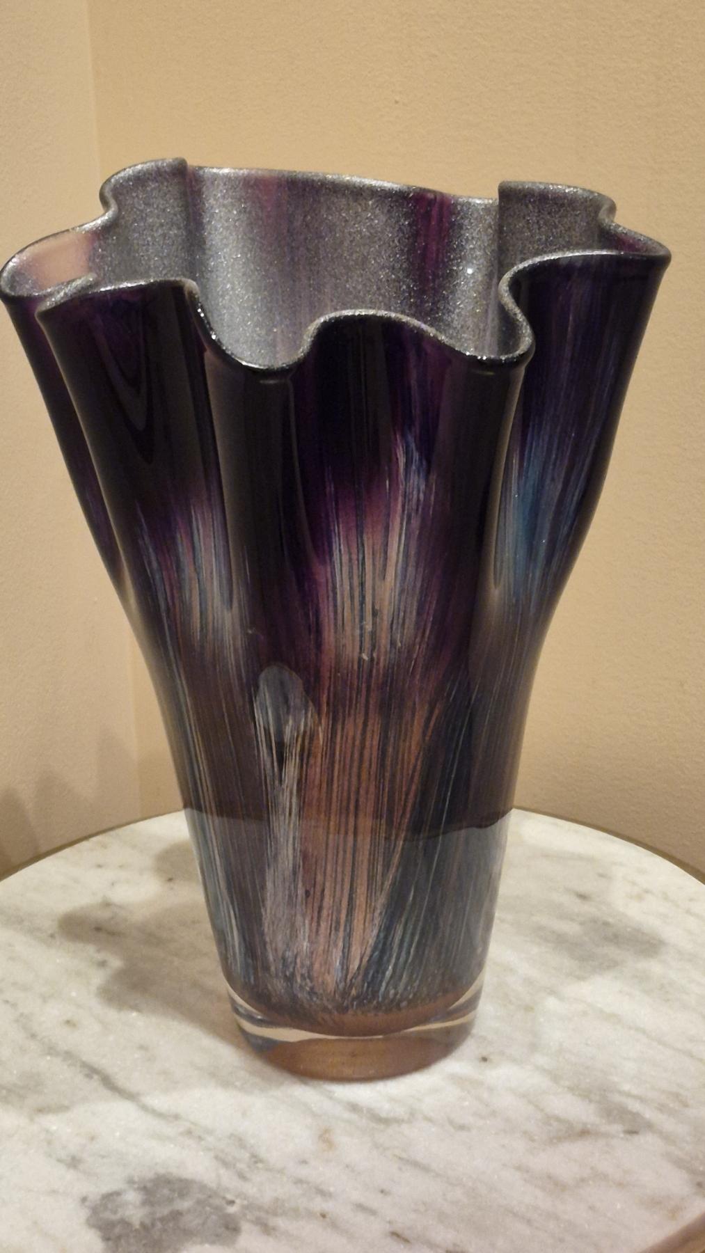 Ruffled Edge Free Form Carnival Color Vase - 14" Tall - Perfect Condition