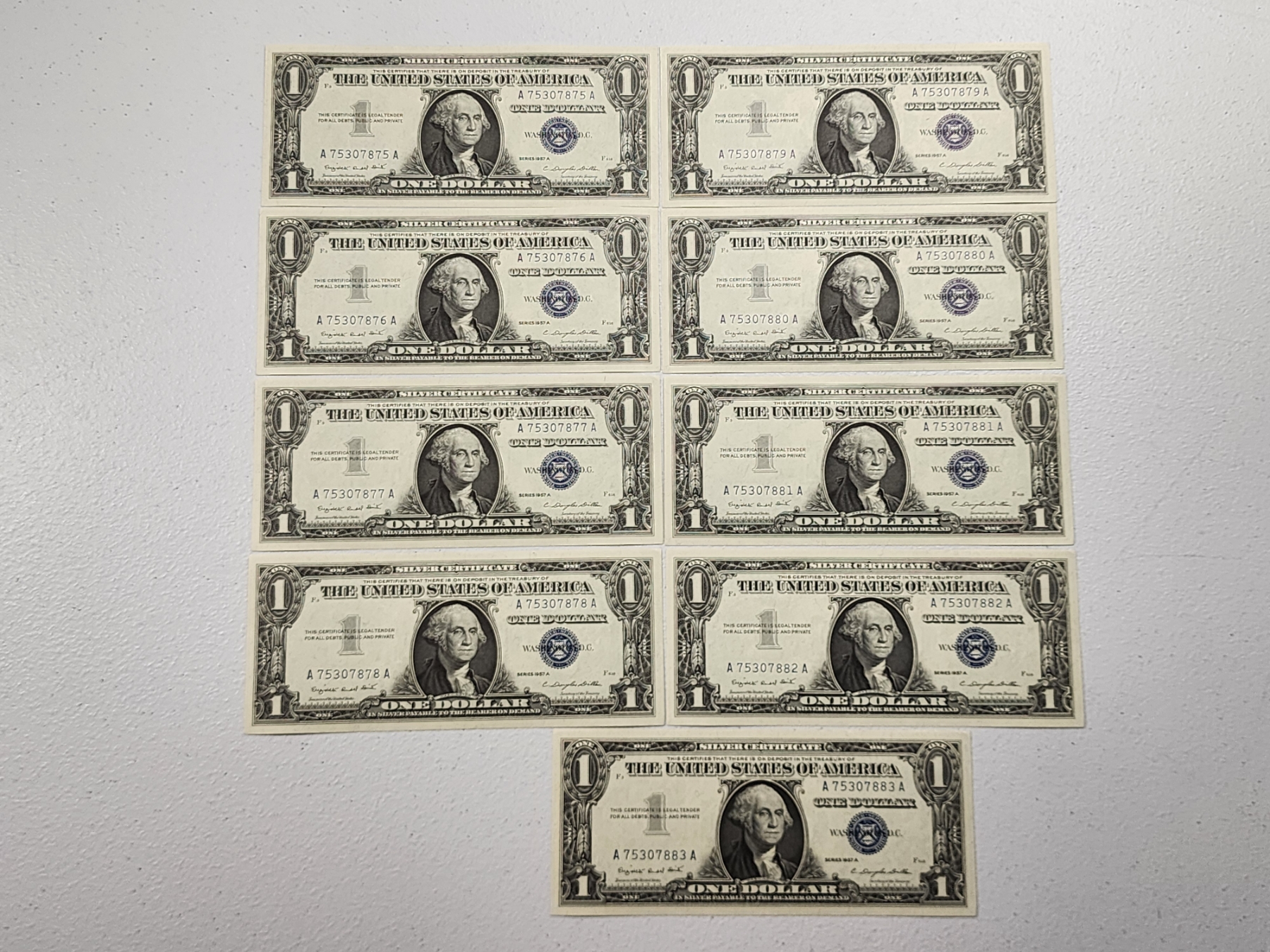 SEQUENTIAL LOT! (9) 1957-A United States $1 Blue Seal Silver Certificates