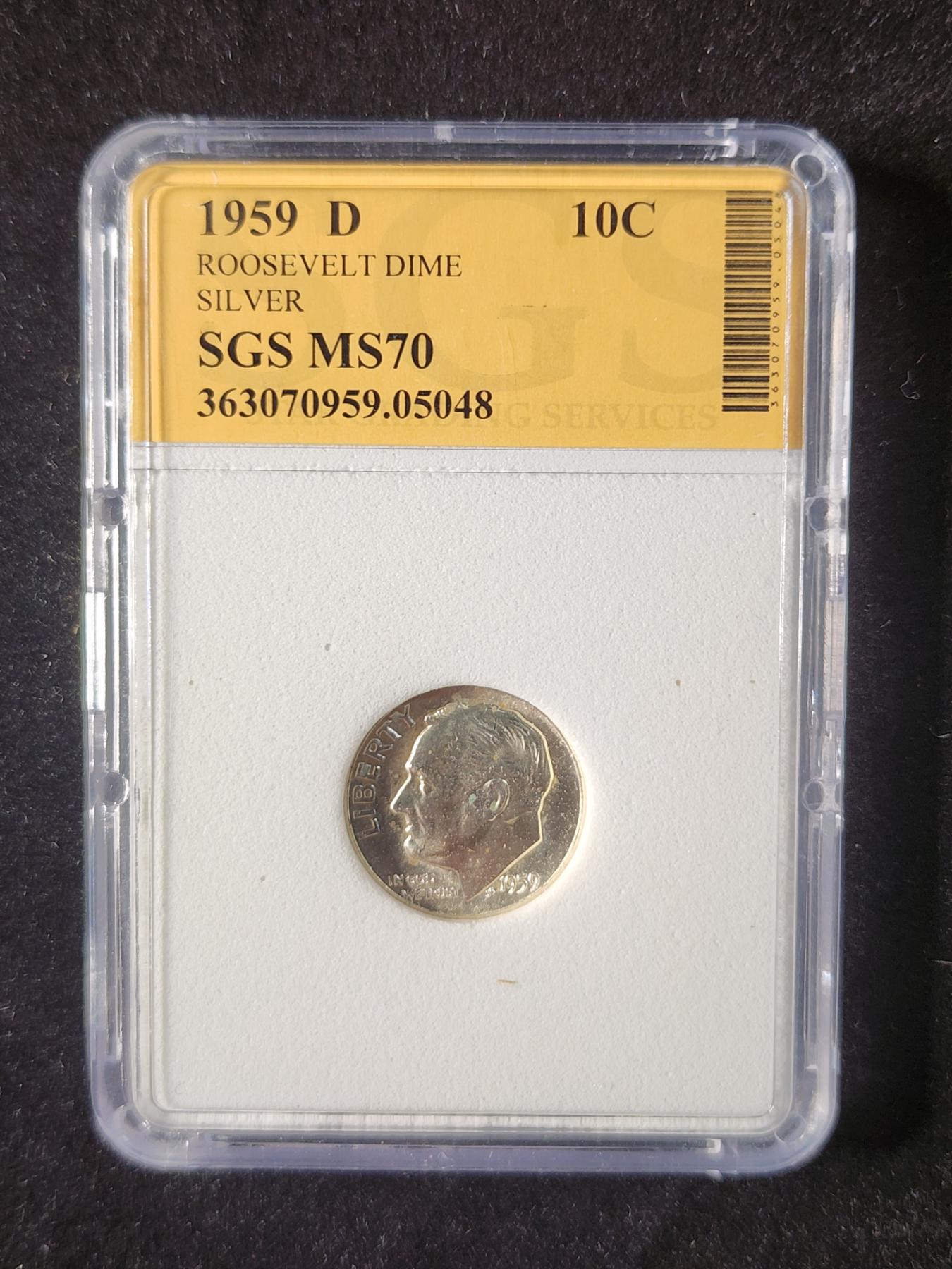 SGS MS70 Graded 1959-D Roosevelt Silver Dime