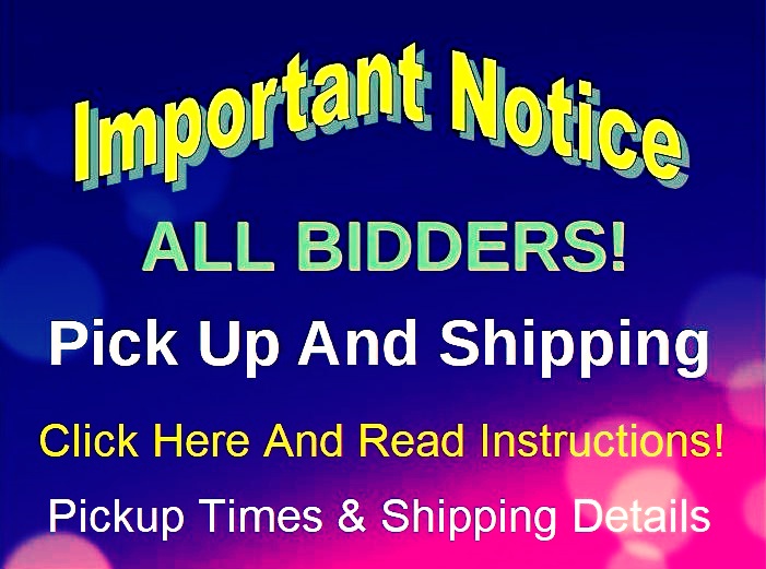 NOTE: If you are the winner of Items Of Large Size Or a Large Number Of Items, we may schedule you specific times for pickup In order to maintain a uniform flow of customers picking up items on "Pick Up Day".
