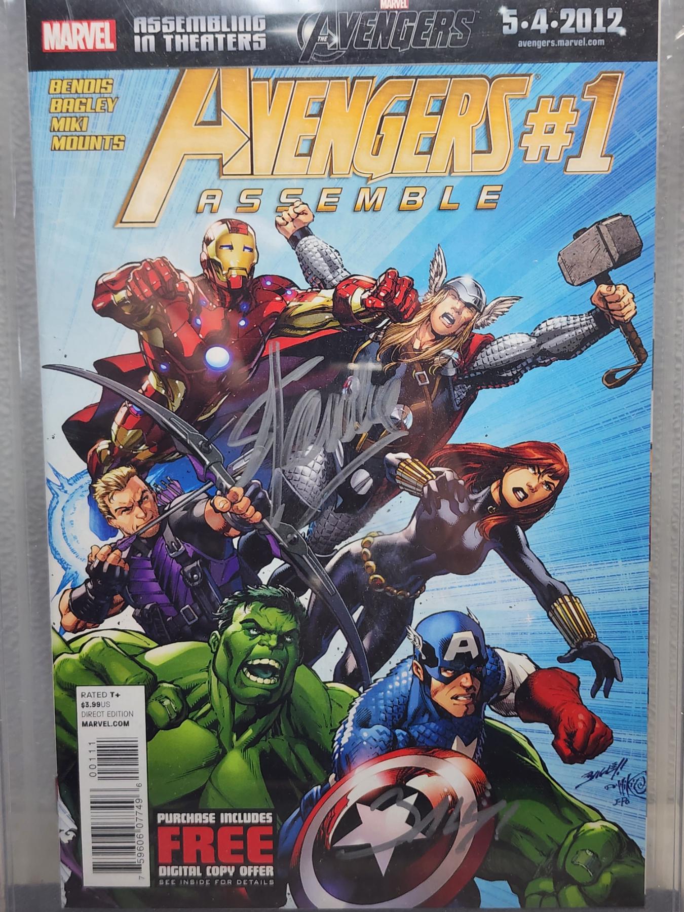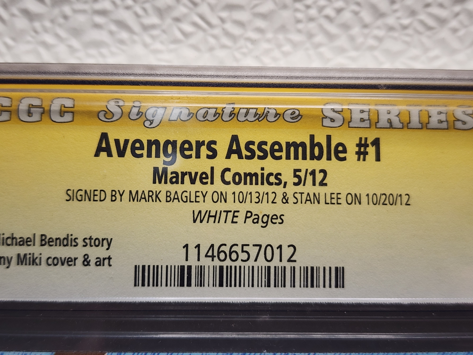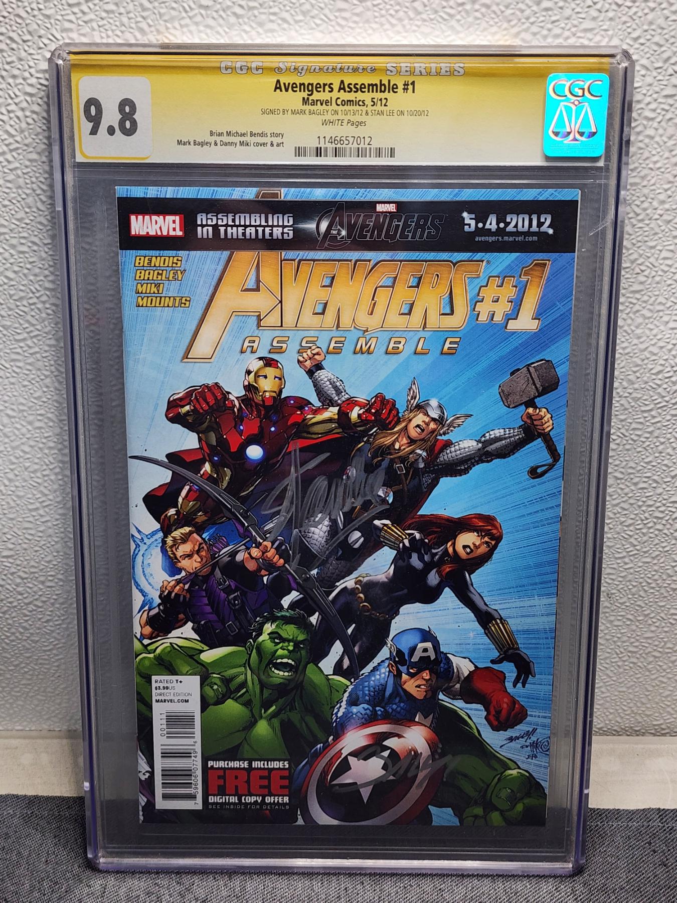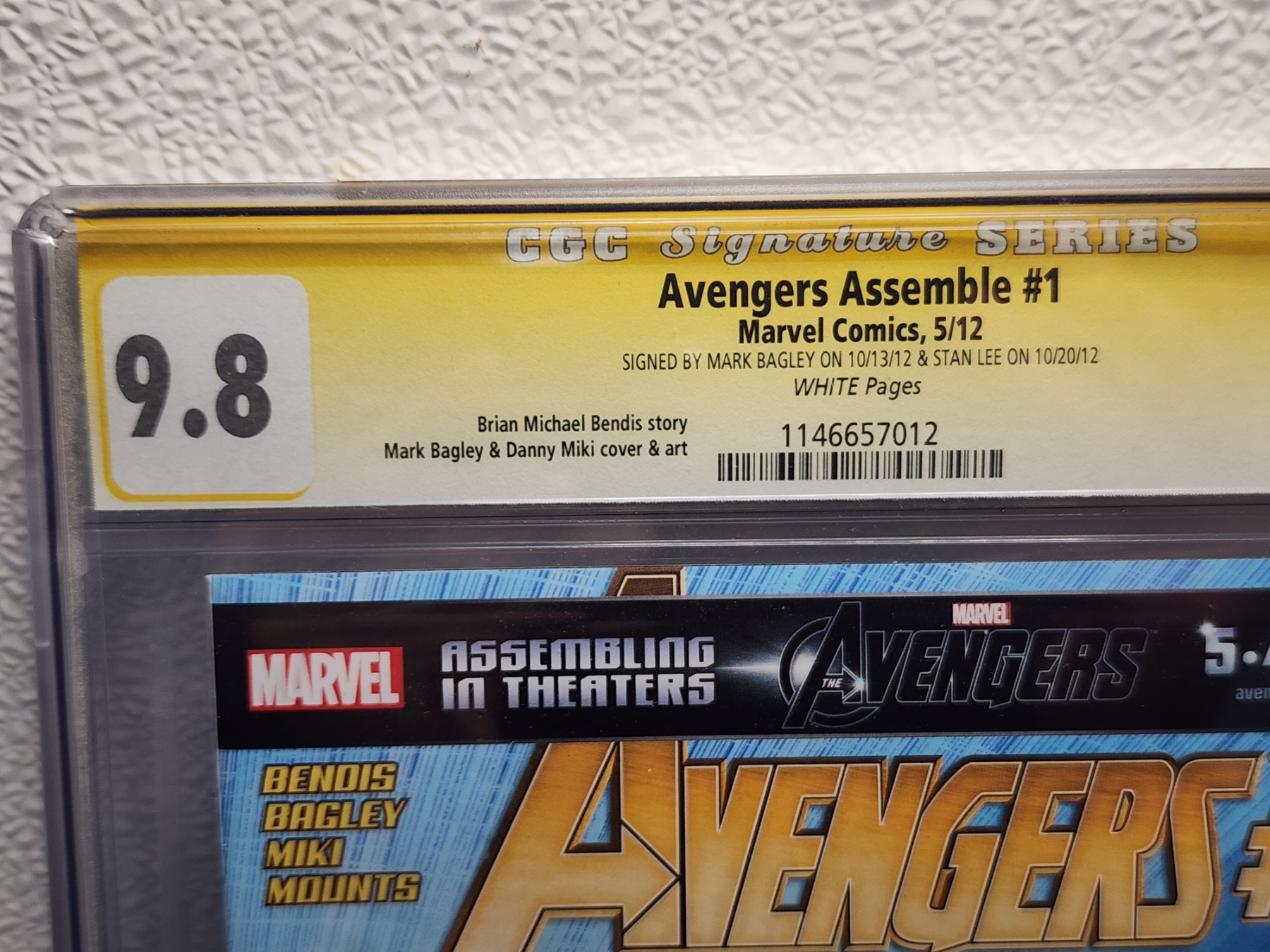 STAN LEE AUTOGRAPHED Avengers Assemble #1 Marvel Comics 5/12 CGC Graded 9.8 - Also Signed By Artist Mark Bagley