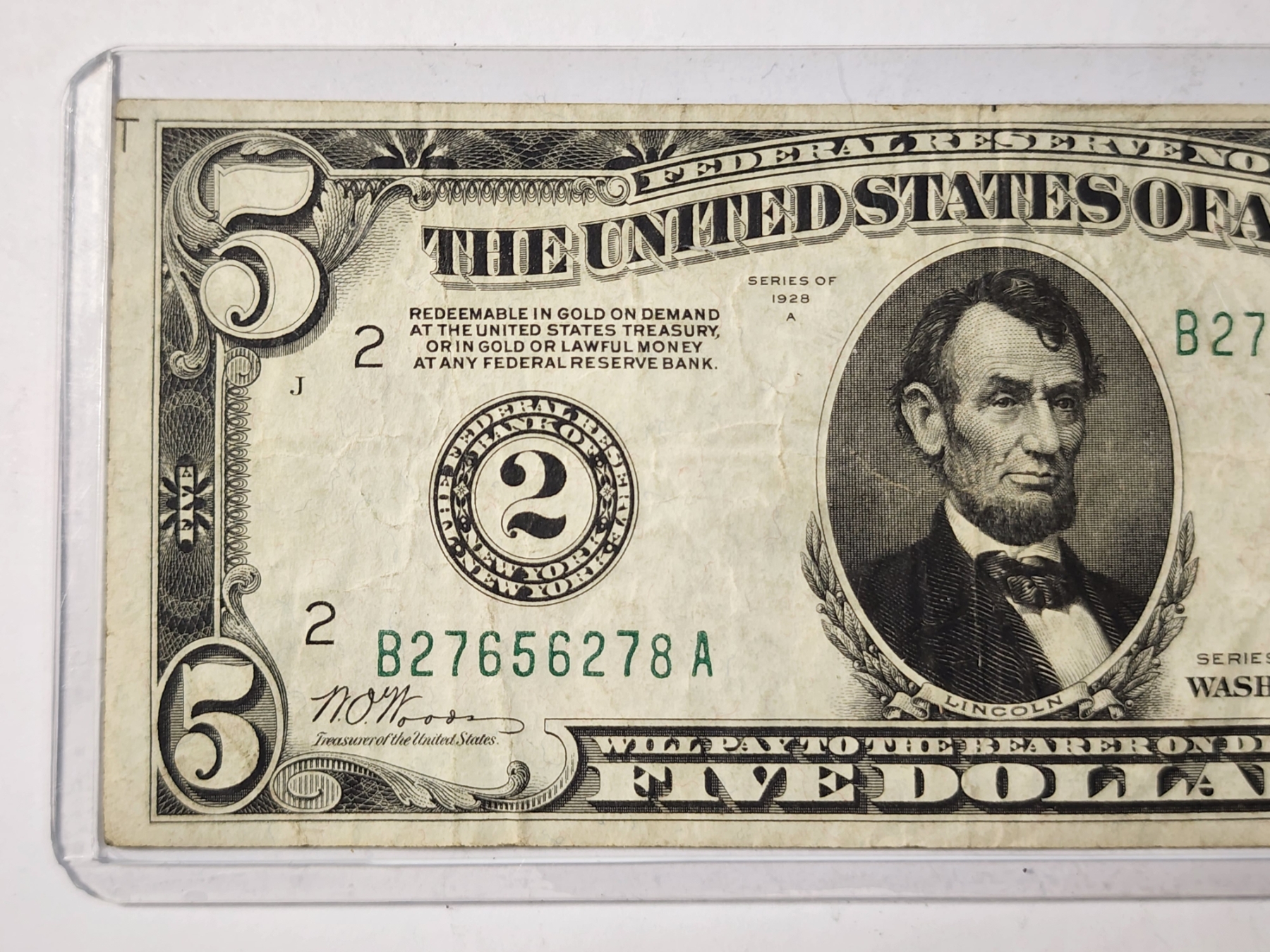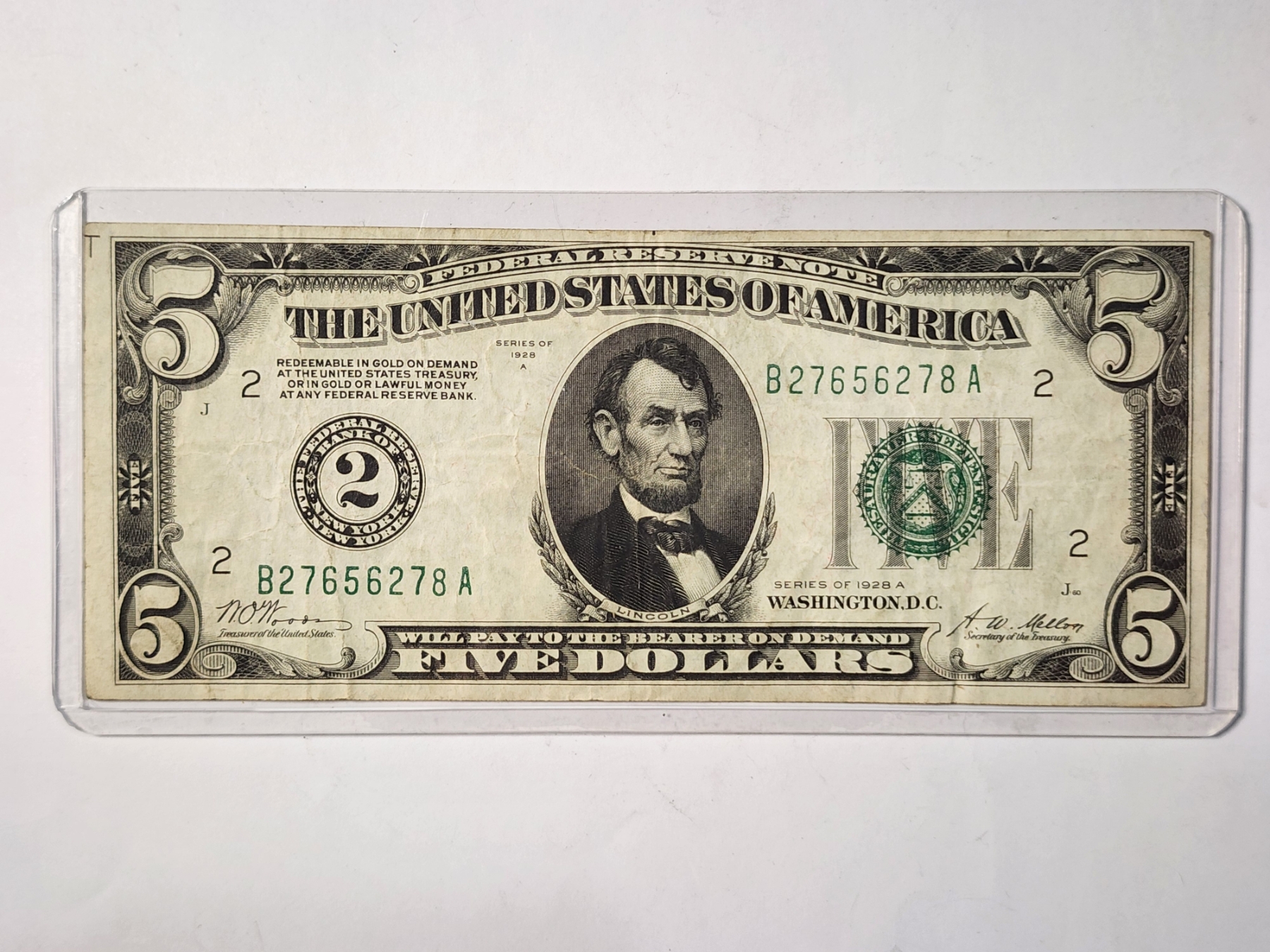 Series of 1928A ~ United States Federal Reserve $5 Bank of New York Redeemable in Gold Note ~ Hard To Find Note Perfect for Any Collector!