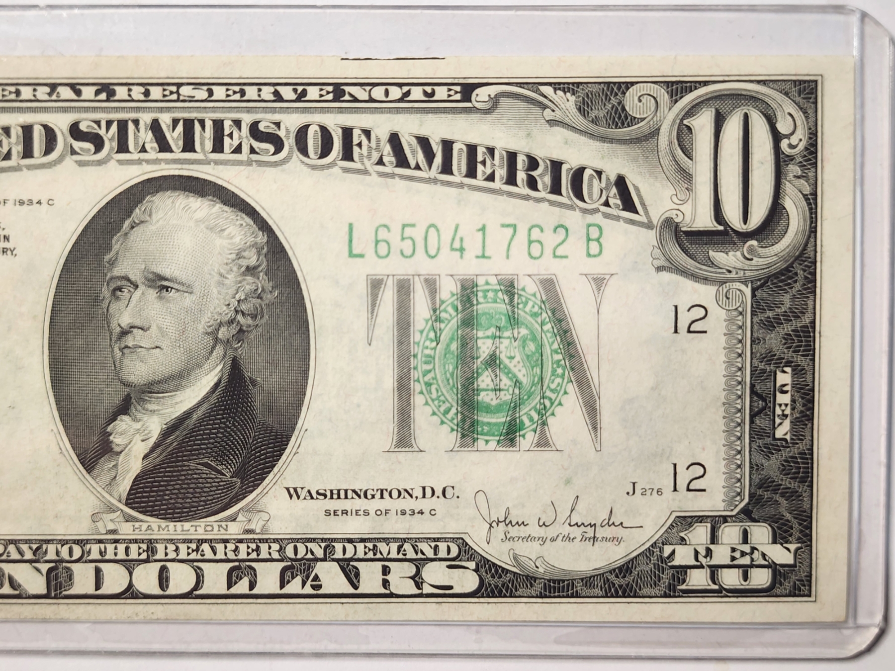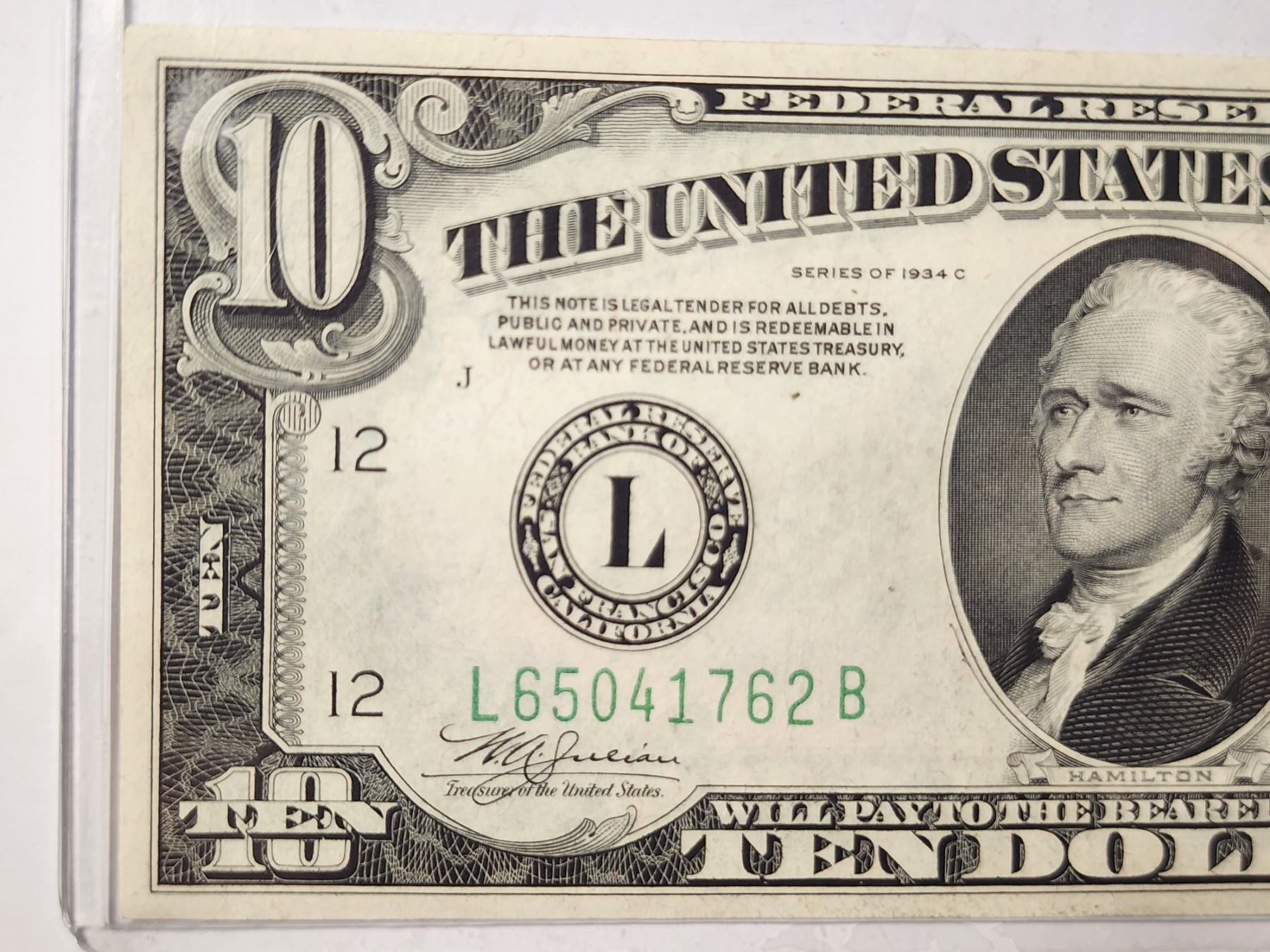 Series of 1934C ~ United States Federal Reserve $10 Bank of San Francisco Note ~ IN EXCELLENT CONDITION!