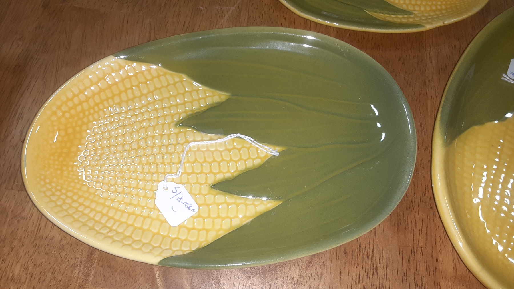 Set Of 3 Vintage Very Desireable "SHAWNEE" Corn Pottery Pear Shaped Platters 10 Inch & 7 1/2 Inch