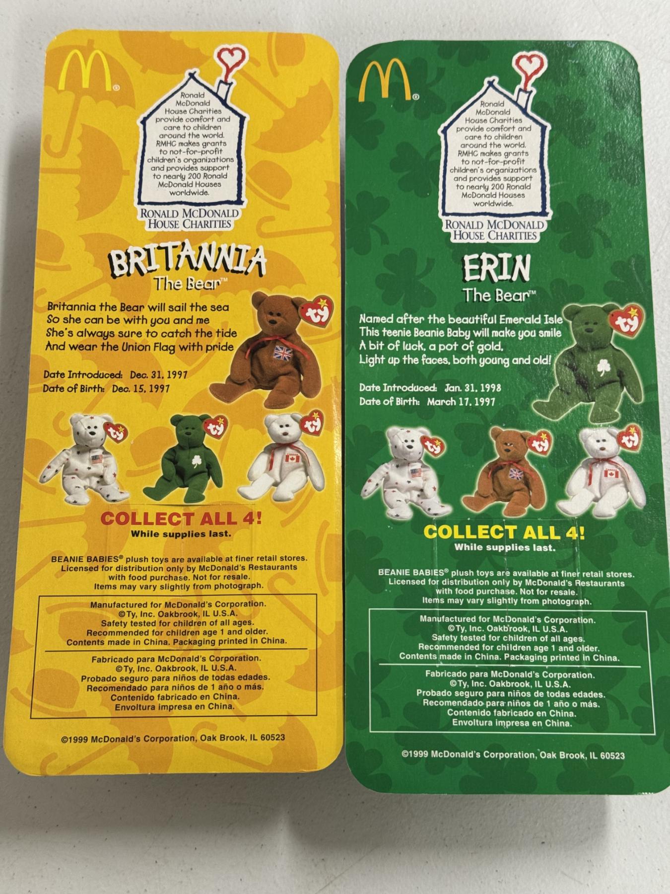 Set of 2 TY Beanie Babies Plush Bears - Britannia And Erin - Brand New In The Packaging