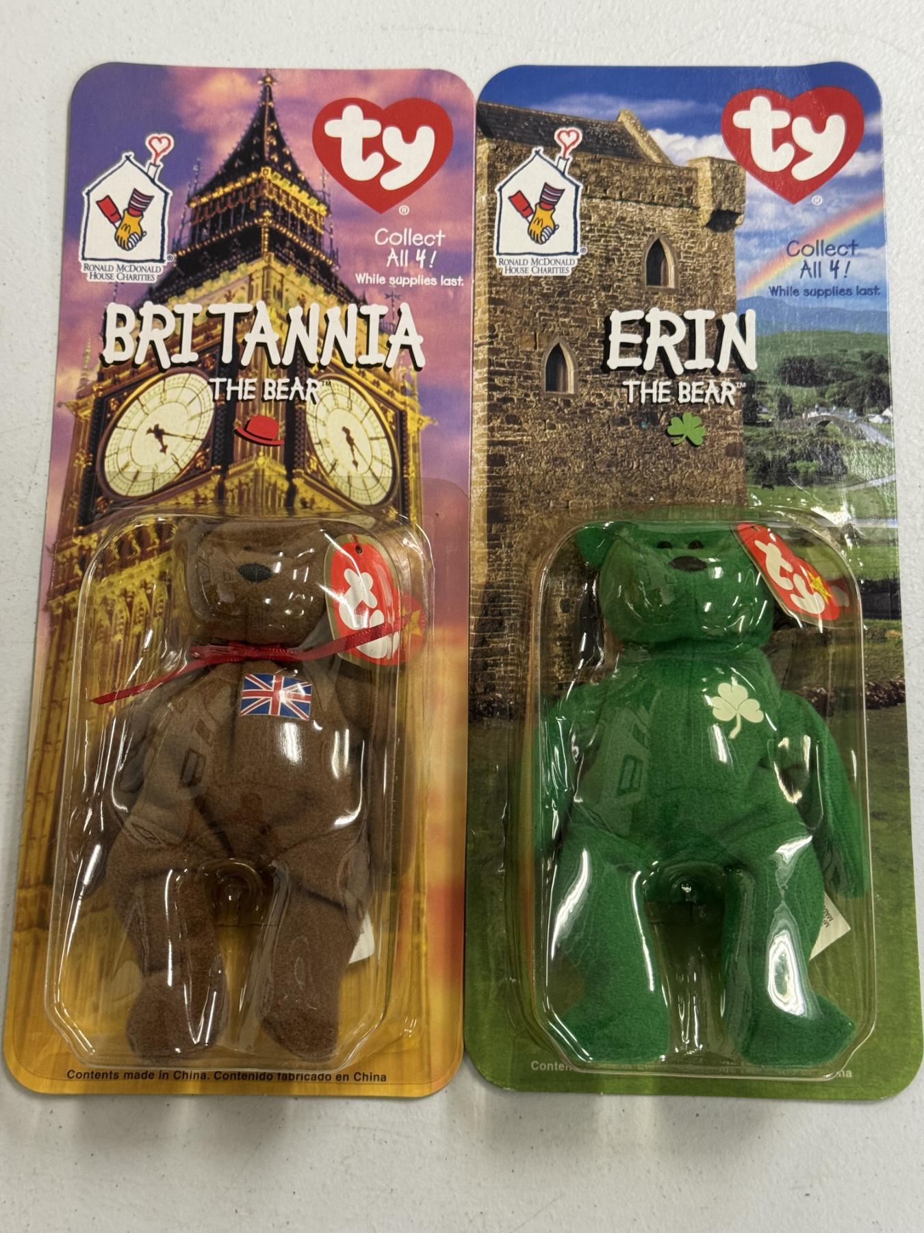 Set of 2 TY Beanie Babies Plush Bears - Britannia And Erin - Brand New In The Packaging