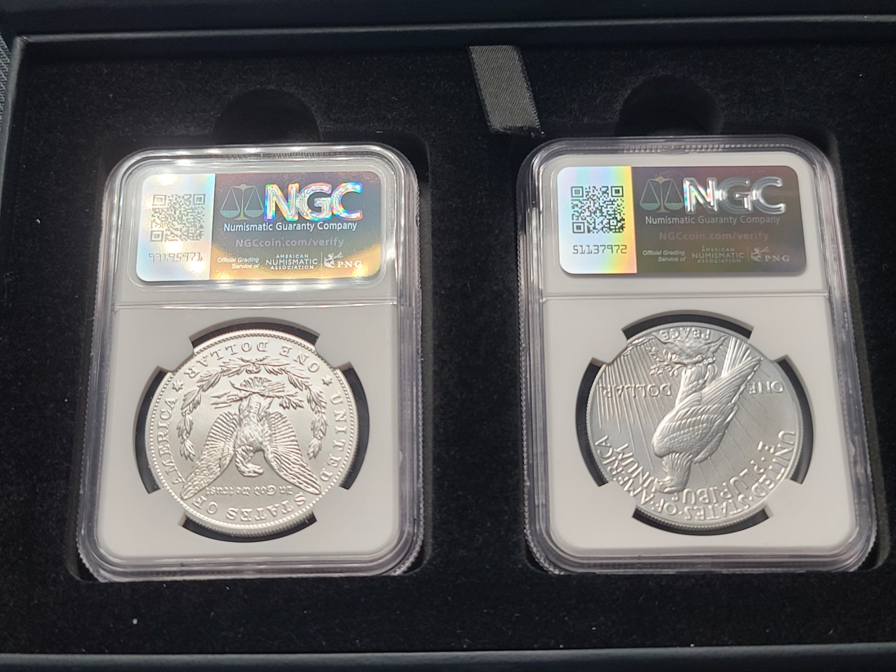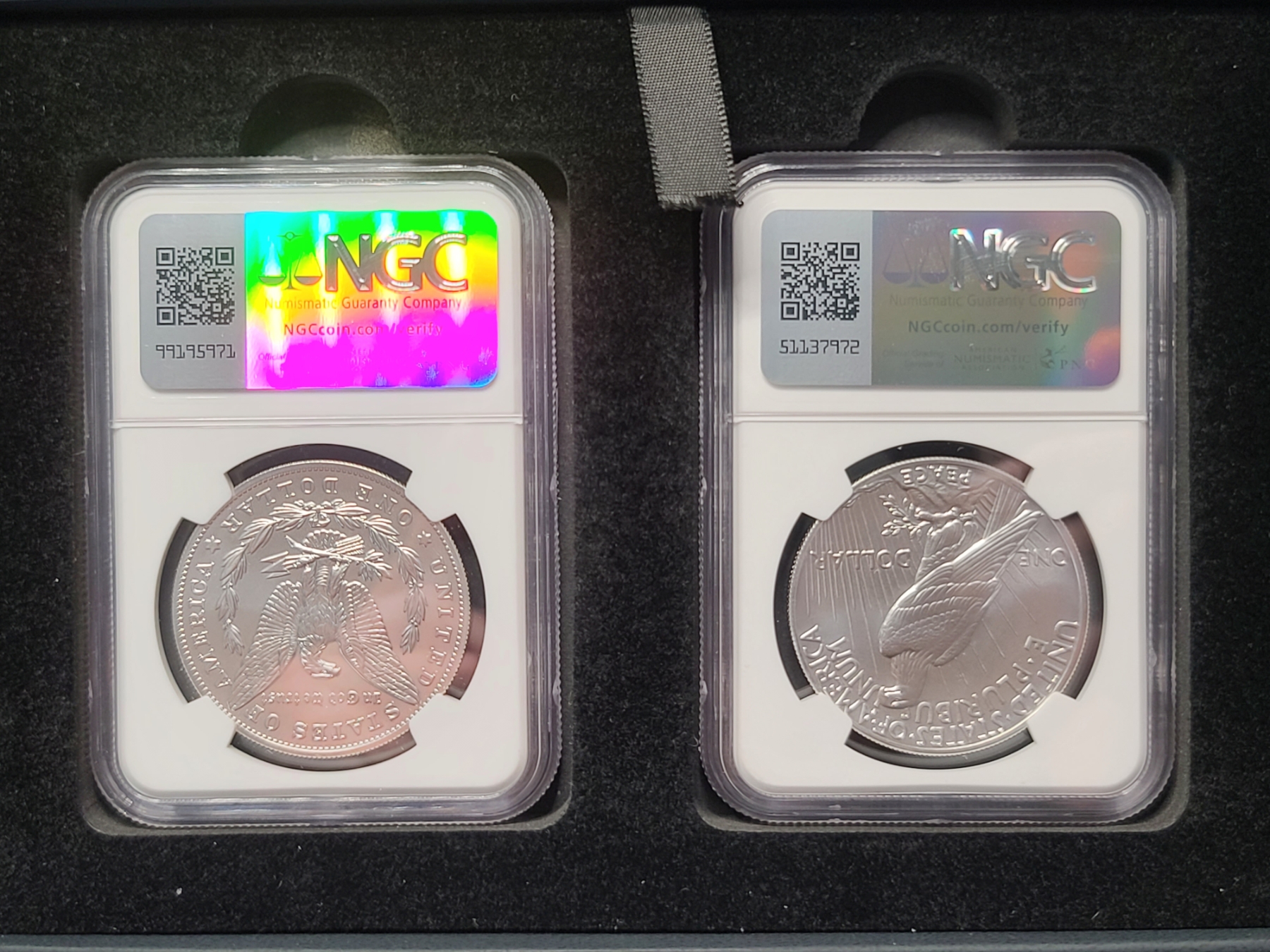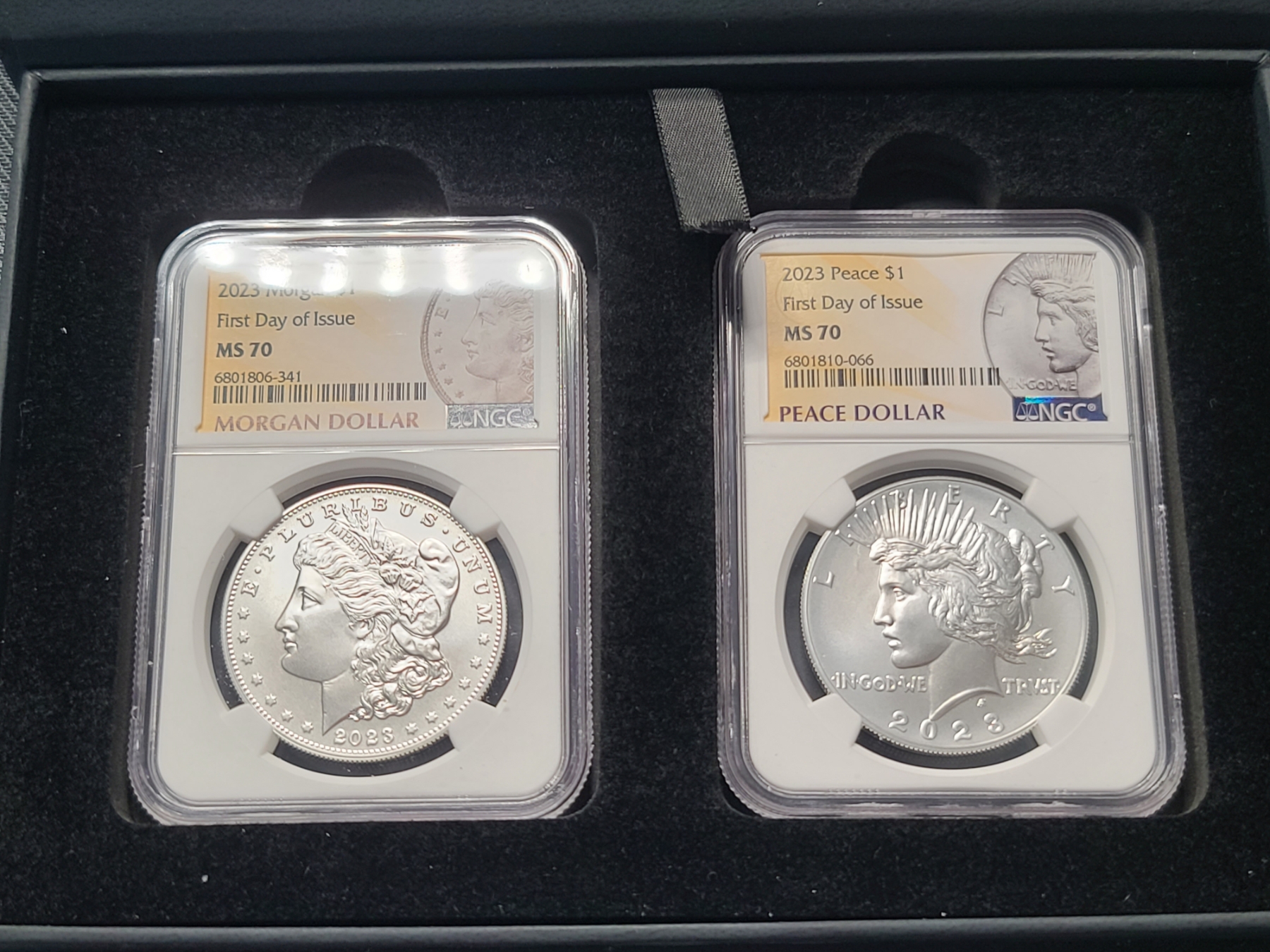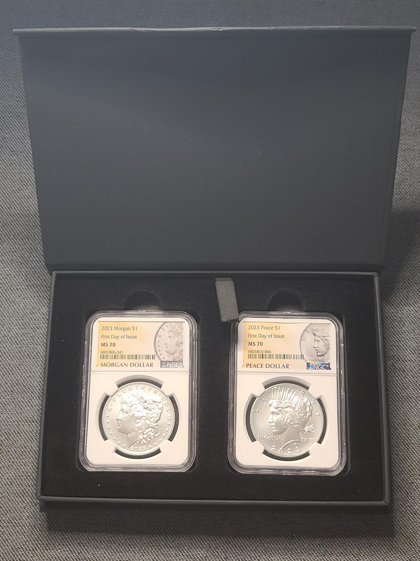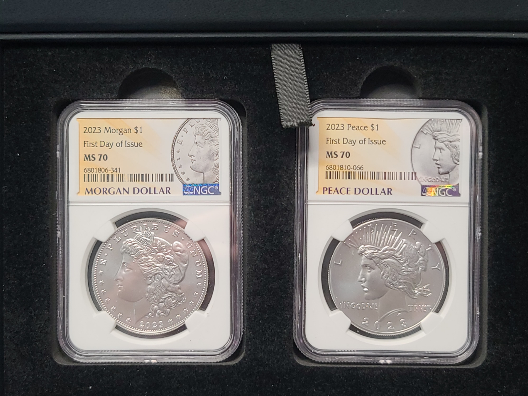 Set of Two 2023 NGC MS70 Morgan & Peace Silver Dollars - First Day of Issue - INCREDIBLE SET!