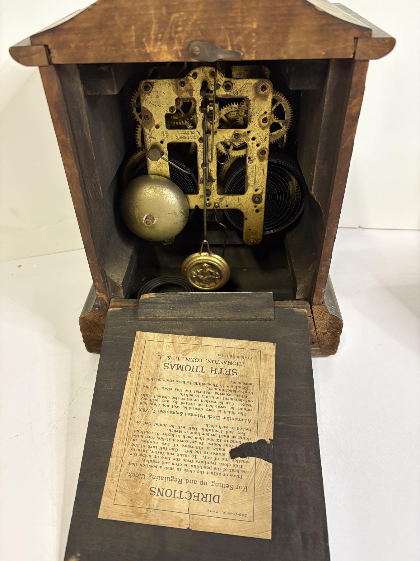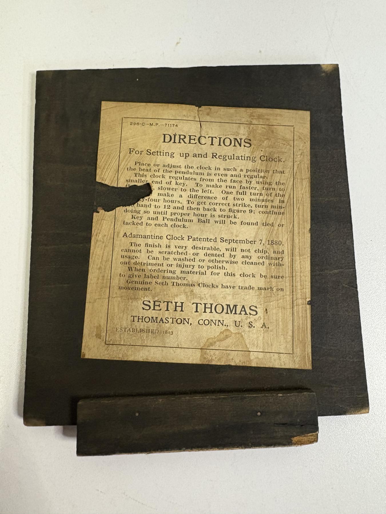 Seth Thomas Clock Thomaston, Conn., U.S.A - Adamantine Clock Patented September 7, 1880