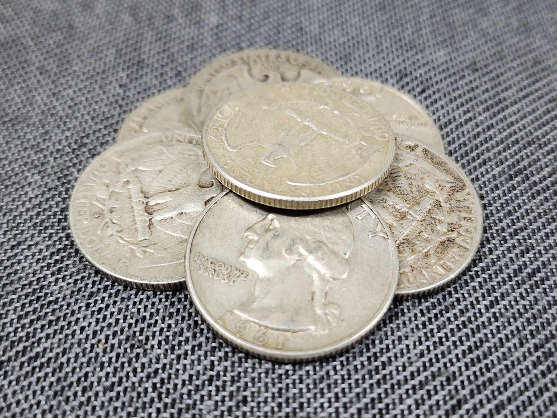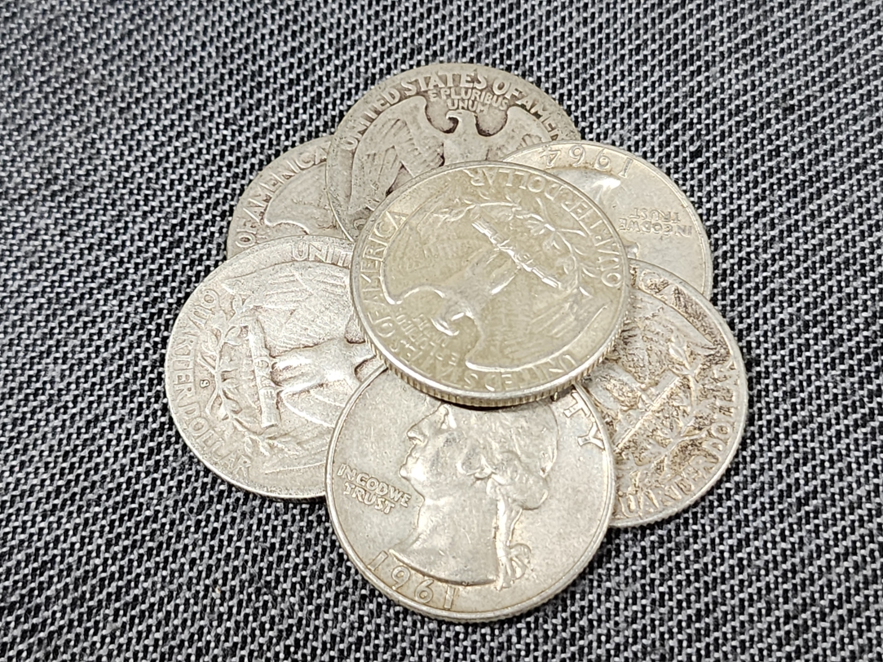 Seven 90% Silver United States Washington Quarter Dollars ~ $1.75 Face Value