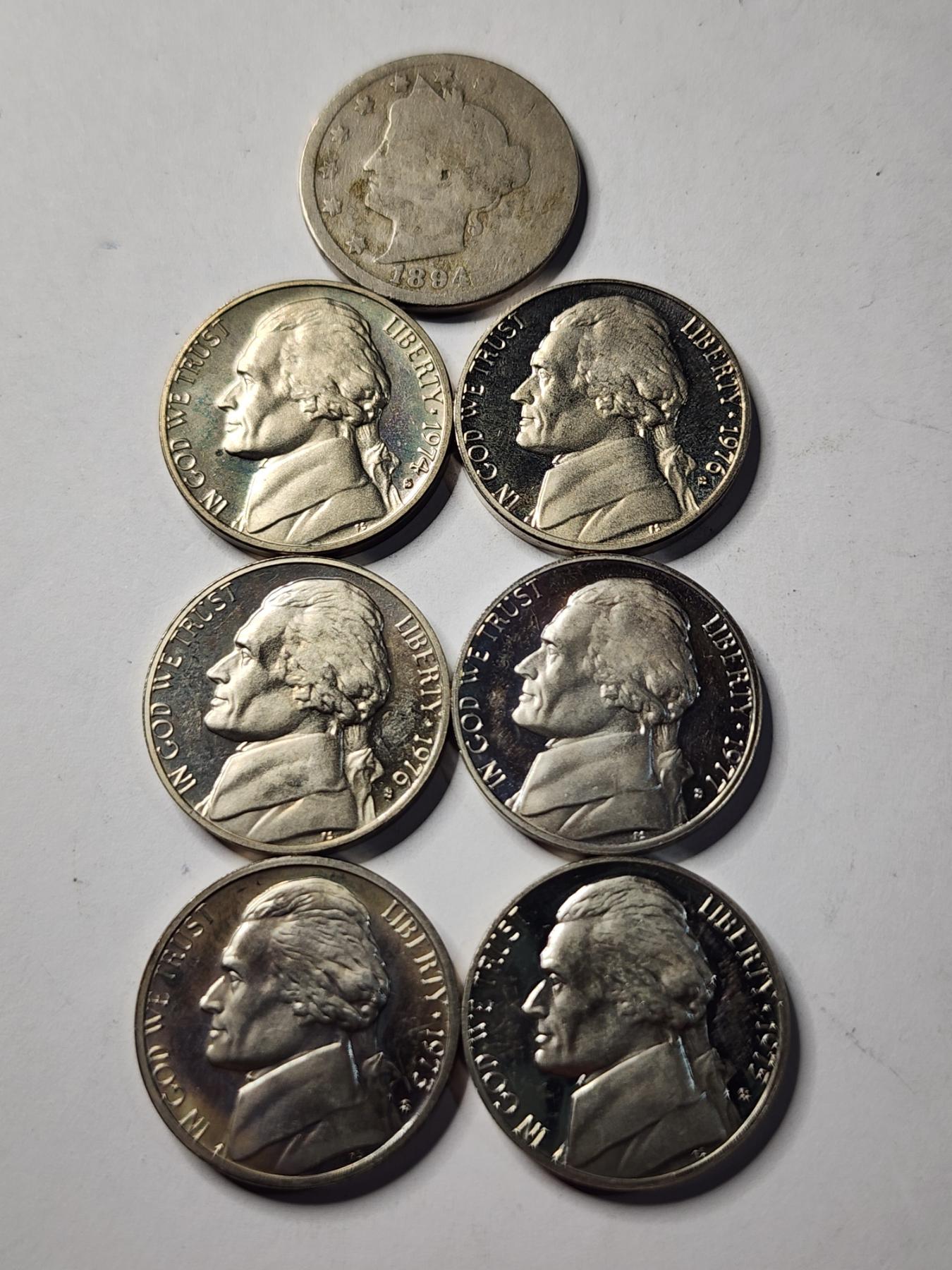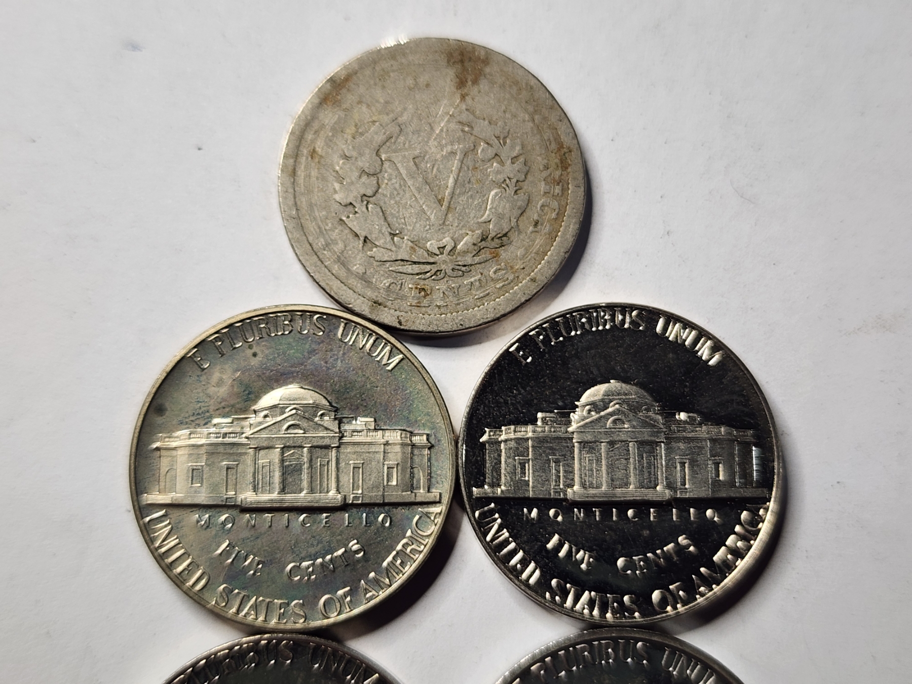 Seven Assorted United States Nickels Ft. Six Proof or Proof-Like Jefferson & 1 Liberty V Nickel!