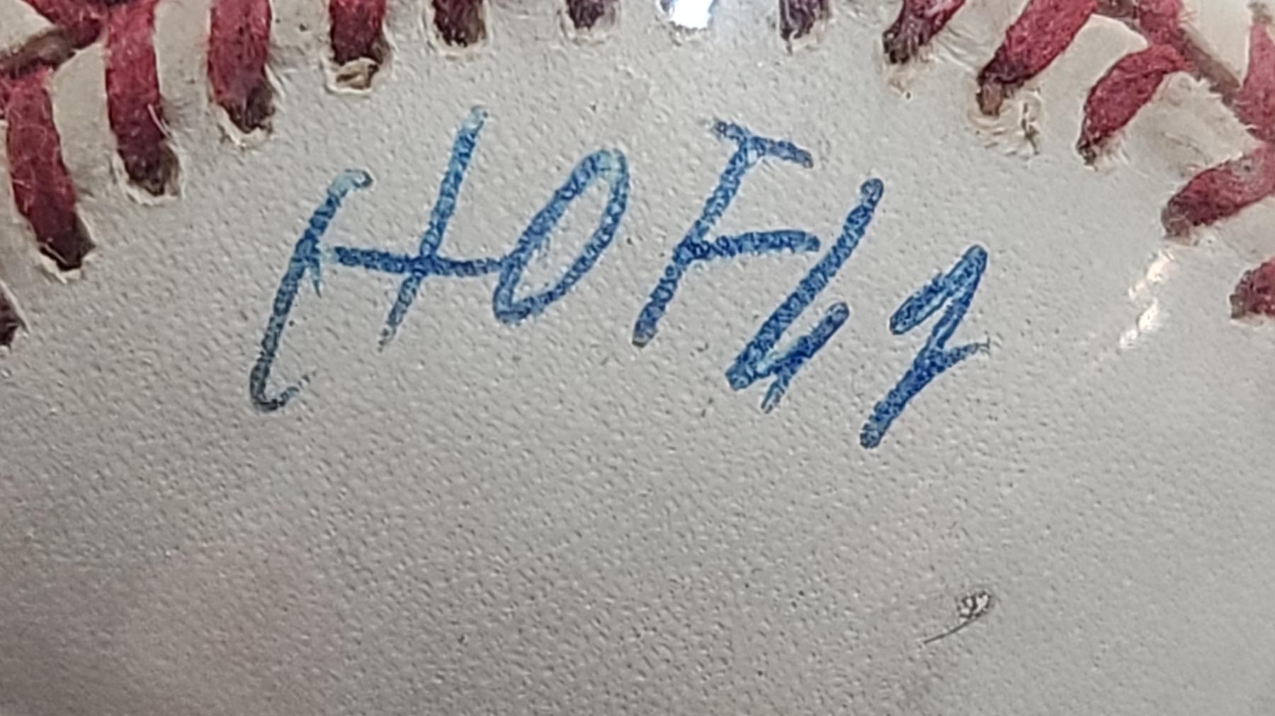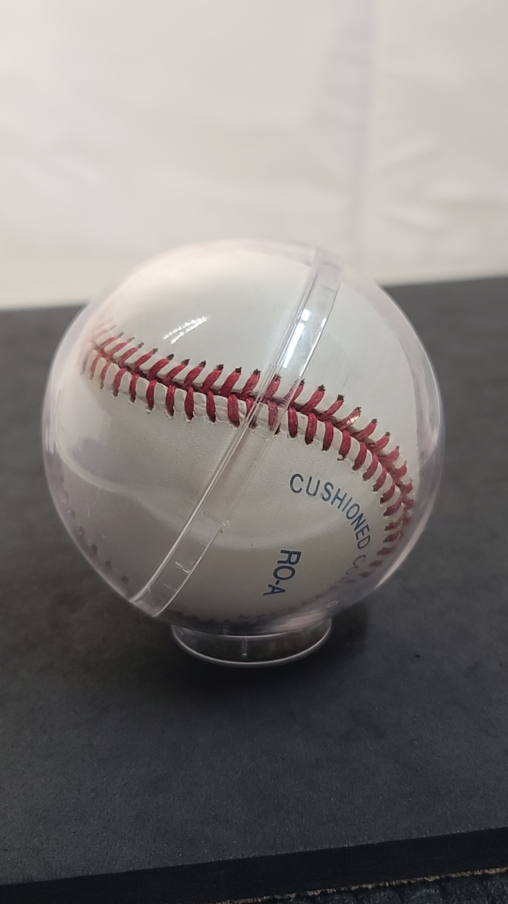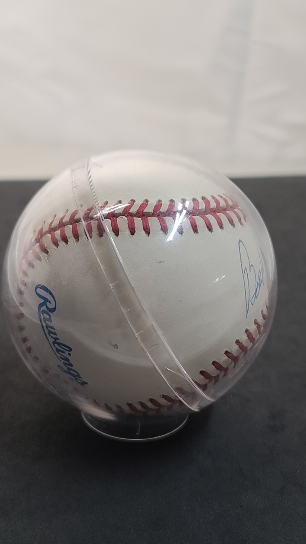 Signed Bob Feller Rawlings HOF Baseball In Ball Display Holder