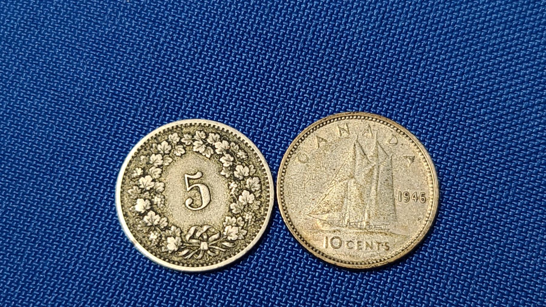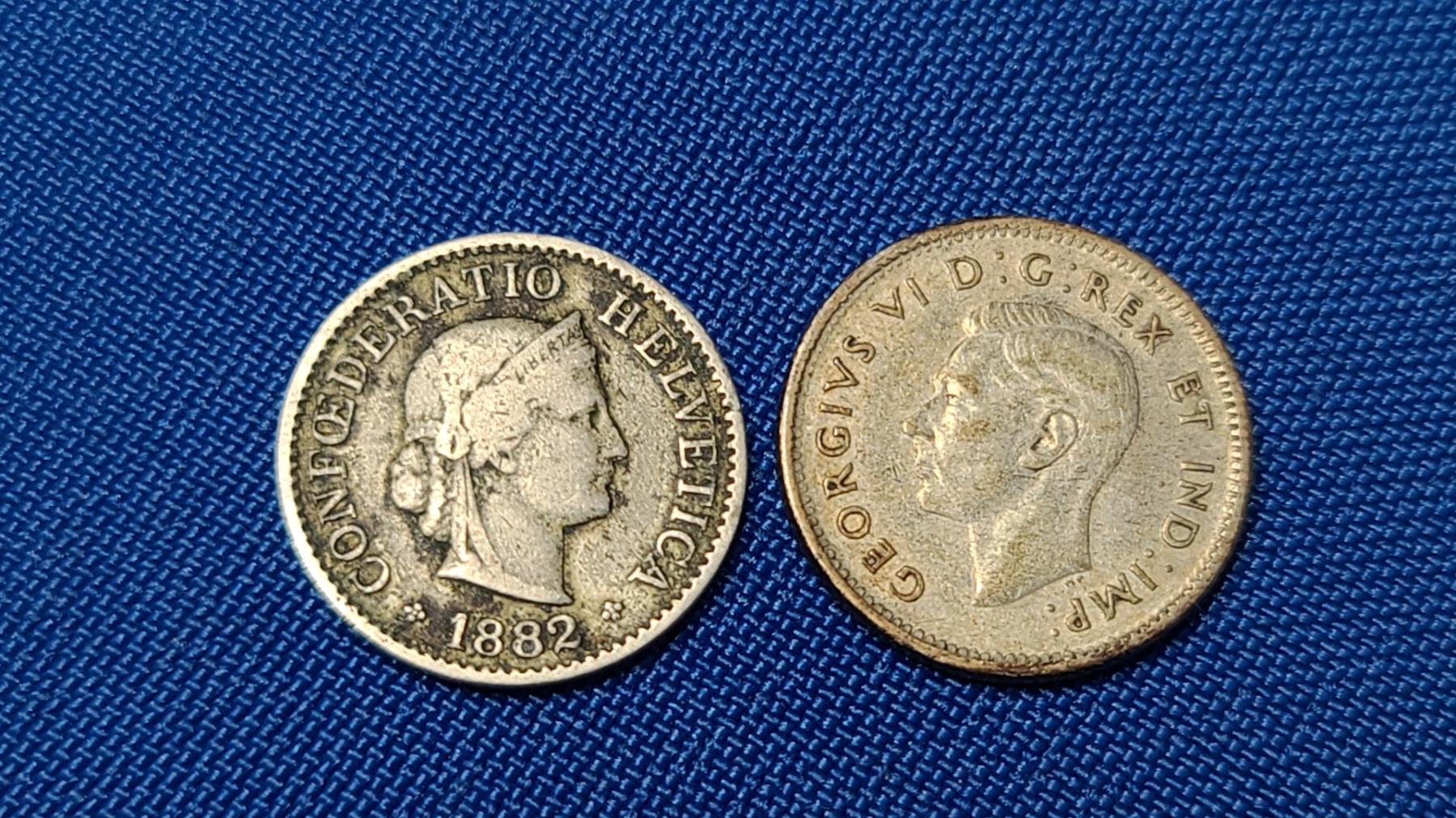Silver 1946 Canadian 10 Cent & 1882 Swiss 5 Rappen Coin (Non-Silver)