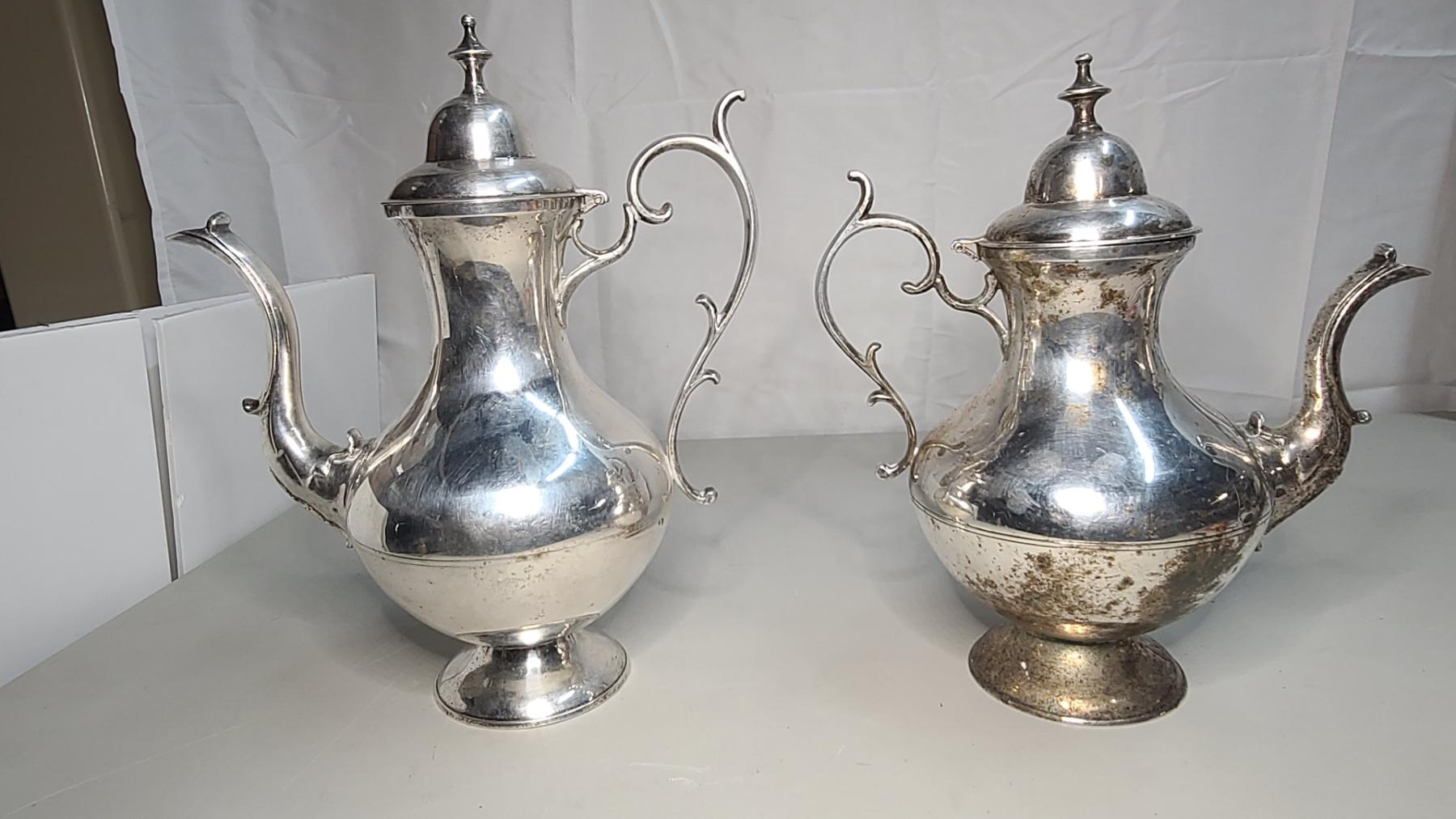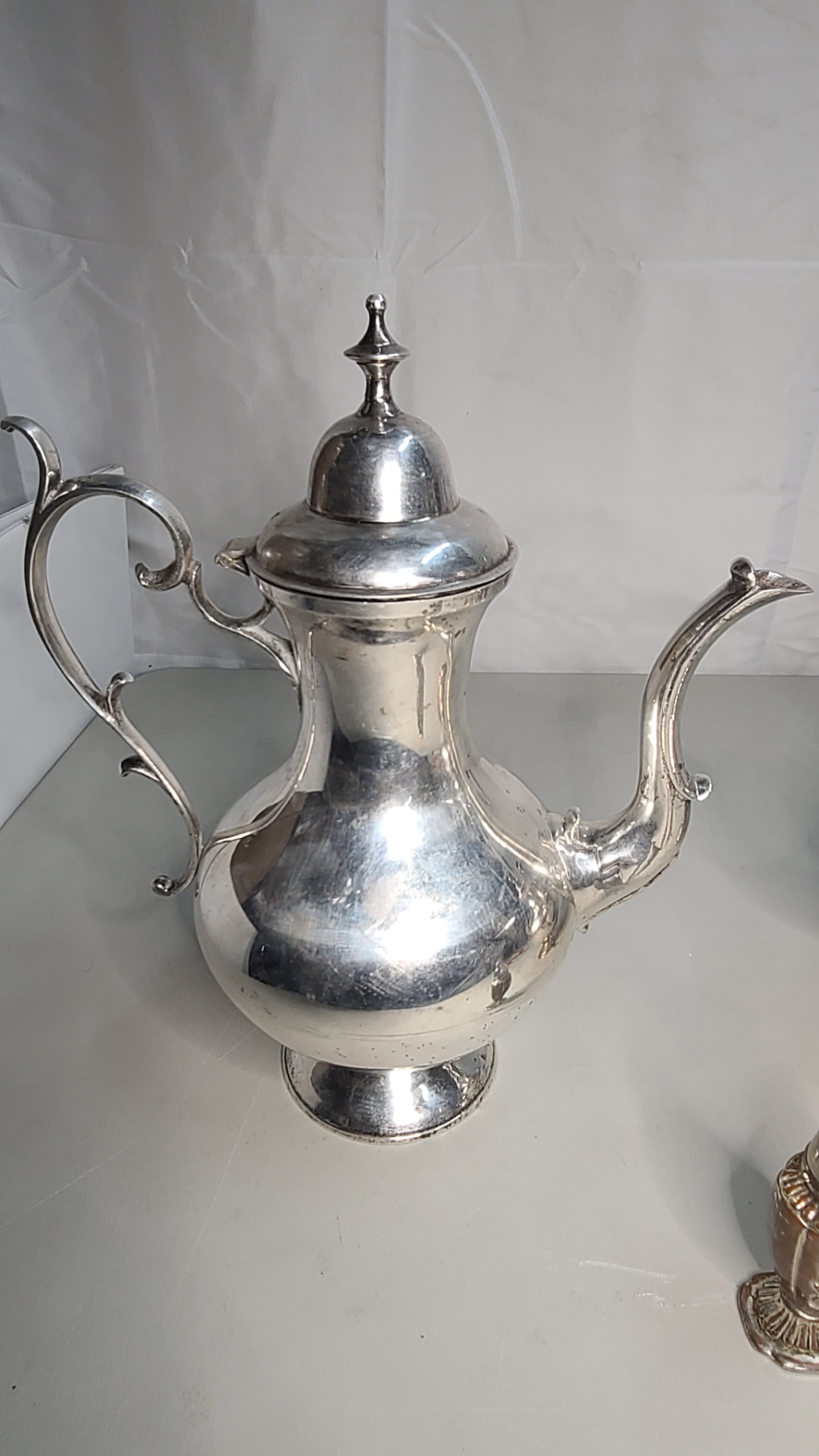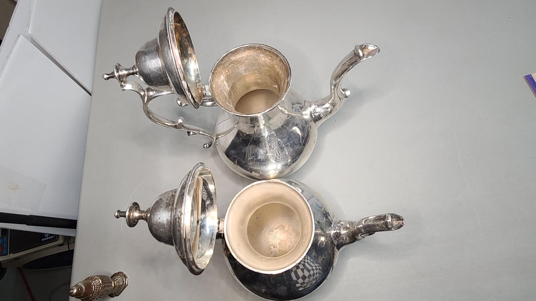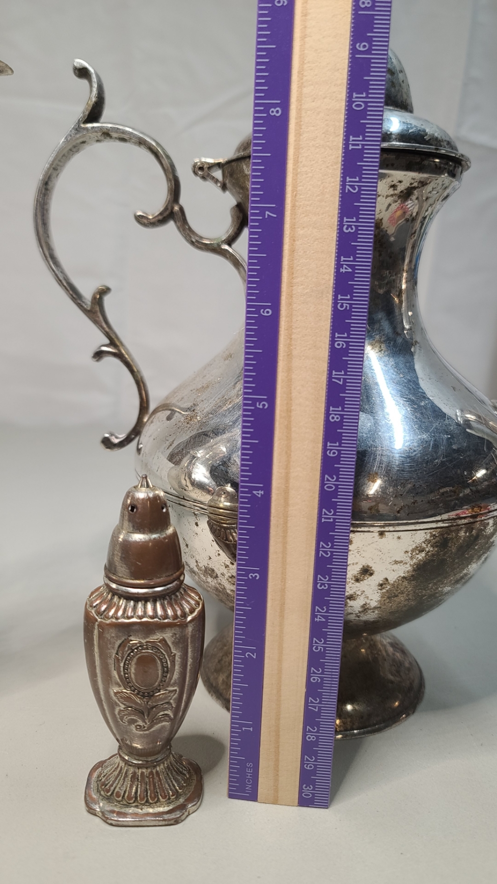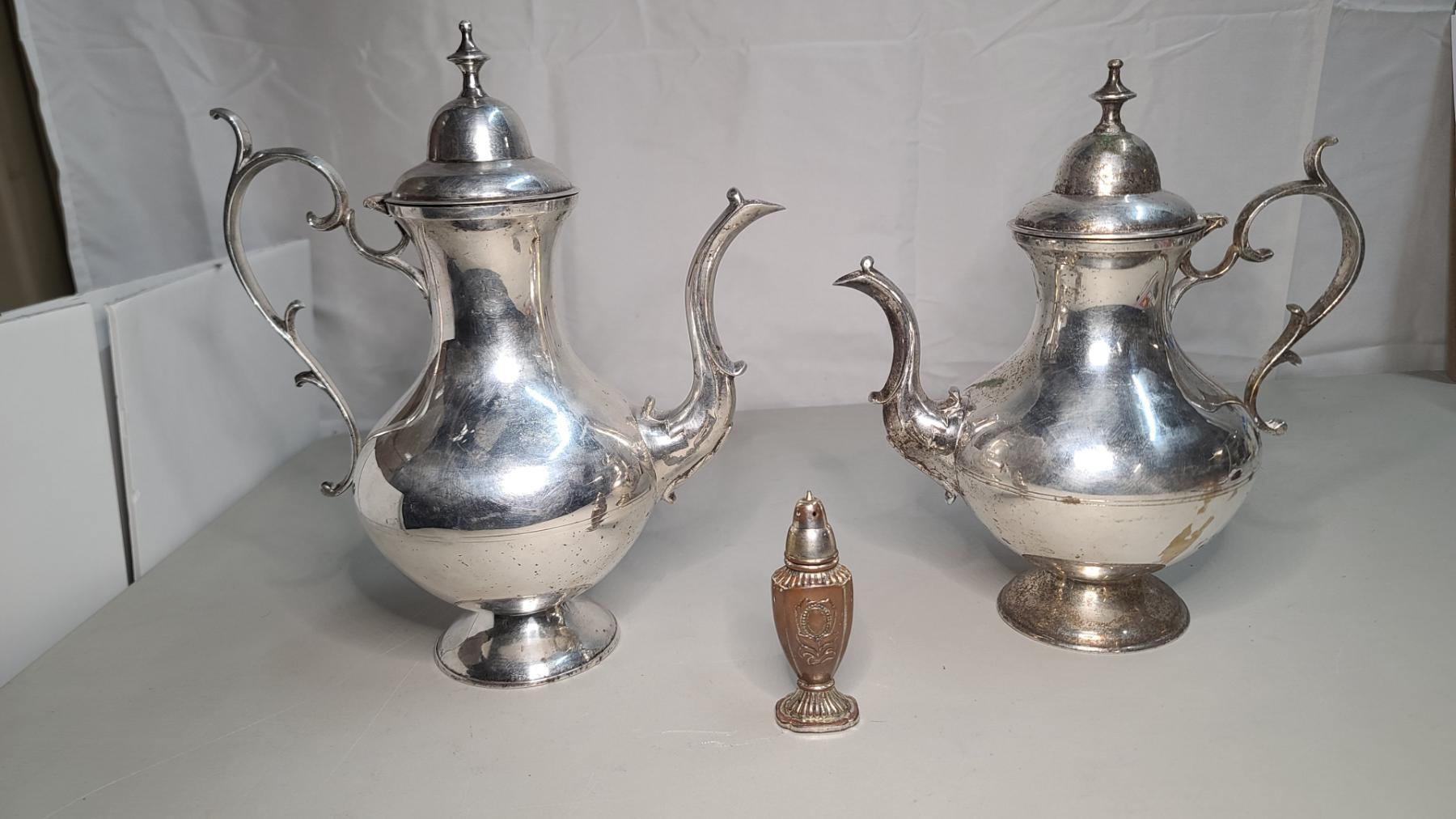 Silver-Plated Teapots & Salt Shaker - Total Weight: 6.6 LBS