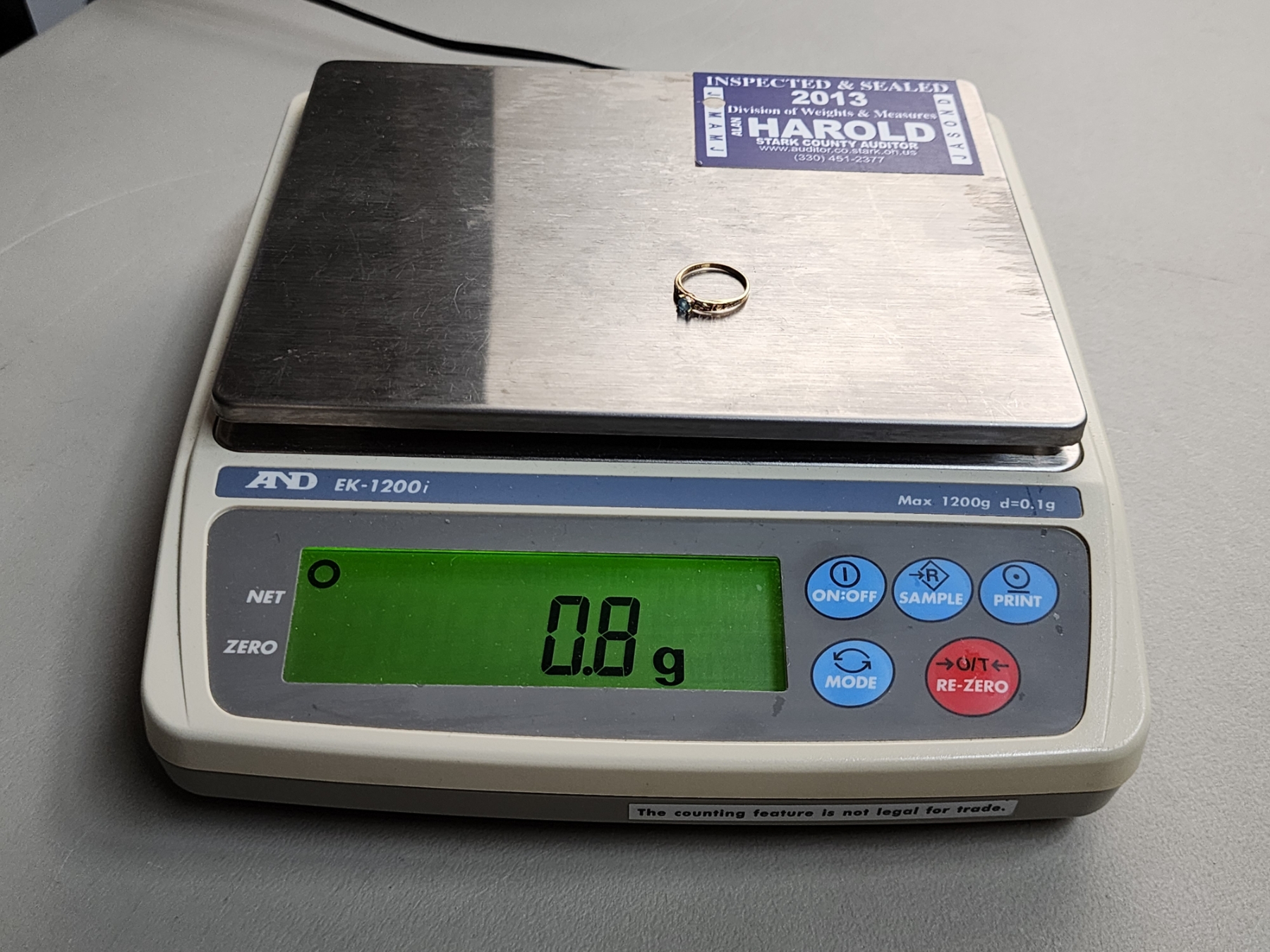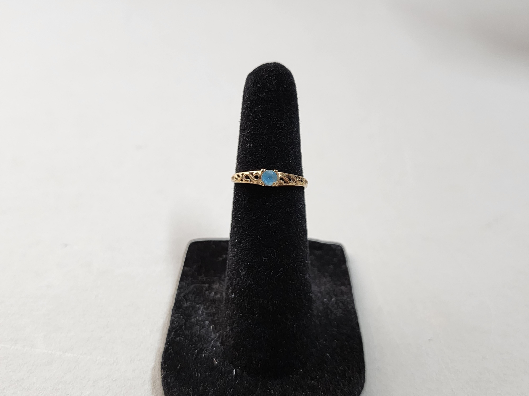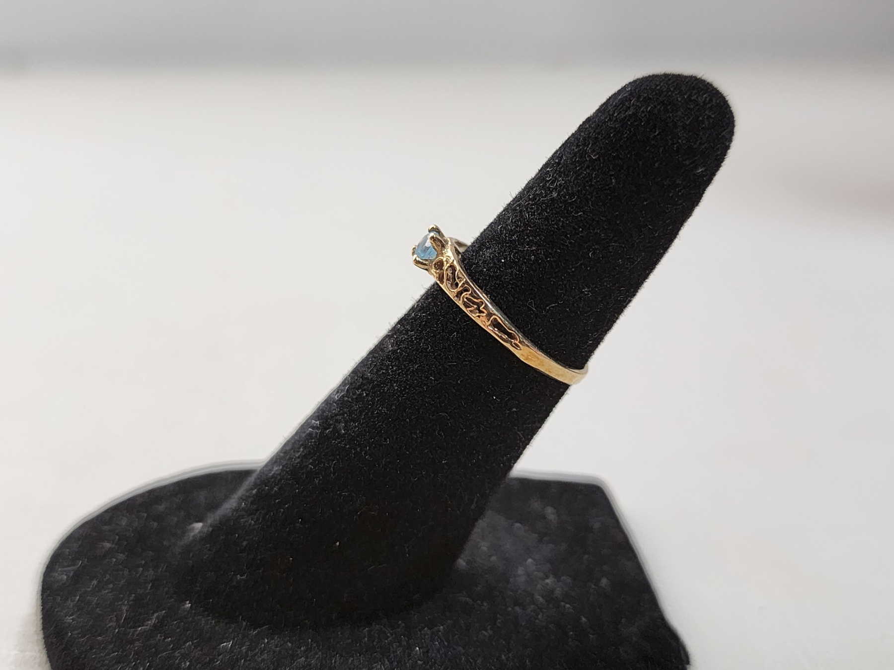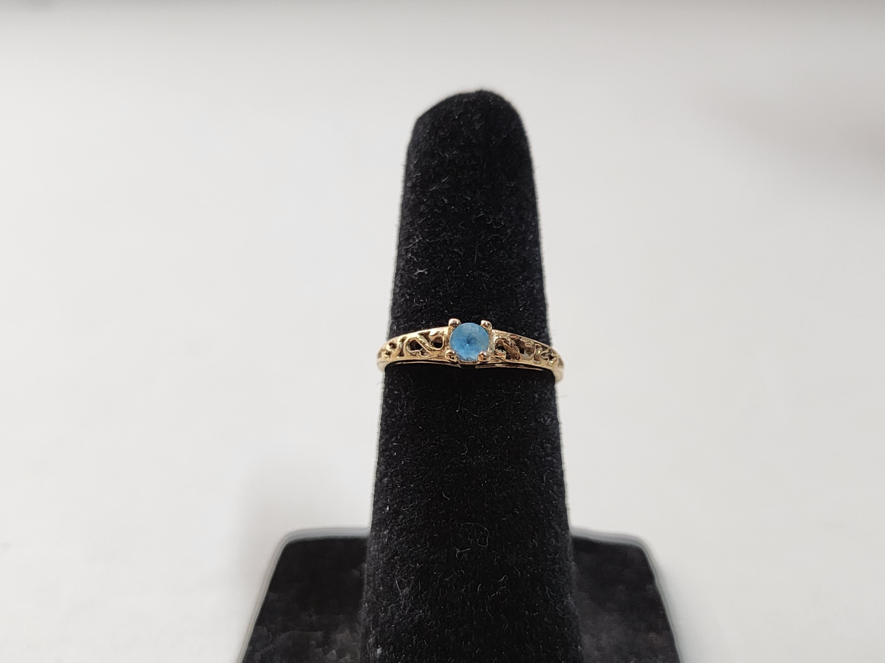 Small 10K Gold Ring with Blue Stone - Size 3 - Total Weight: 0.8g