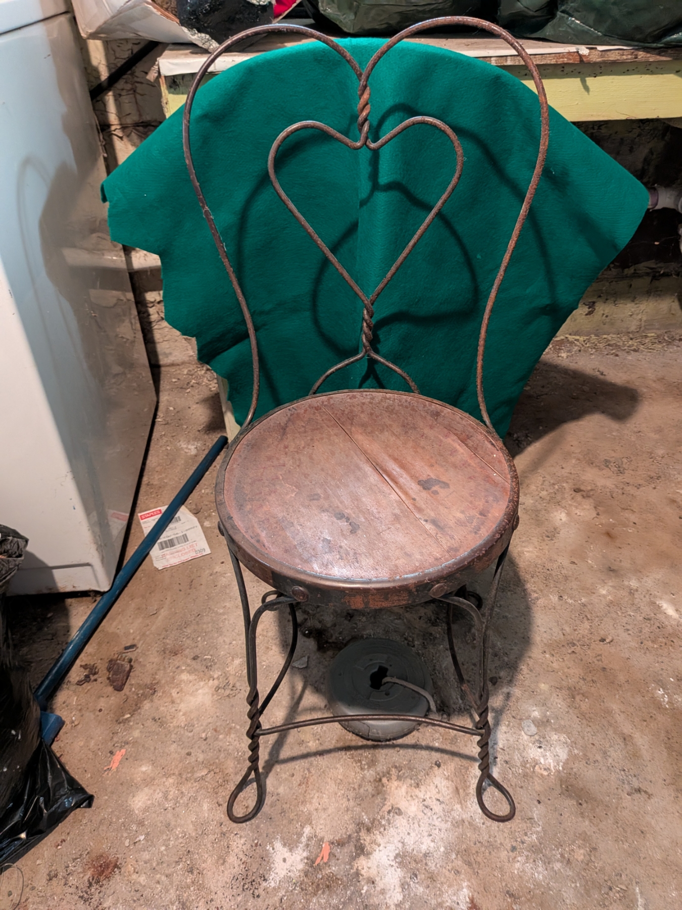 Small Metal Hand Cart And Pretty Vintage Metal And wood Chair, Both 37"