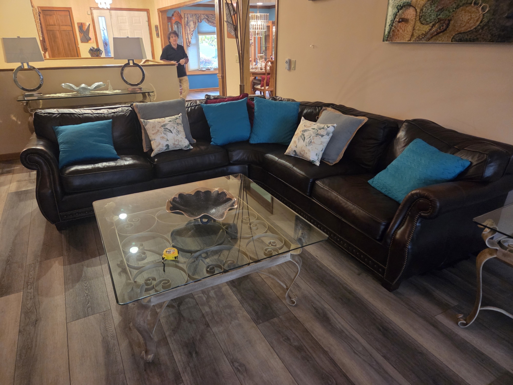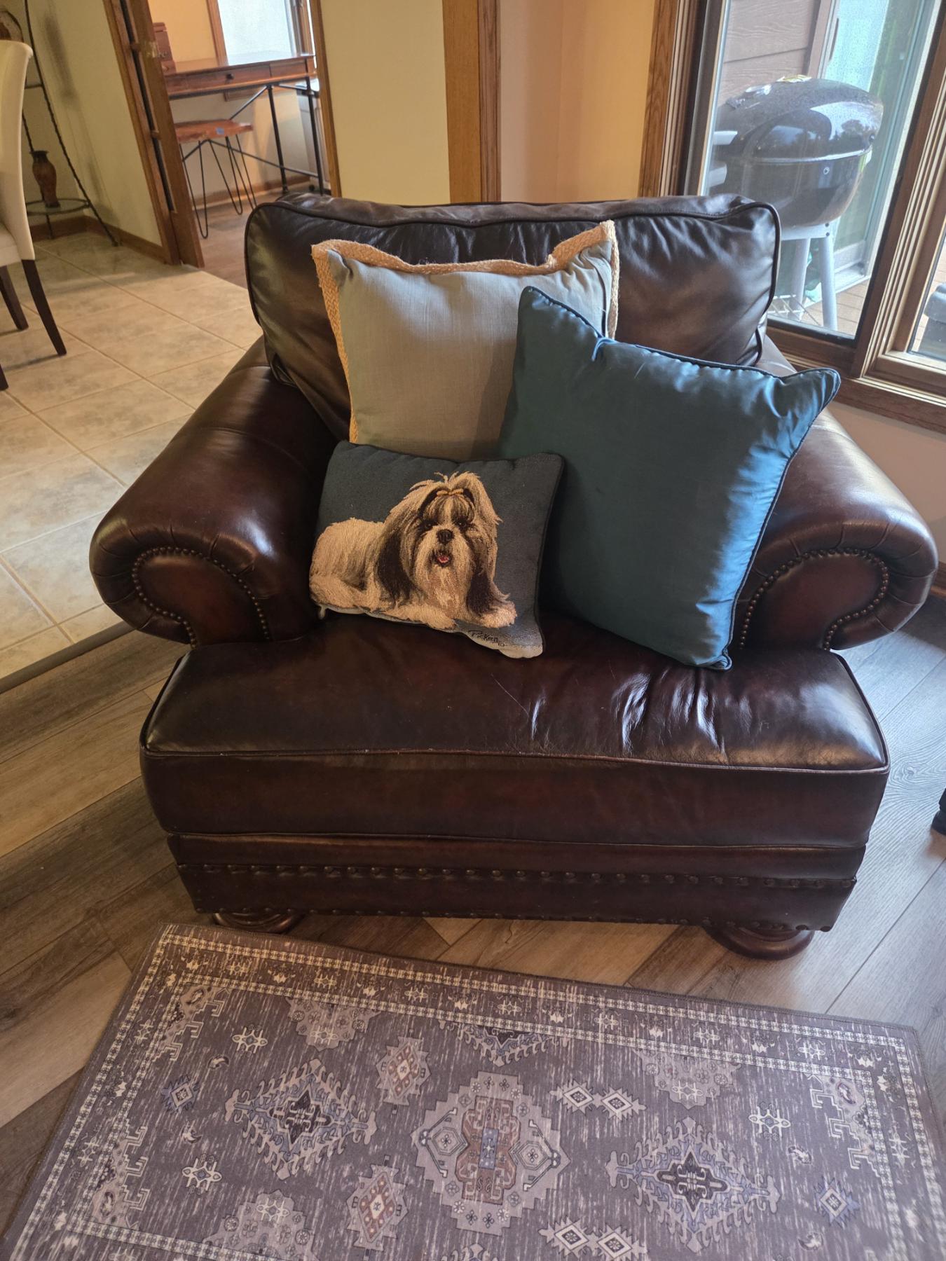 Soft Dark Brown Leather Large Sectional With Matching Chair And Beautiful Collection Of Decorative Pillows