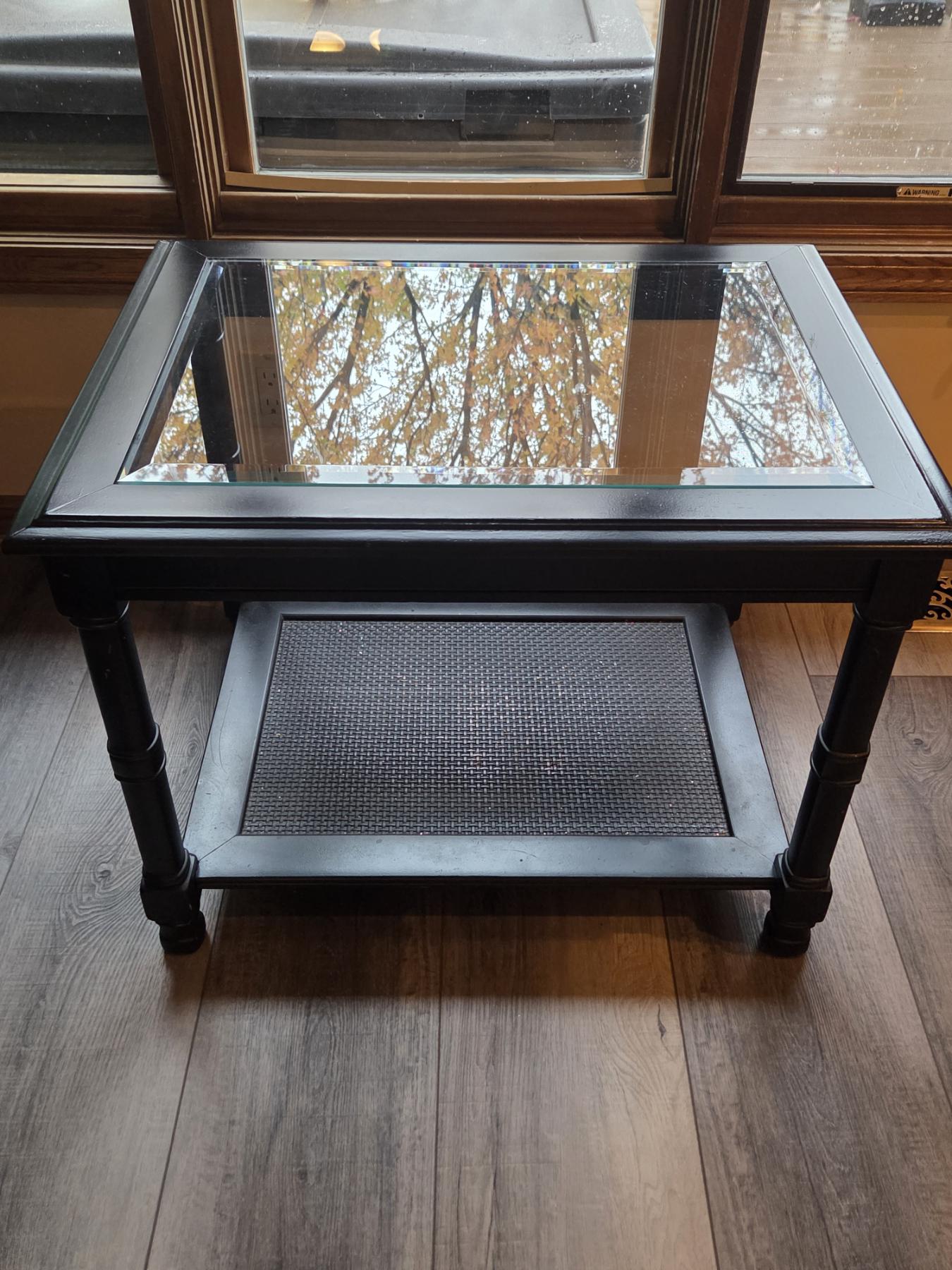 Solid Black Side Table With Glass Top 27"x21"