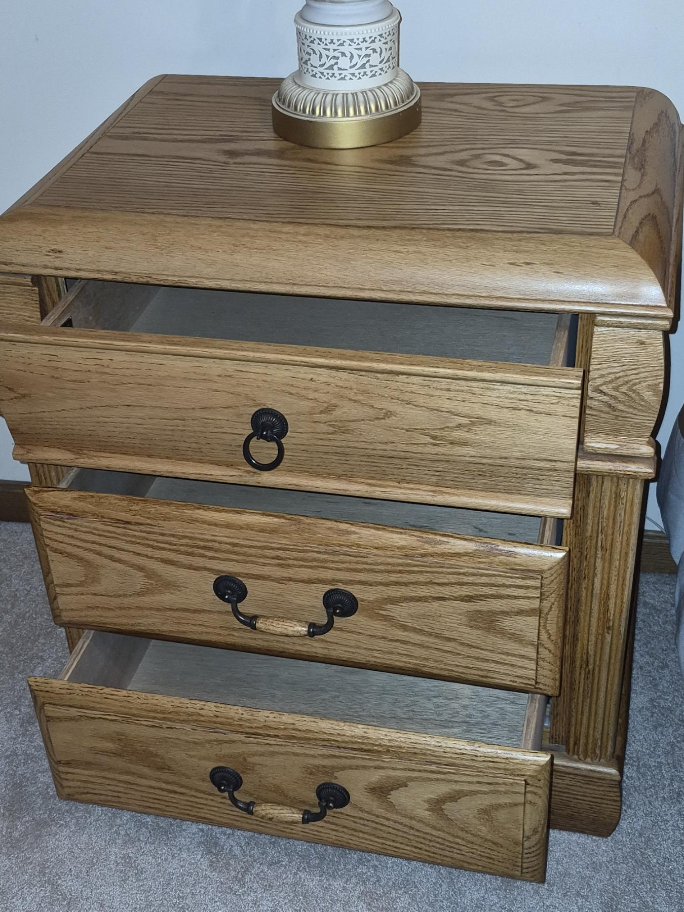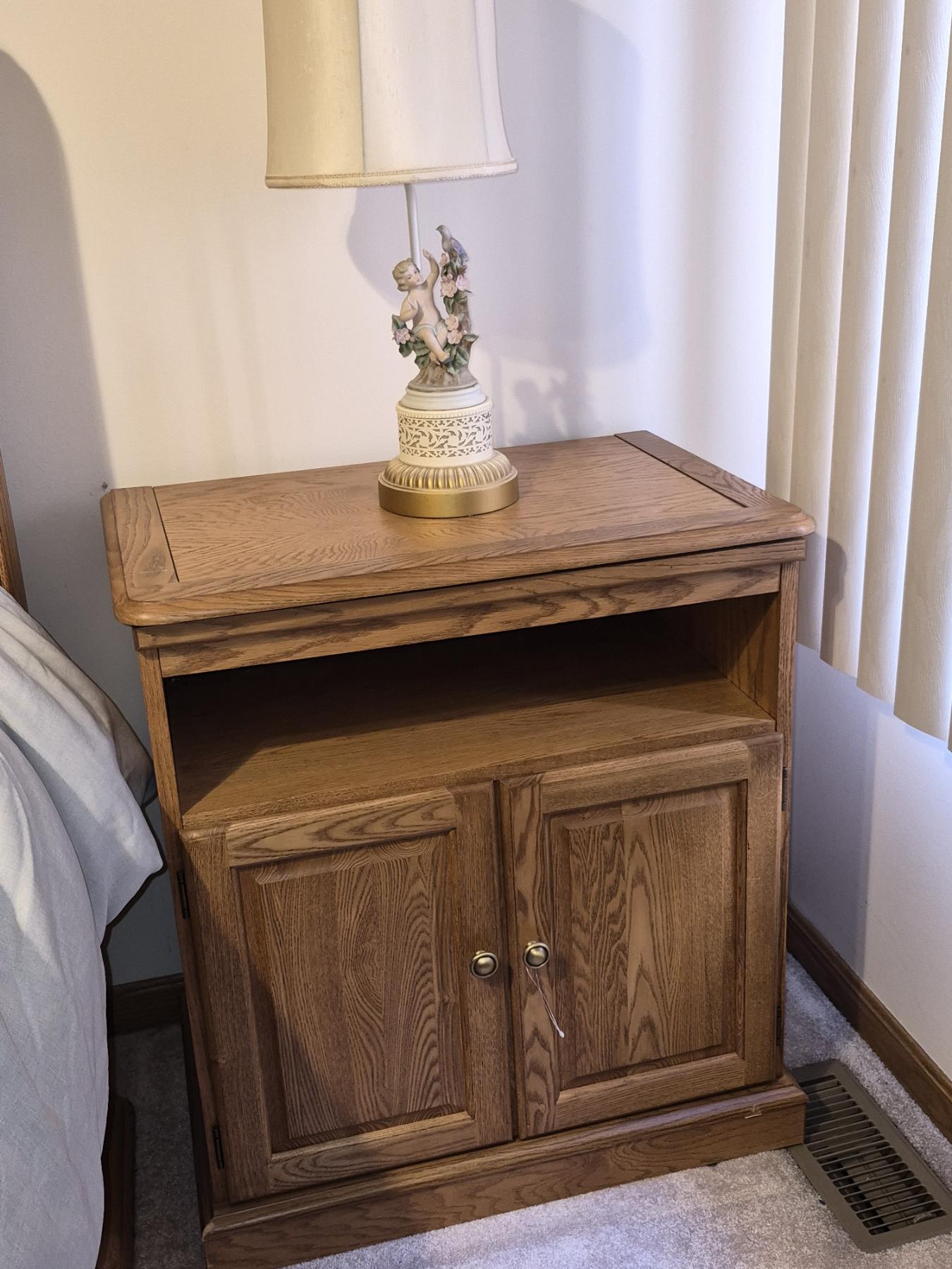 Solid Oak Night Stands - Matching Sleigh Bed 26 x 17 x 29 each See Pics