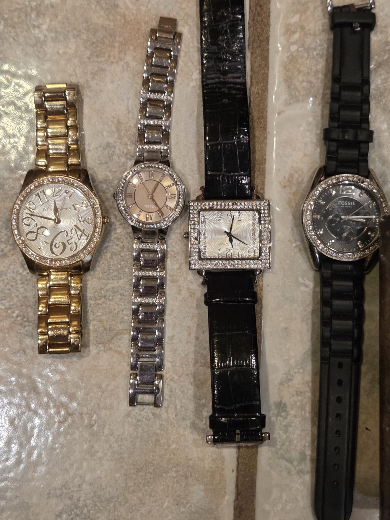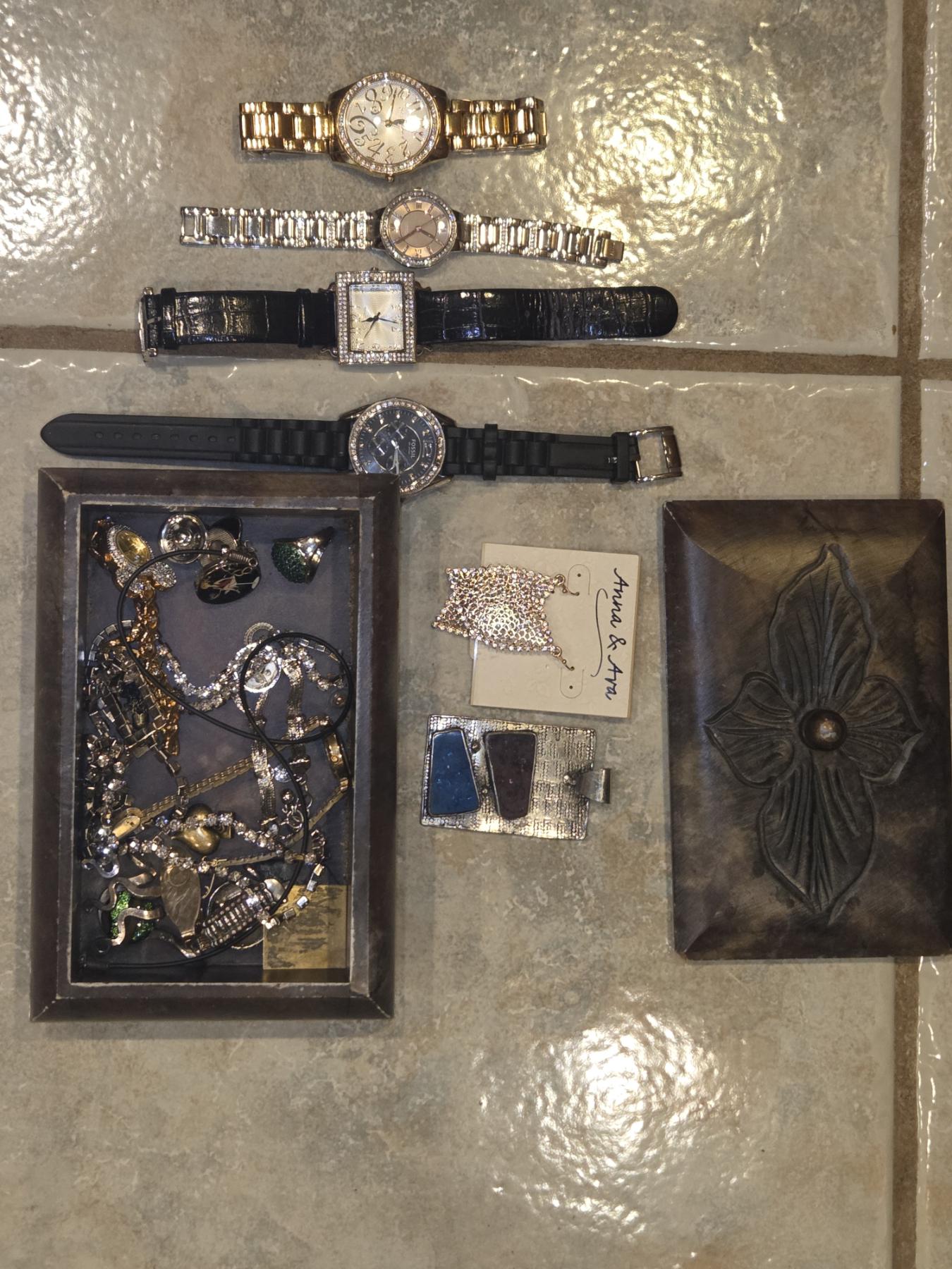 Solid Stone Box With Costume Jewelry And Four Nice Watches
