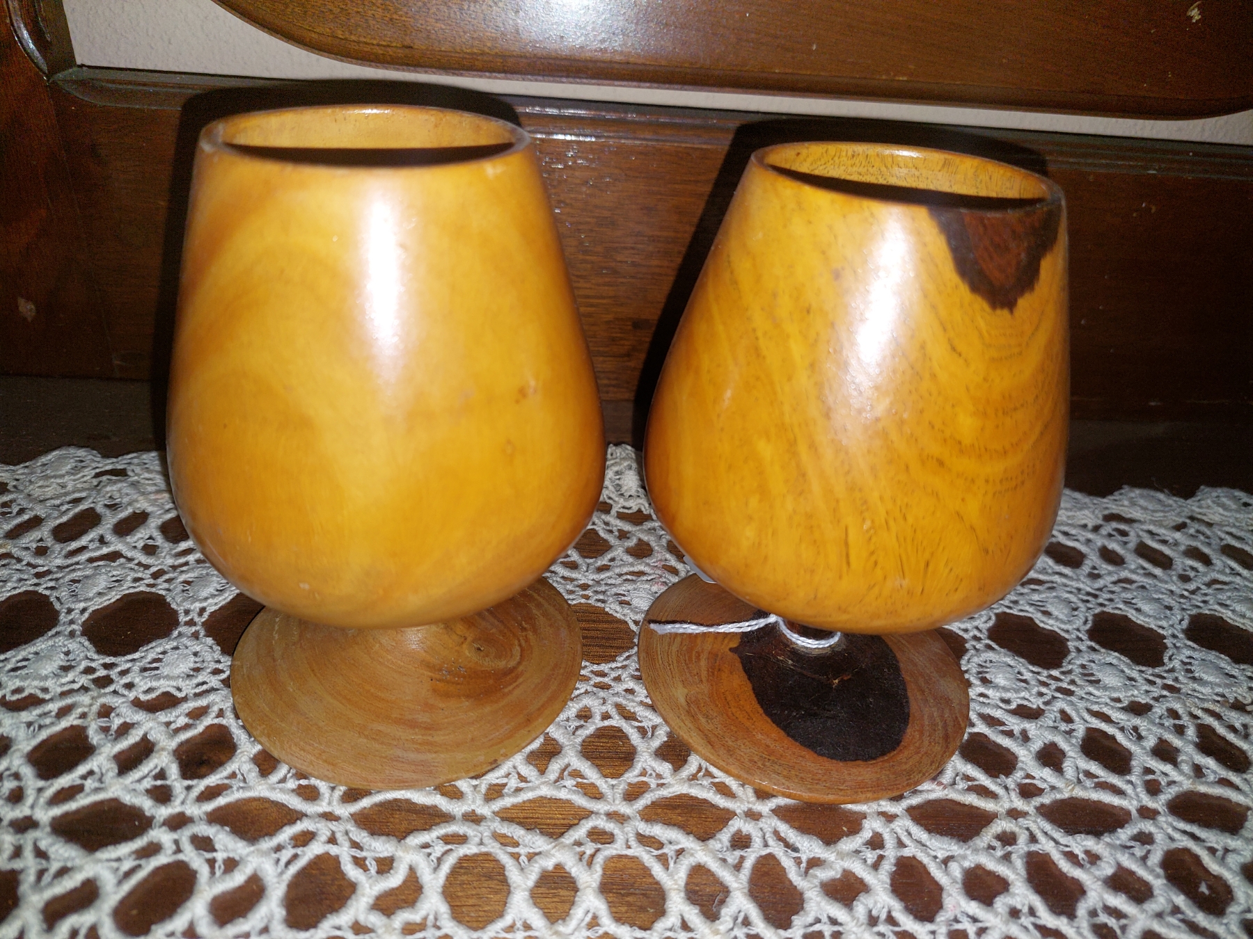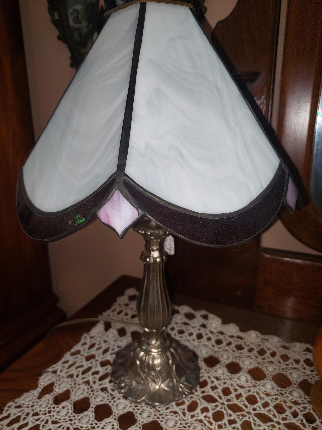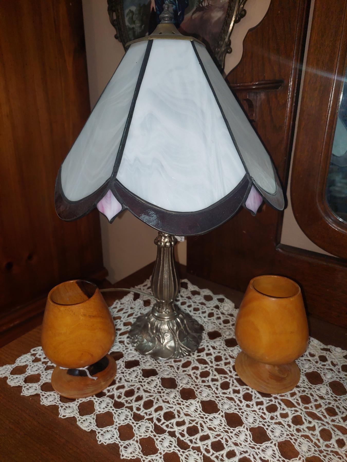 Stained Glass Panel Lamp & Set Of 2 Carved Teak wood Goblets - See PIcs