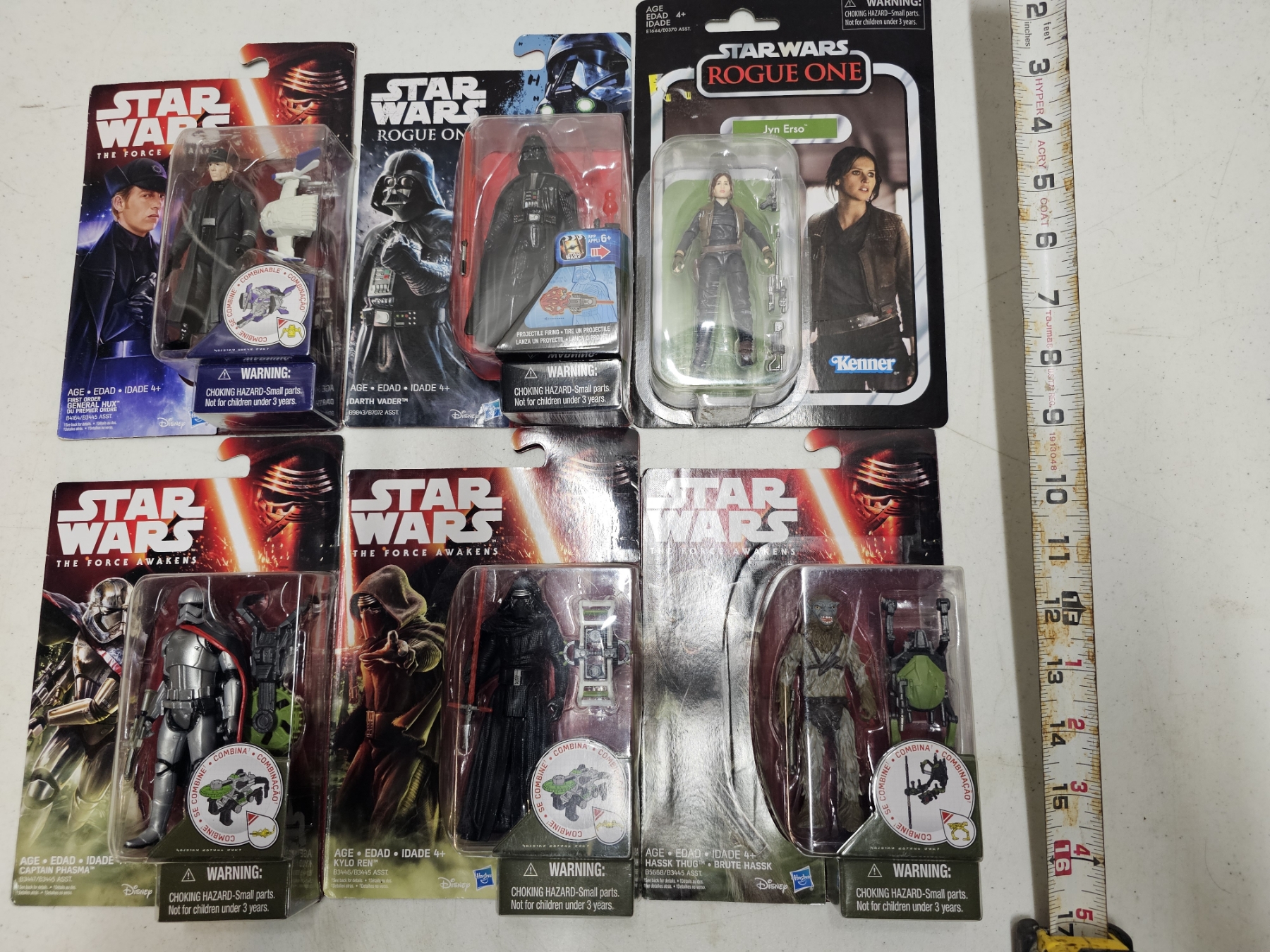 Star Wars Figures (Lot of 6) - ft.First Order General Hux, Hassk Thug, Kylo Ren, Captain Phasma, Jyn Erso, Darth Vader, ALL ORIGINAL PACKAGING!!! EXCELLENT CONDITION!!! USE THE FORCE AND PLACE A BID TODAY!!!