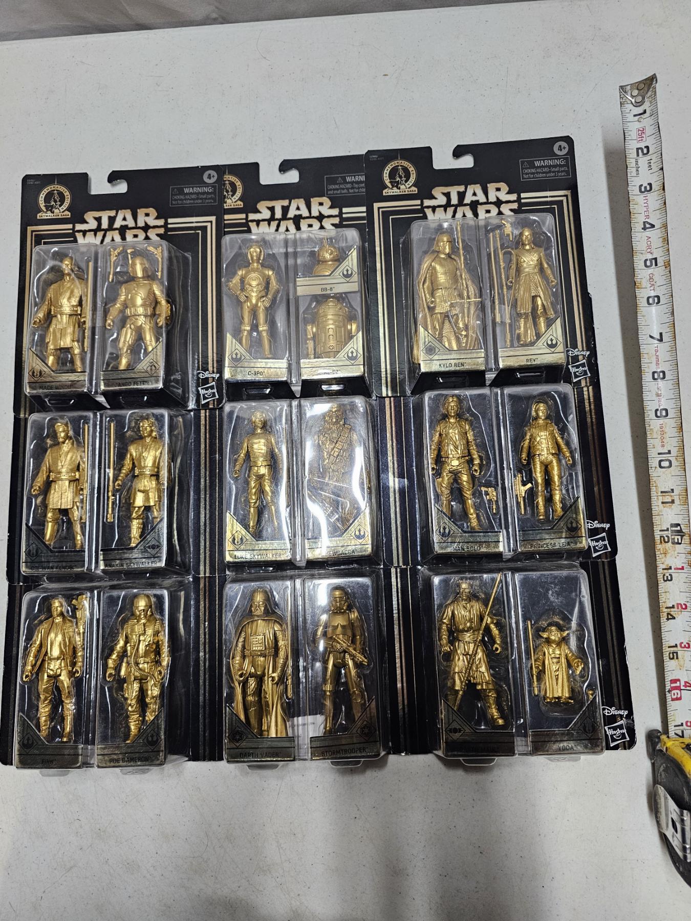 Star Wars Gold Colored Figures (Lot of 9, 2 per Package = 18 Figures), NIB, Mint Condition!!! A SUBSTANTIAL ADDITION TO ANY STAR WARS COLLECTION!!! DON'T MISS OUT!!!
