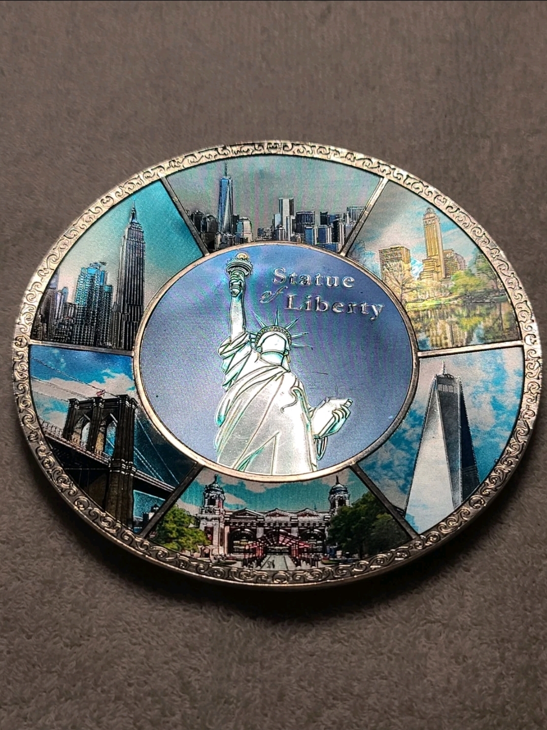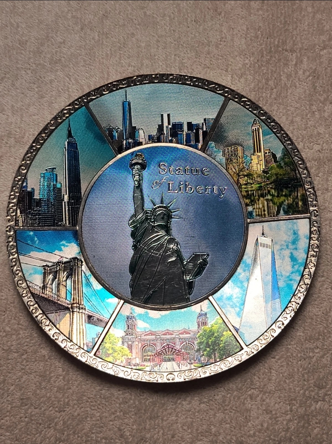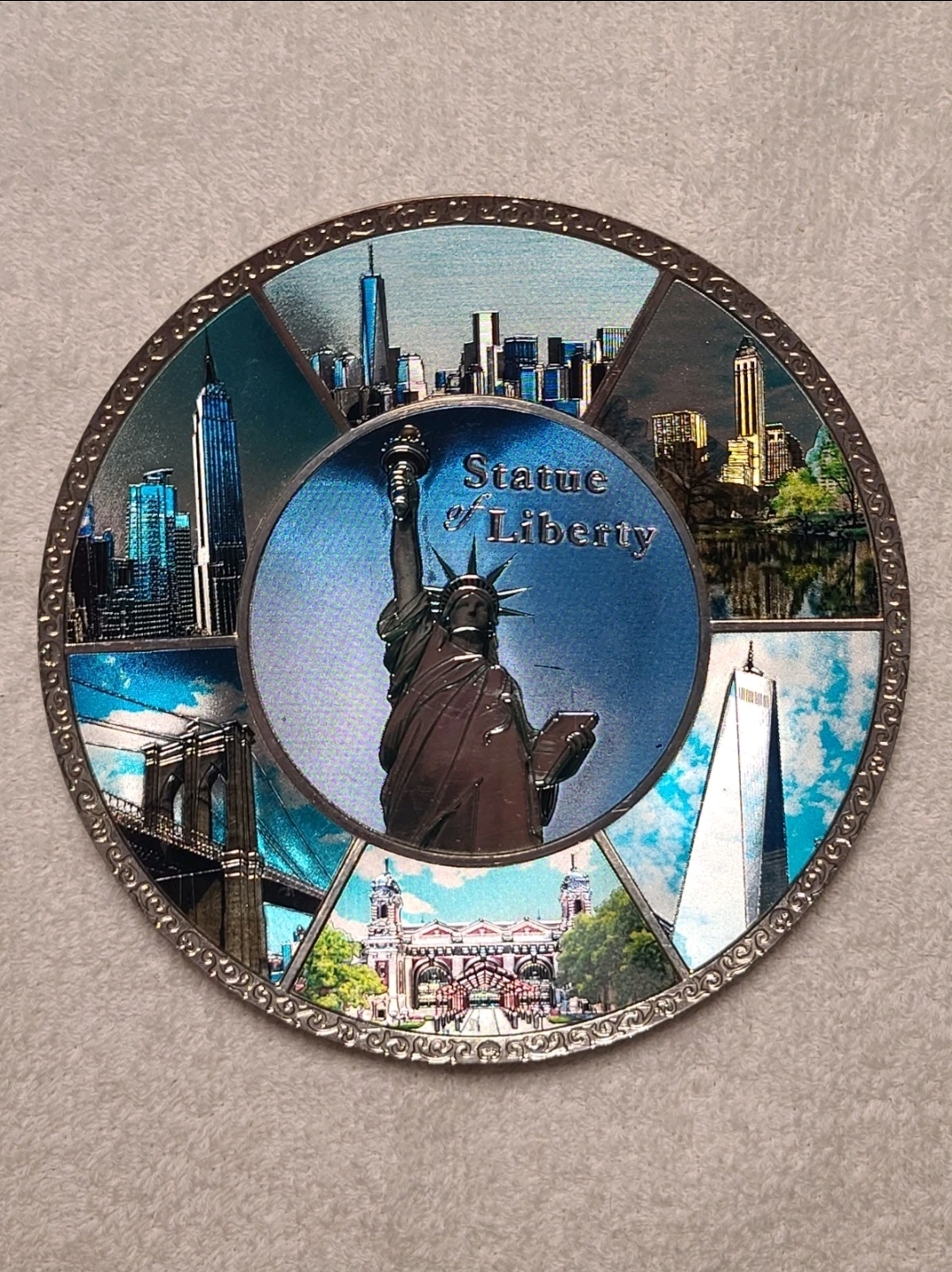 Statue of Liberty Souvenir Metal Plate Size 6" x 6" Colors Blue, Black, Silver,