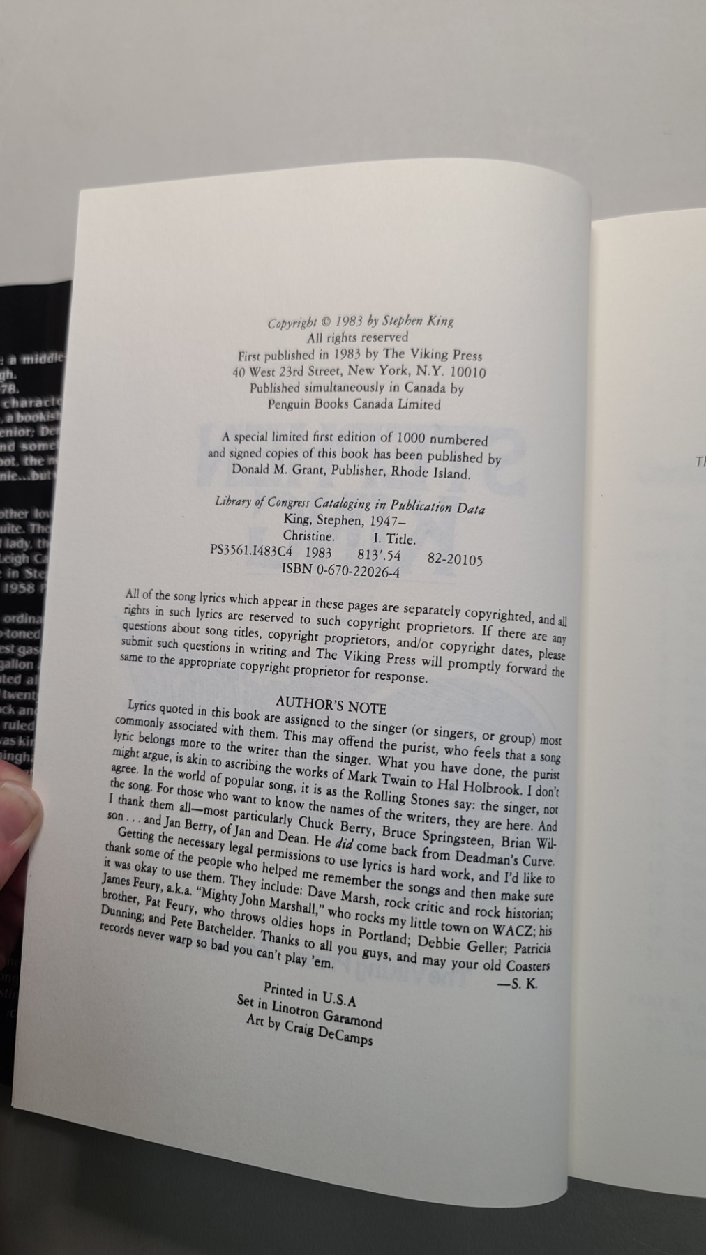 Stephen King's First Edition 1983 Hard Cover Horror Novel "Christine"