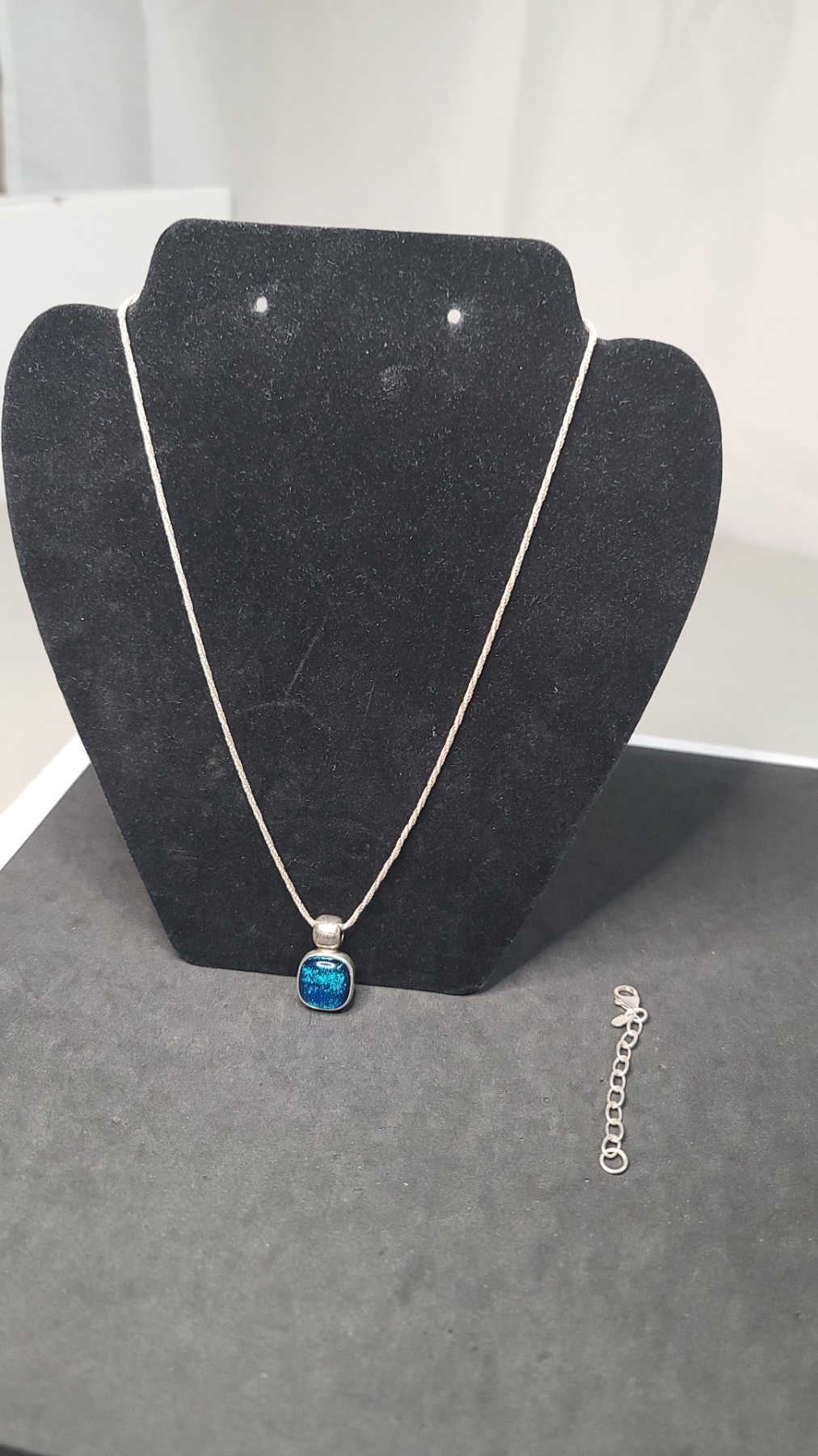 Sterling Silver Bloodstone Pendant On Sterling Silver Necklace & 950 Sterling Necklace Extender
