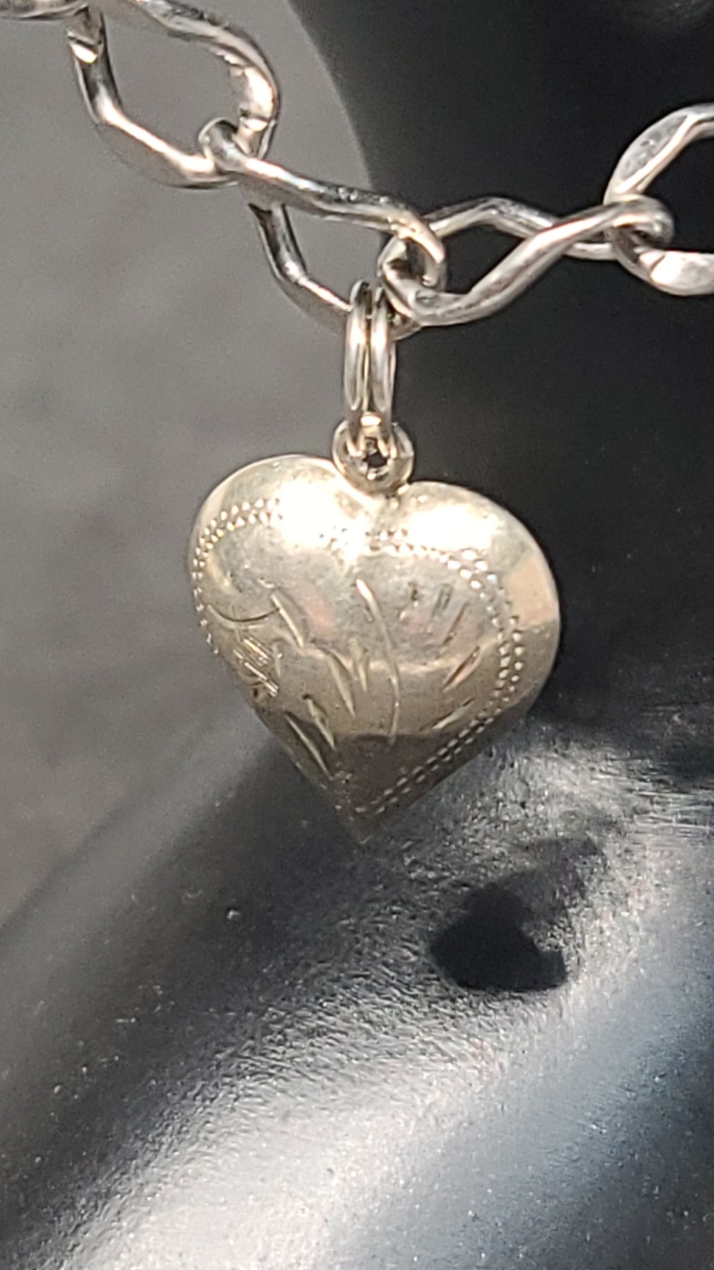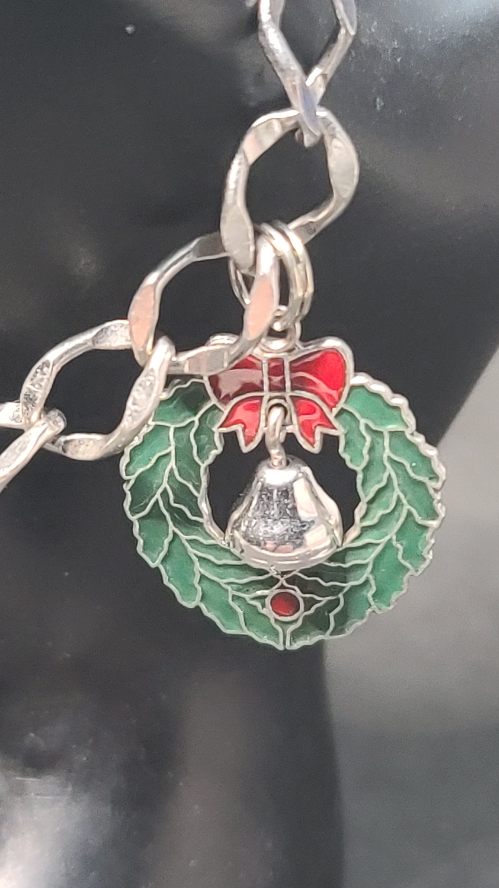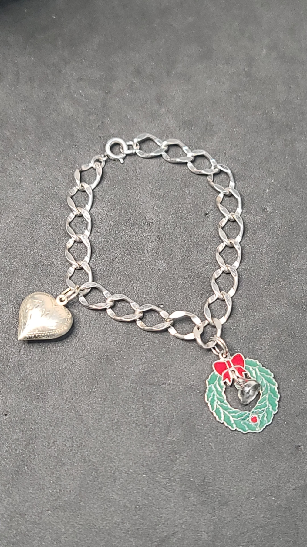 Sterling Silver Bracelet With Sterling Silver Heart & Christmas Wreath Charms - Total Weight: 11.7g