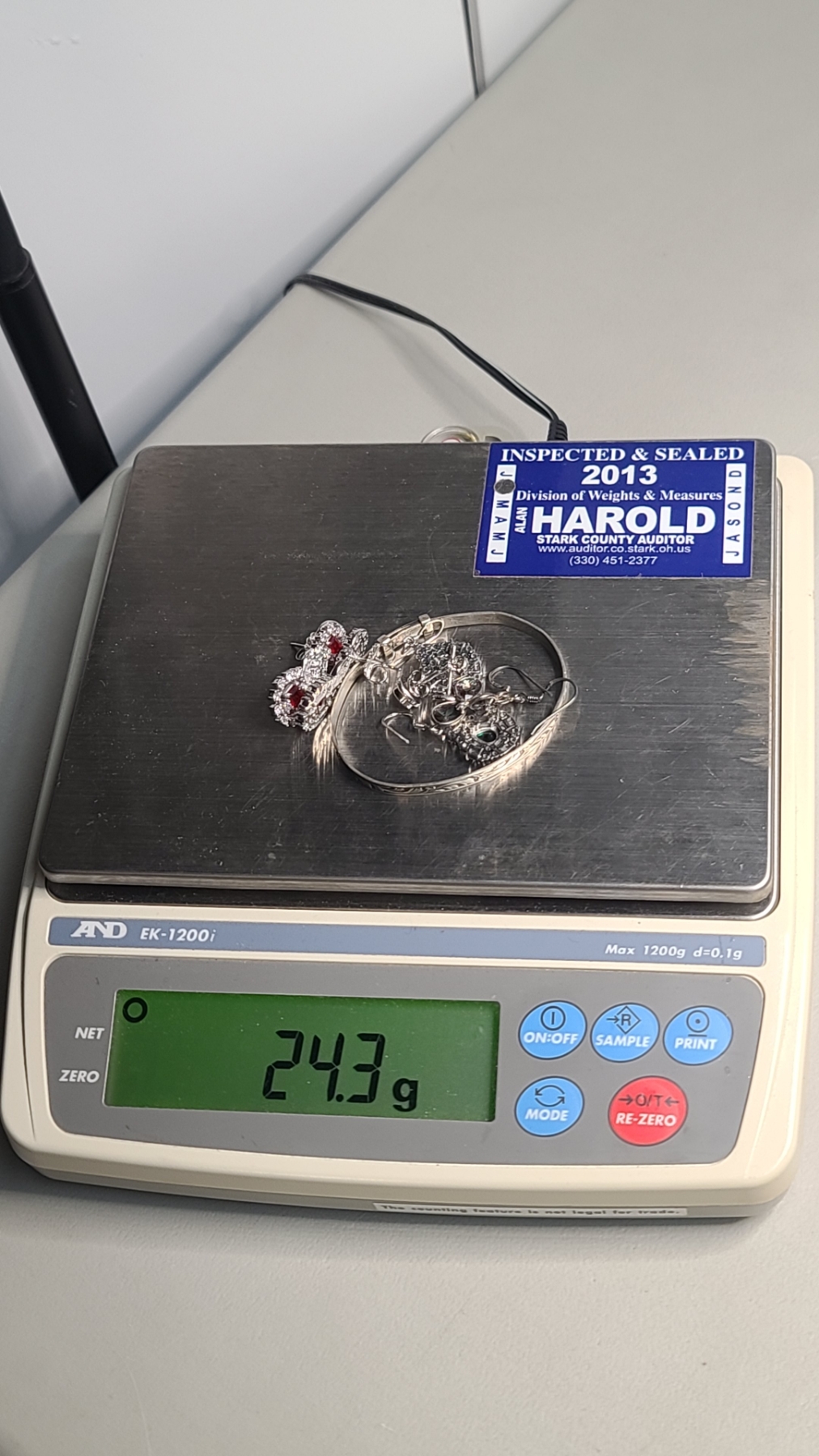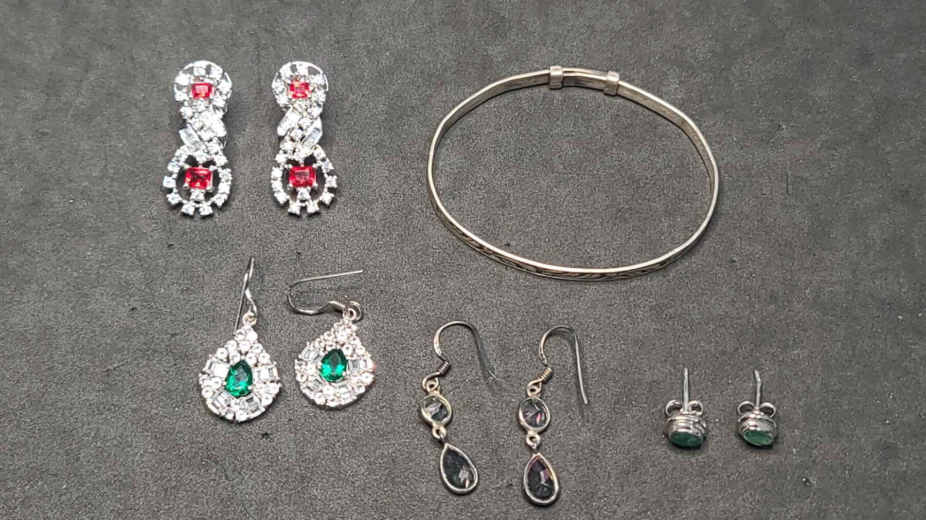 Sterling Silver Earrings & Vintage Bracelet - Weight: 24.3g