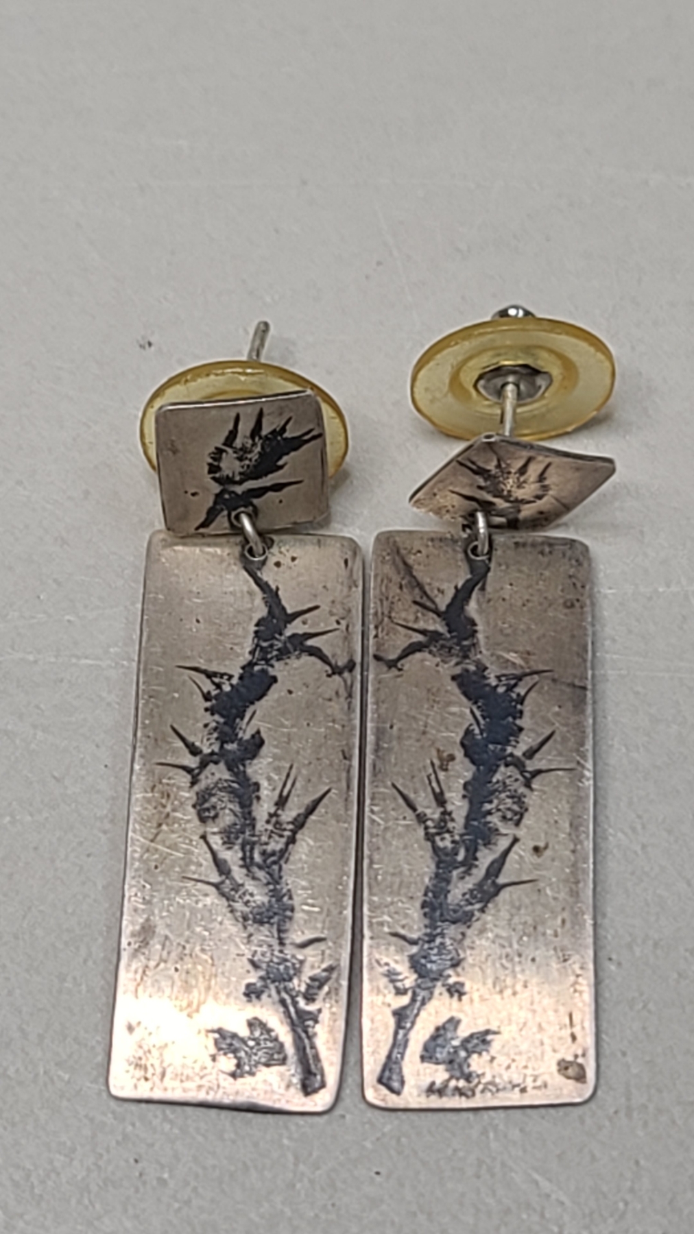 Sterling Silver Hand Crafted Dangle Earrings With Etched Design - Weight: 7.0g