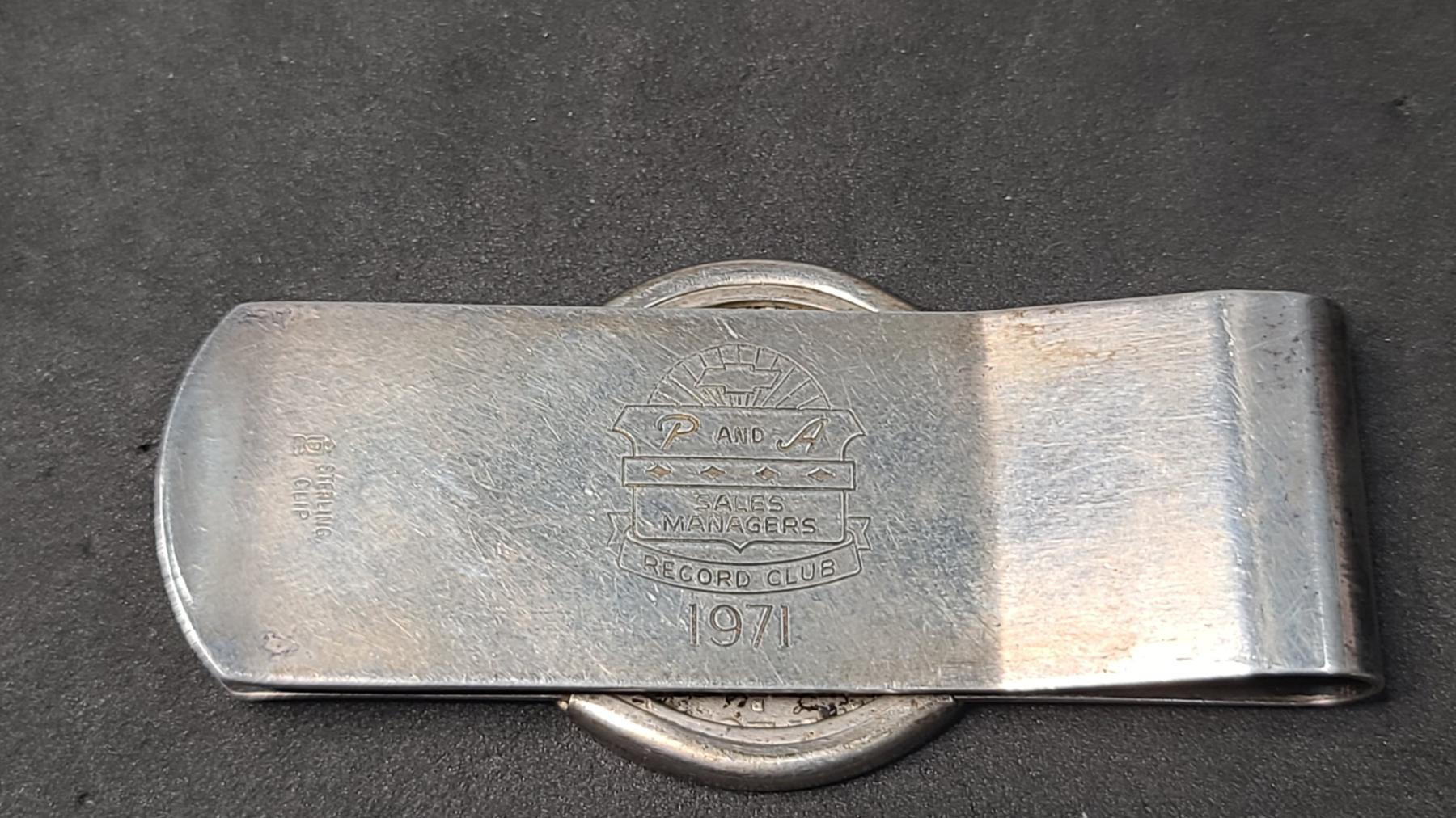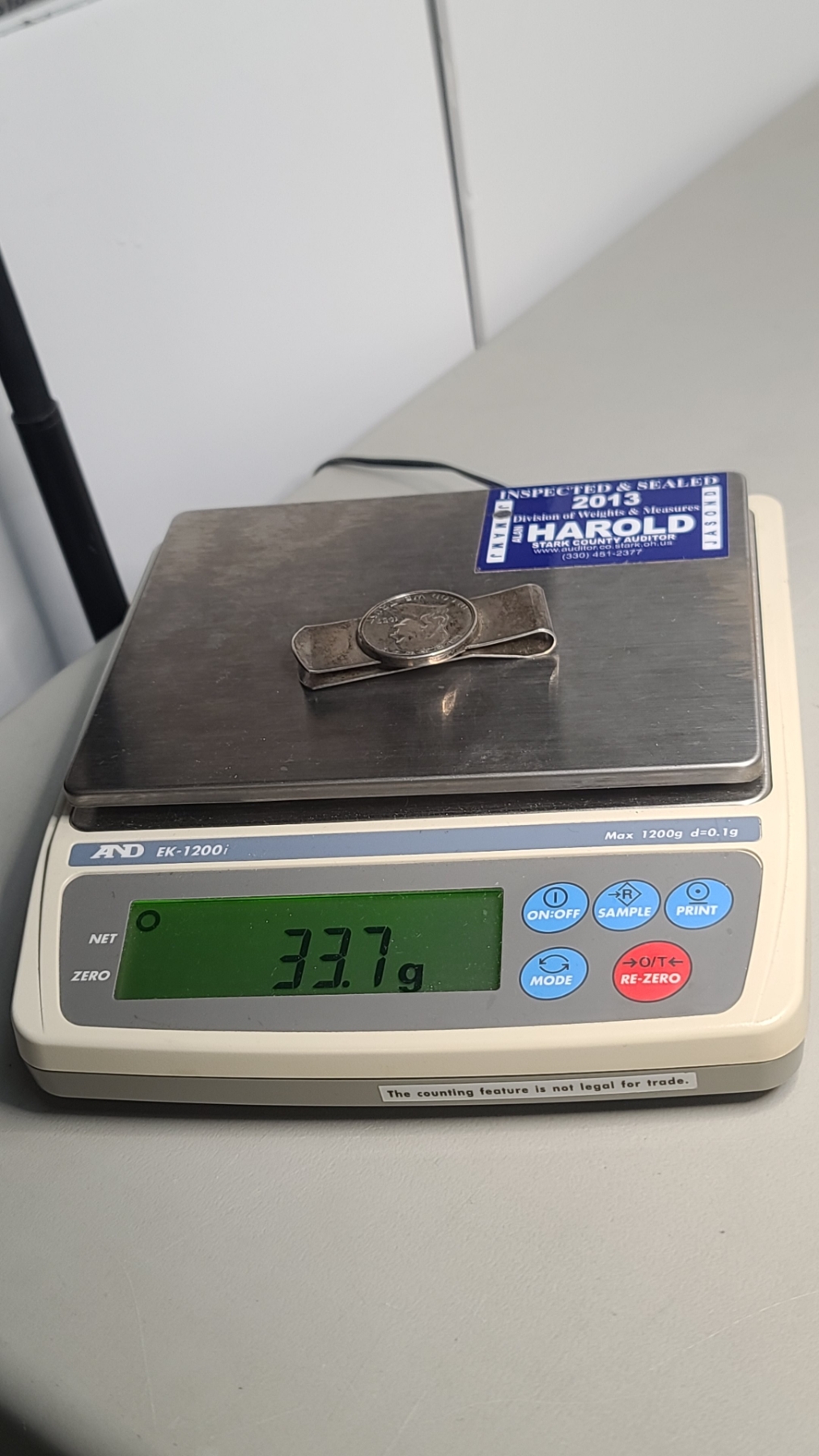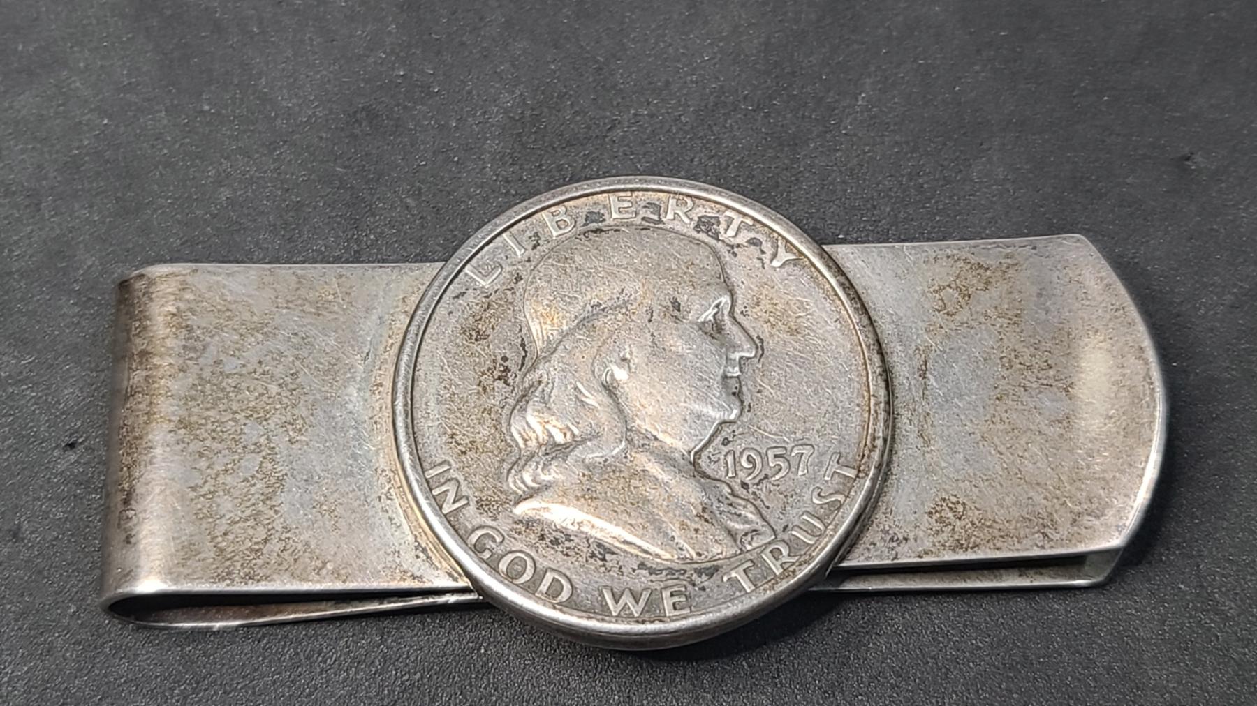 Sterling Silver Money Clip With 1957 90% Silver Franklin Half Dollar - Total Weight: 33.7g