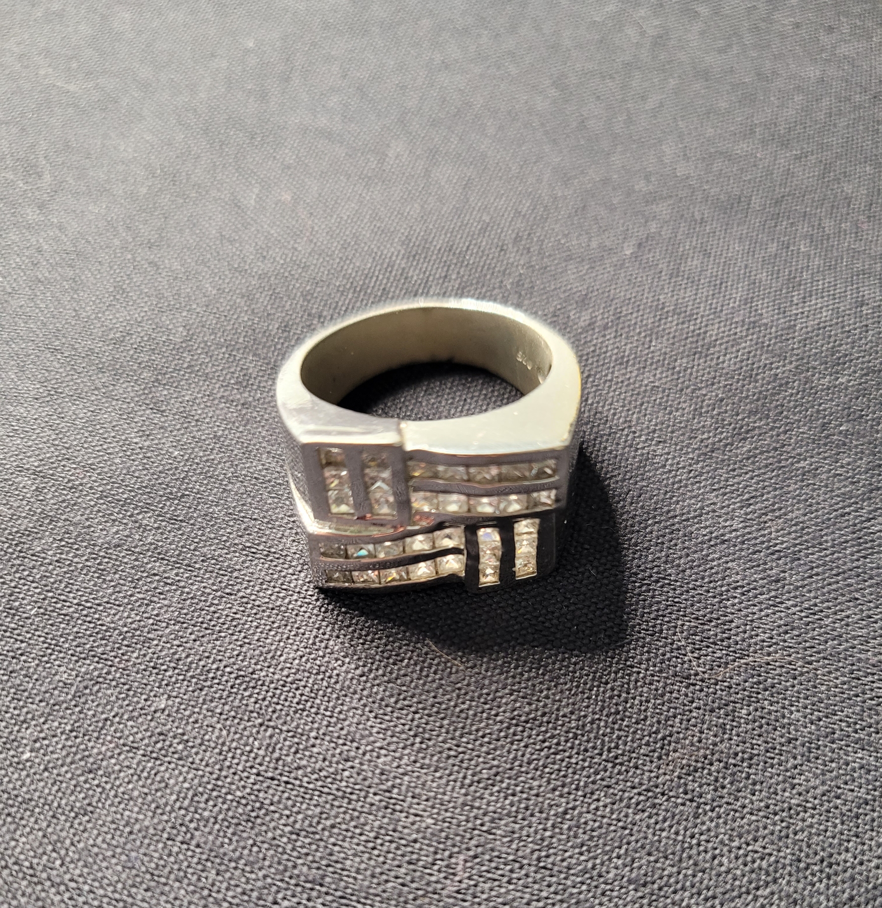 Sterling Silver Princess Cut Ring - Size 10 - 15.4 Grams