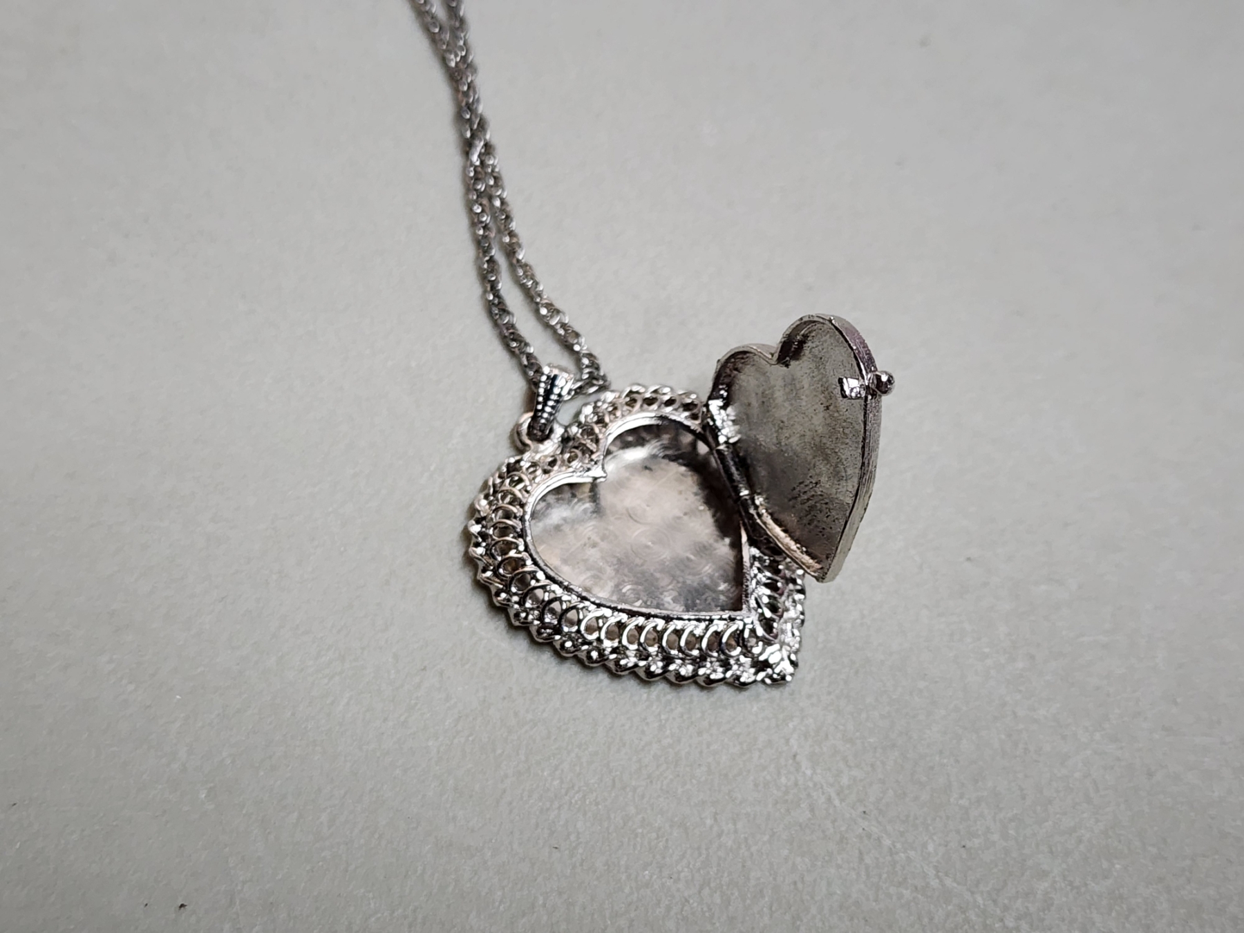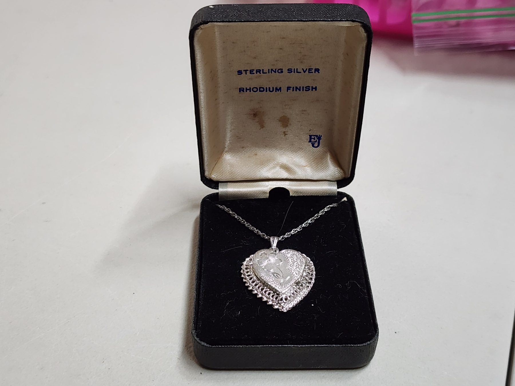 Sterling Silver Rhodium Finish Locket Heart Necklace 18in, Total Weight 7.1g