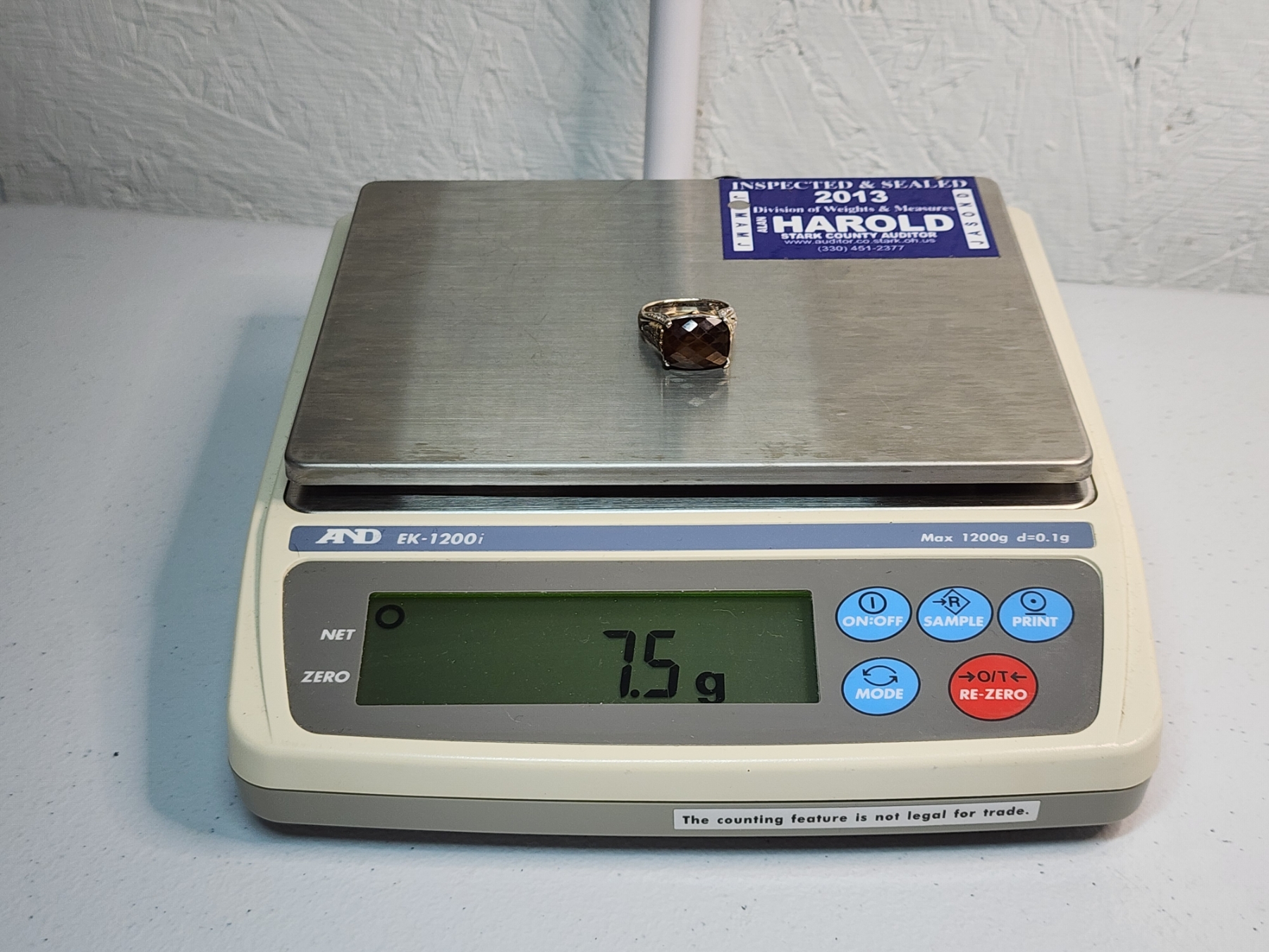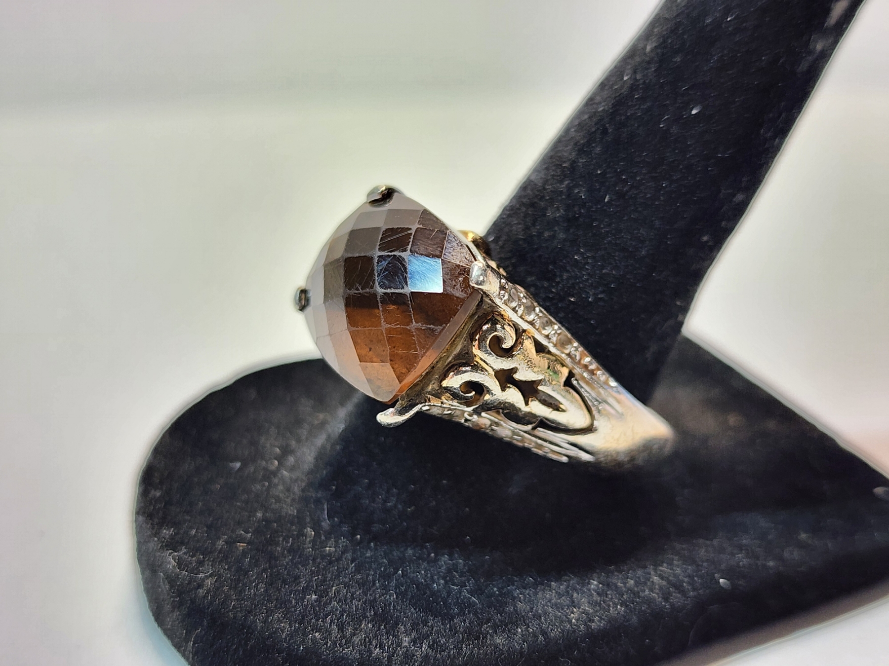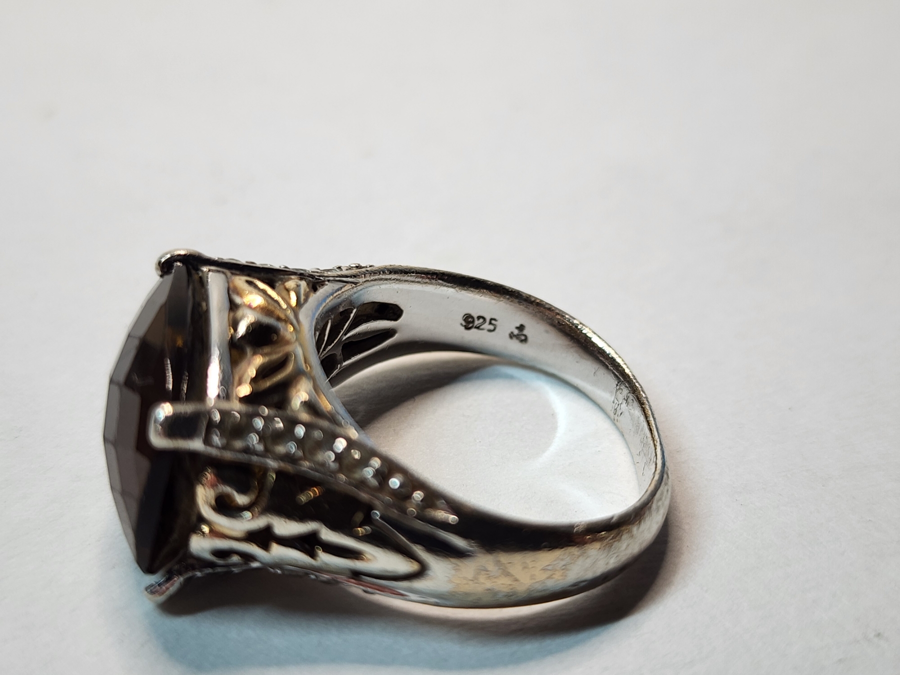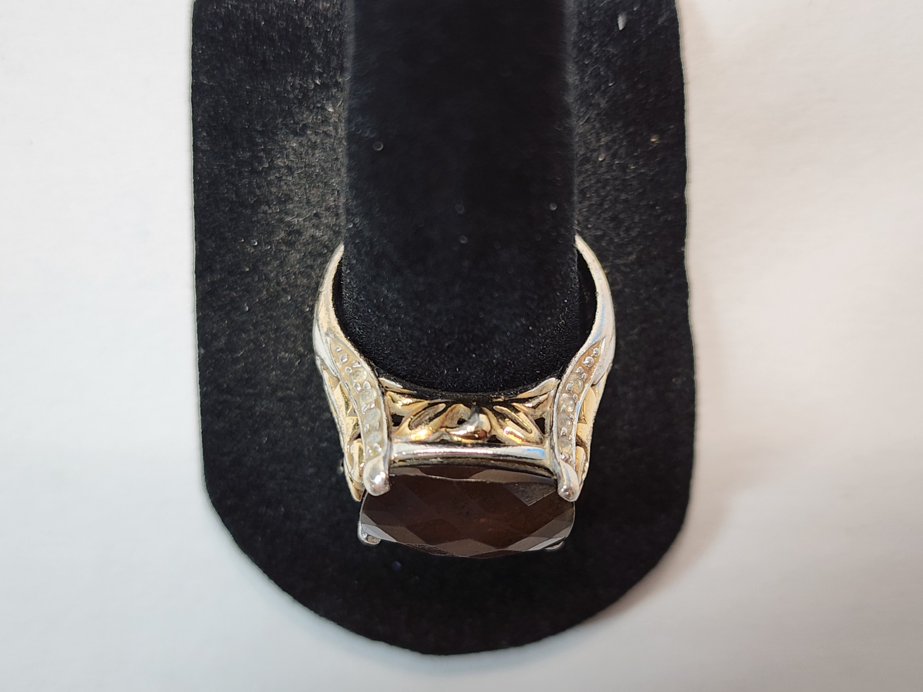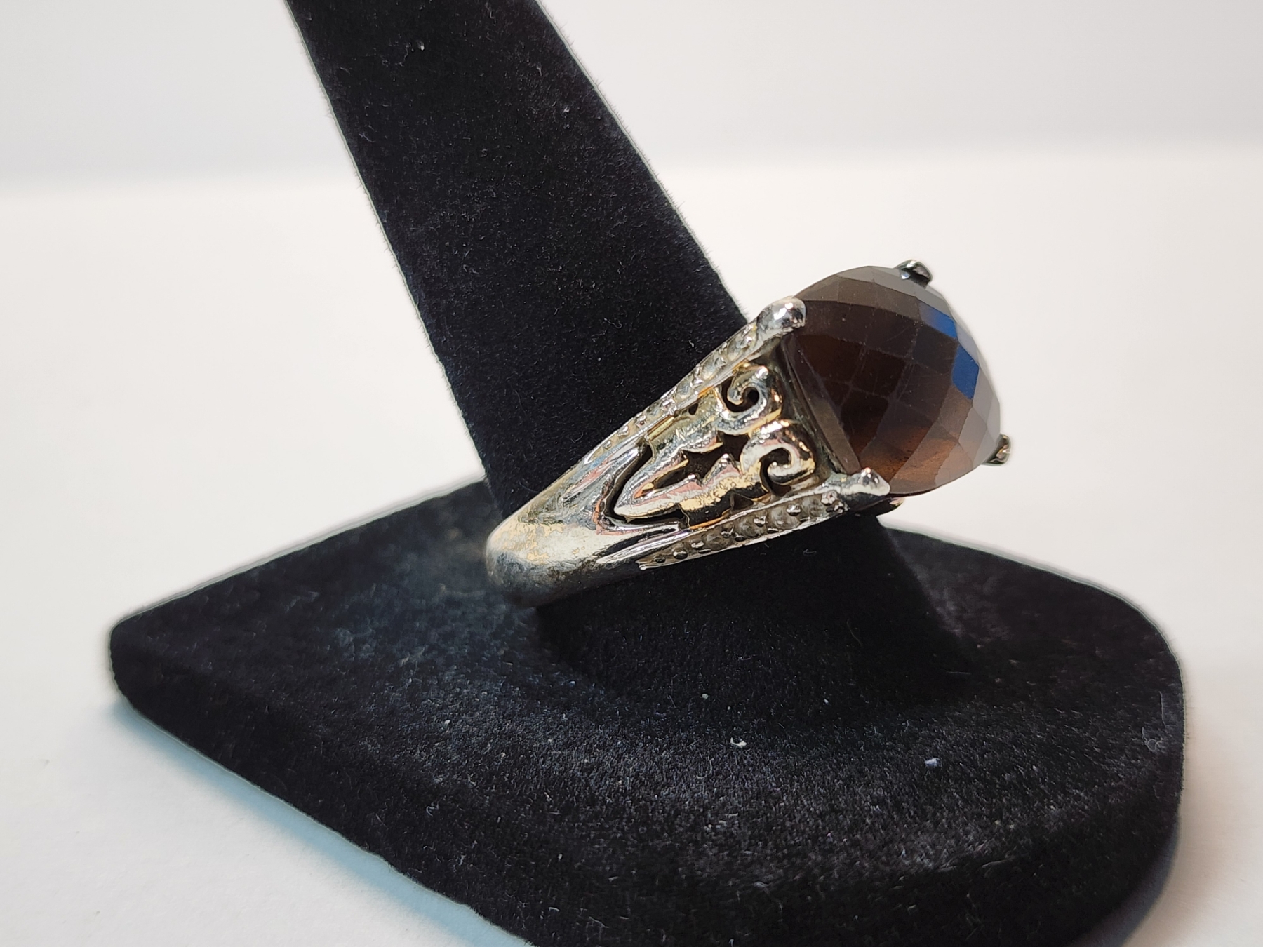 Sterling Silver Ring With Large Chocolate Topaz Style Gemstone - Size 8 - TW: 7.5g