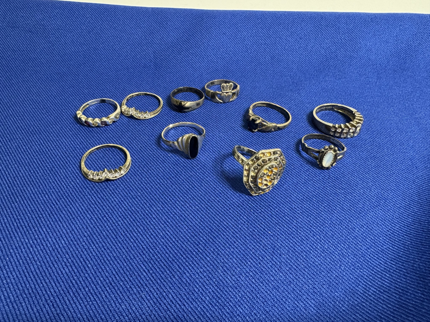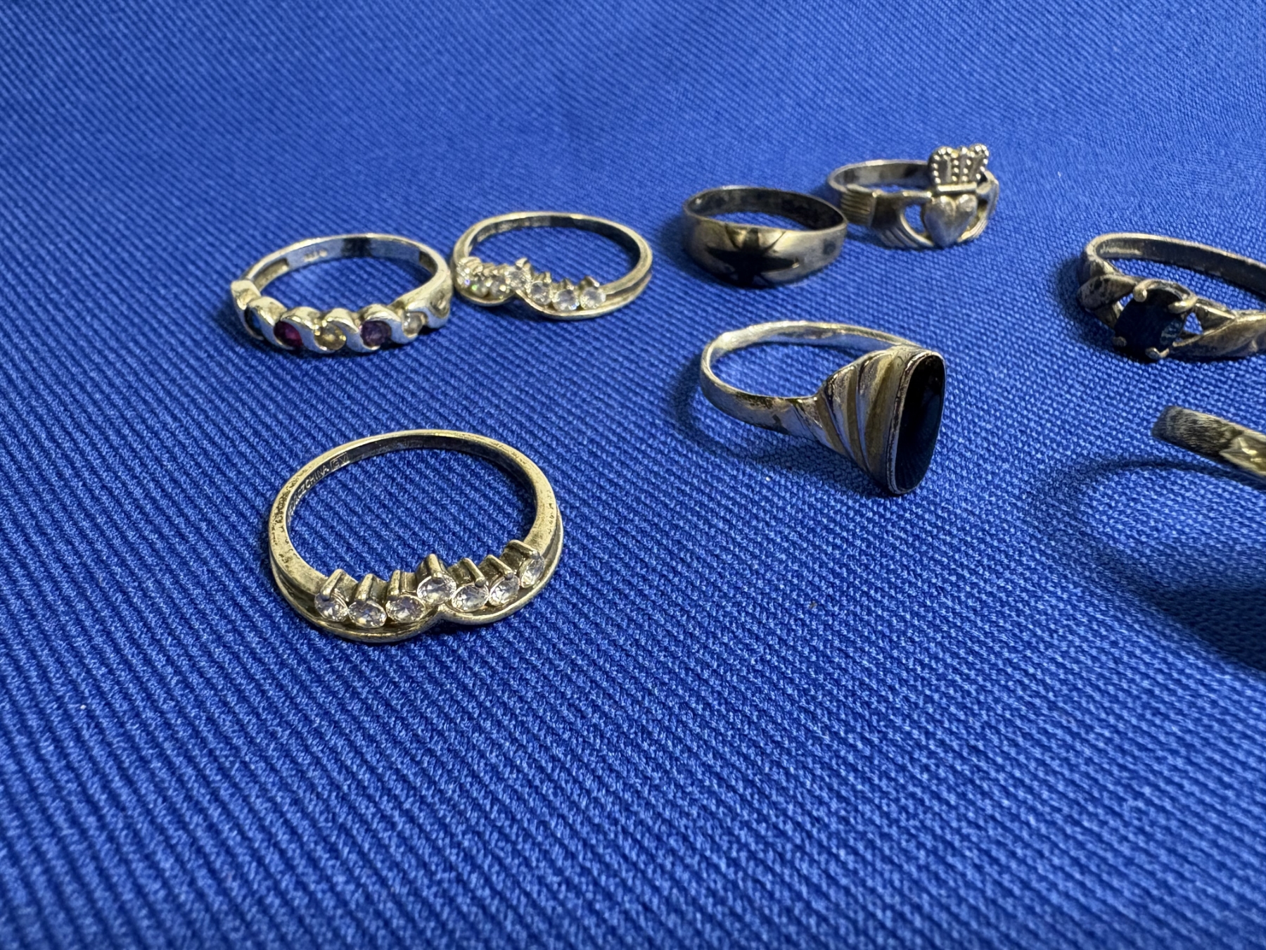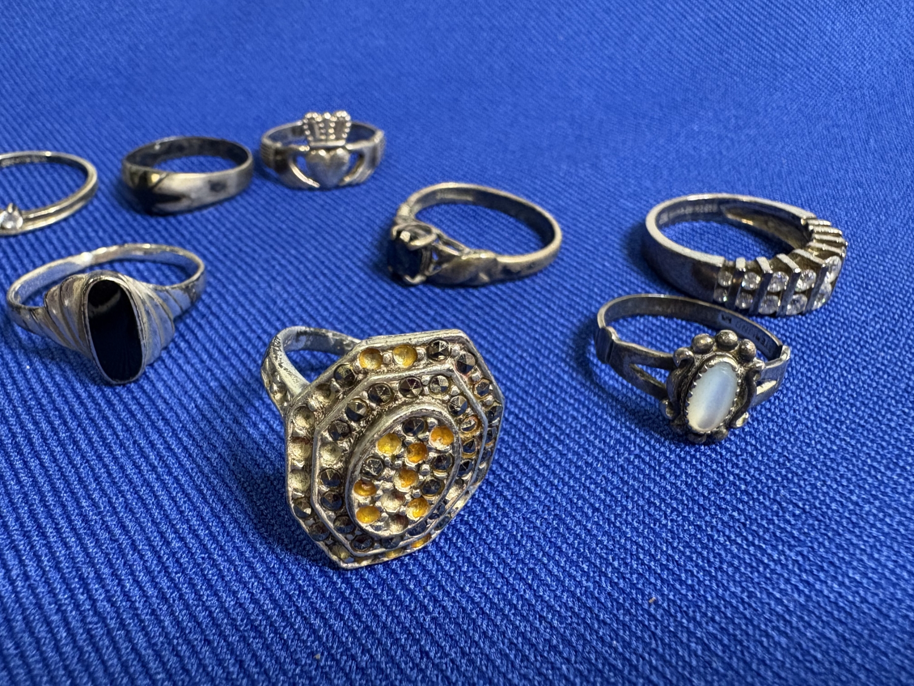Sterling Silver Rings - 10 total - Total Weight 29.3 Grams - Various Sizes