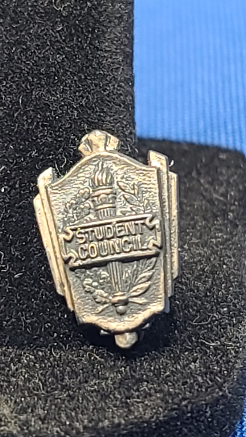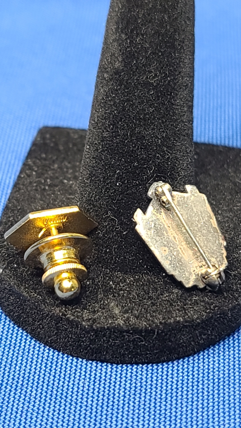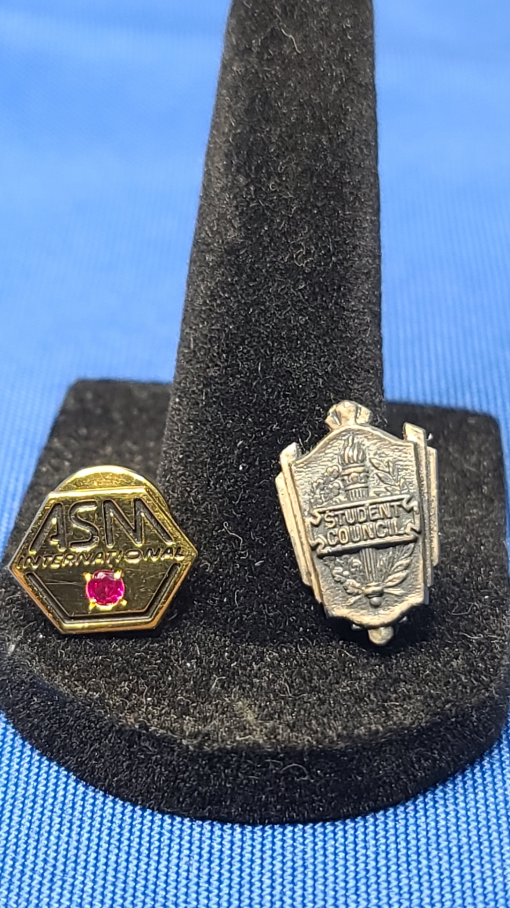 Sterling Silver Student Council Pin & Gold Filled ASM Lapel Pin With Pink Stone - Weights In Description