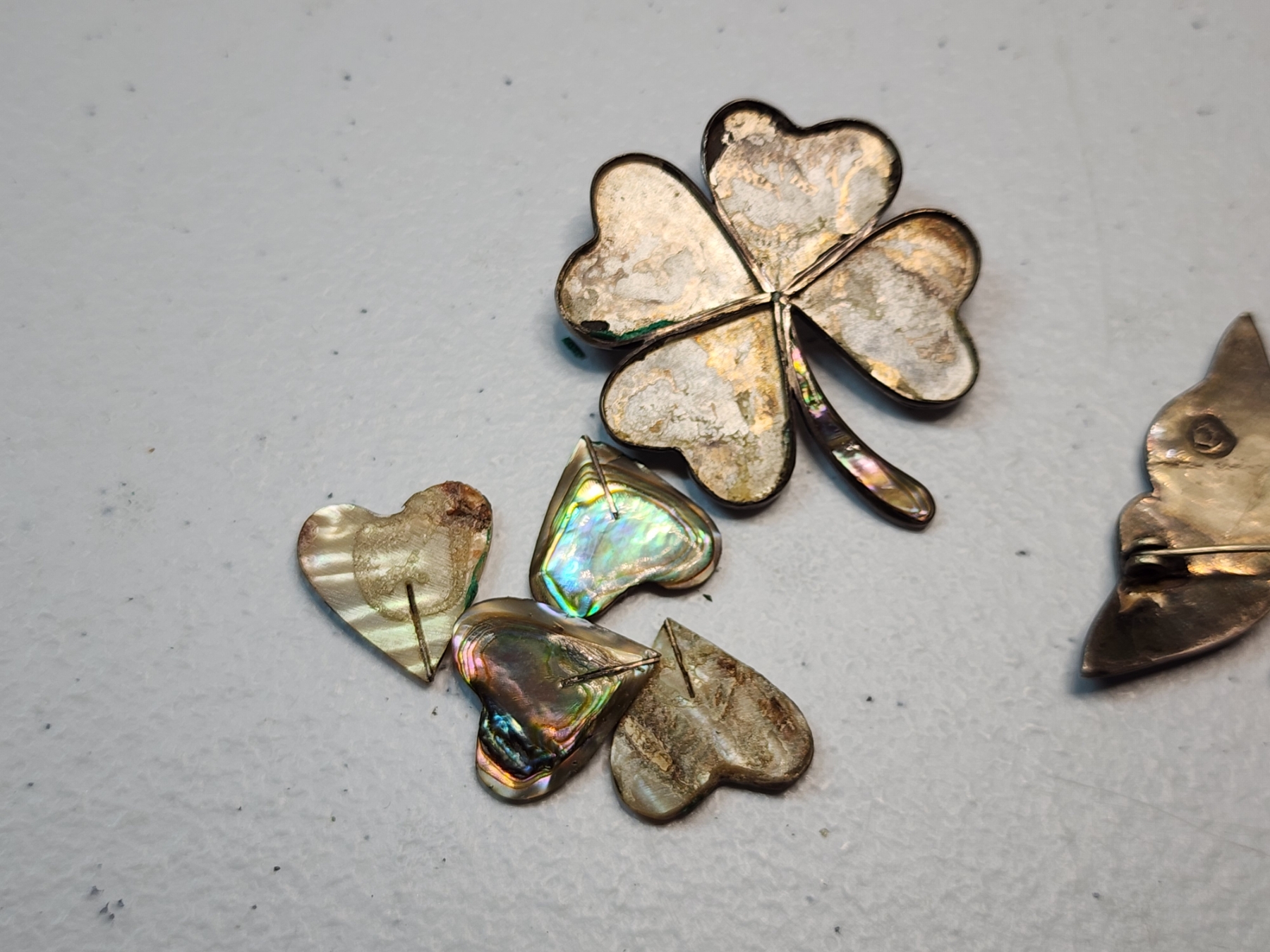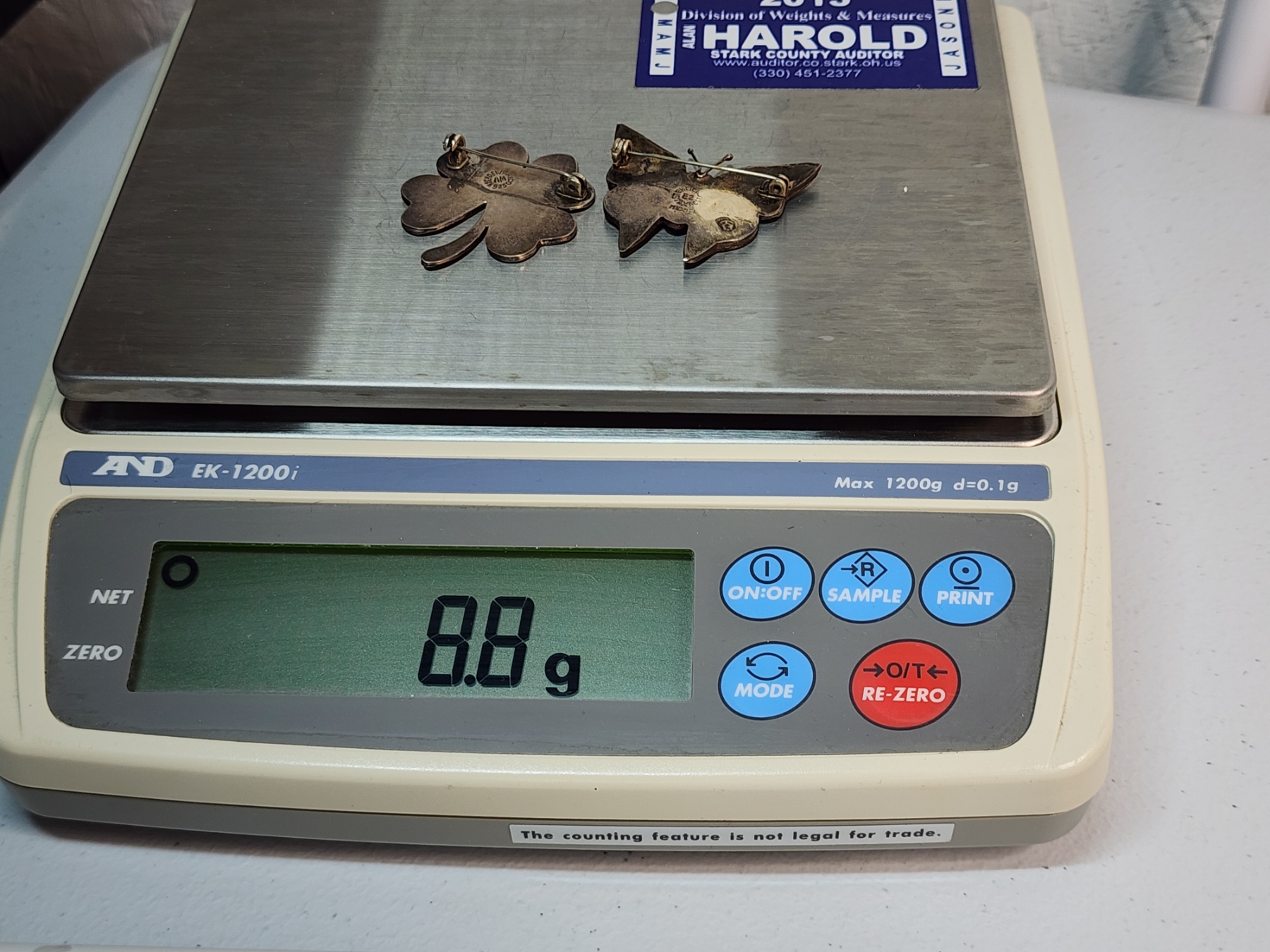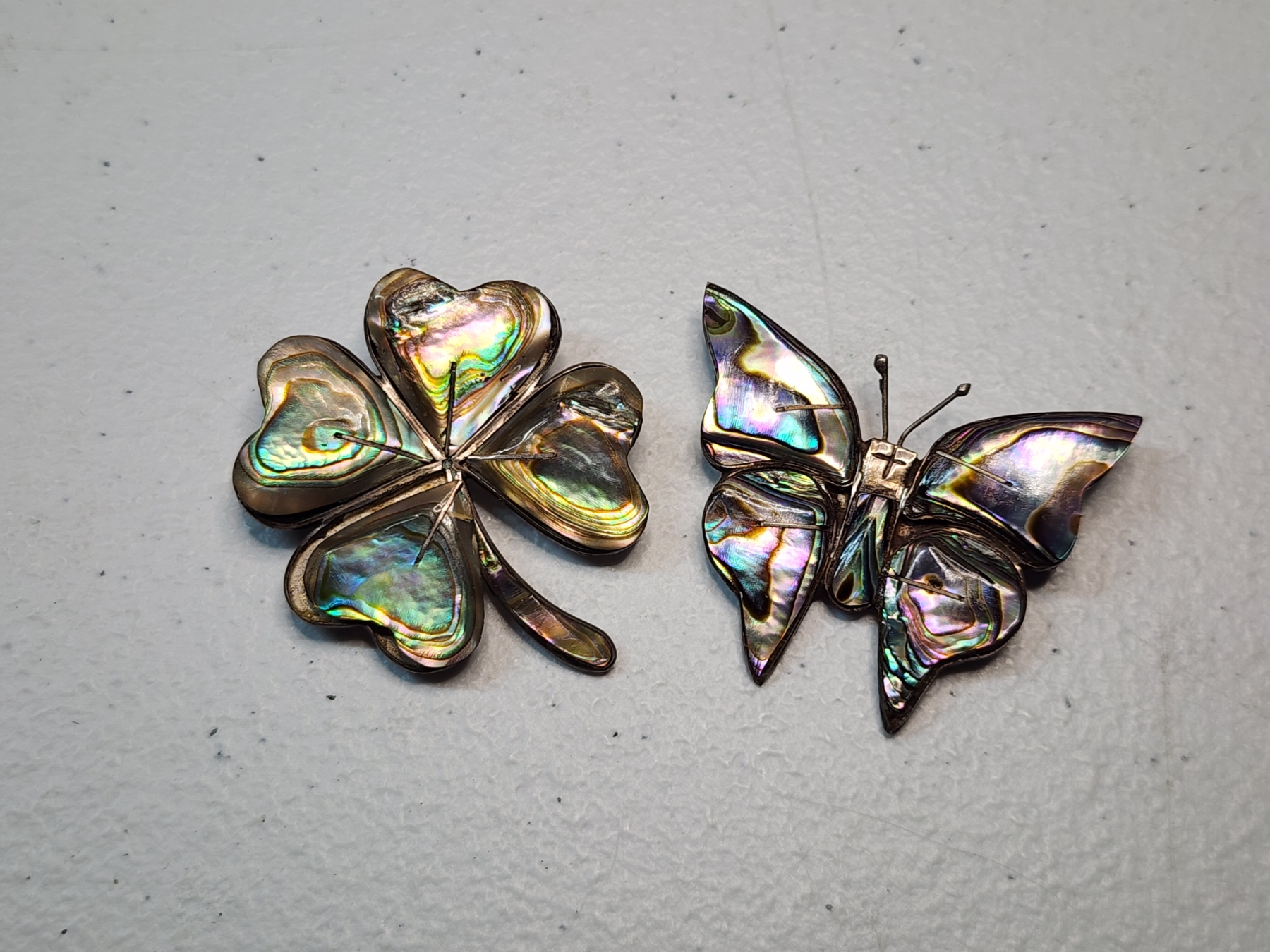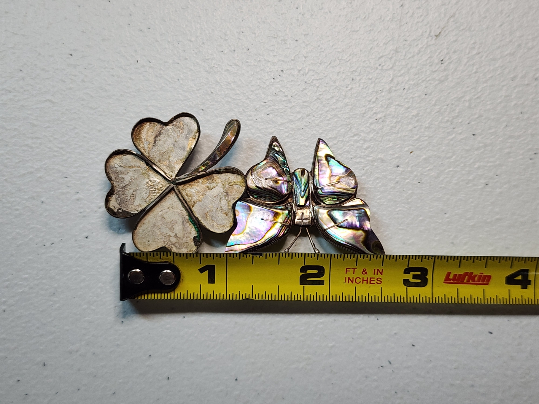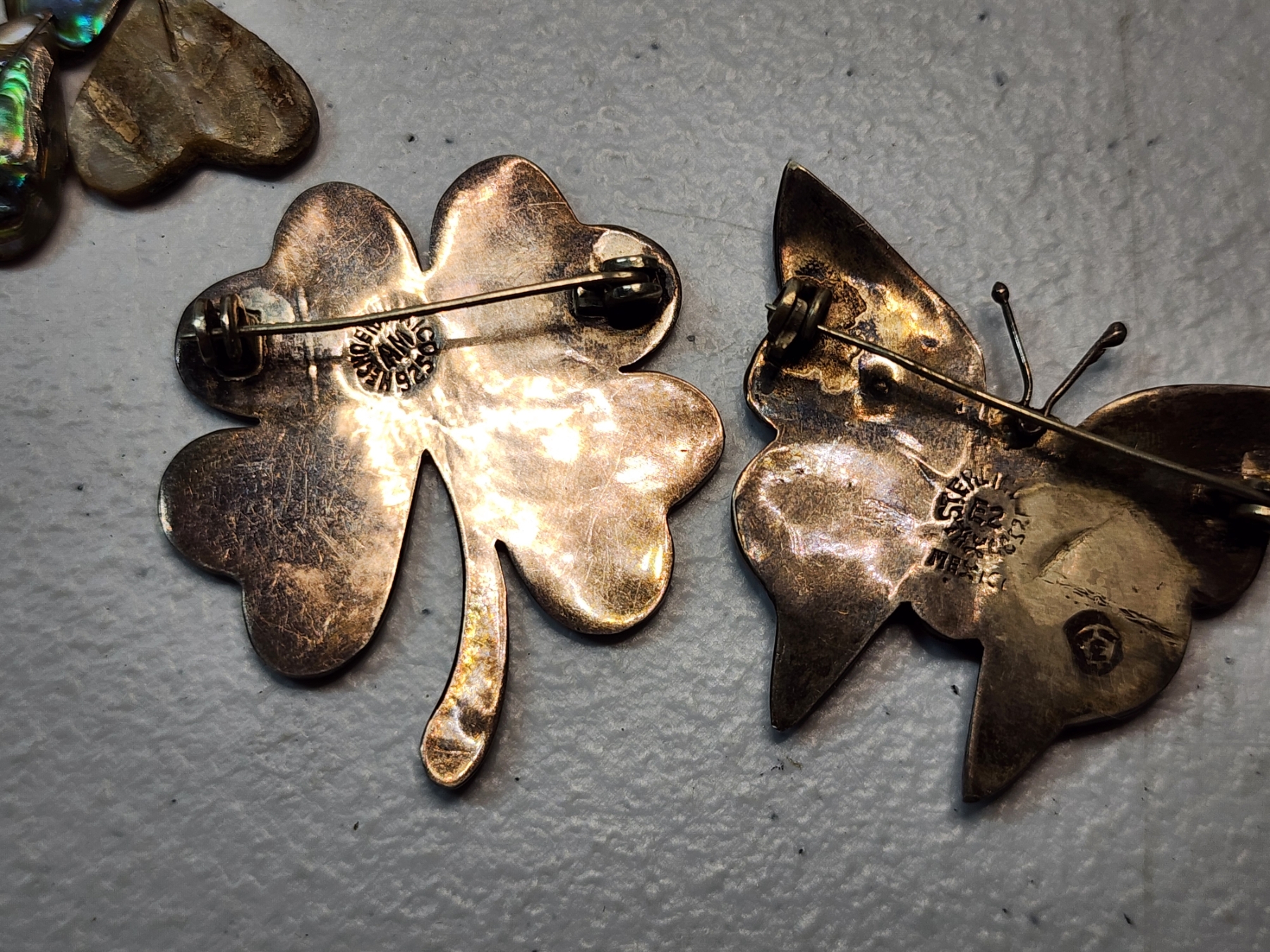 Sterling Silver and Alabone 4-Leaf Clover and Butterfly Brooches TW: 8.8g