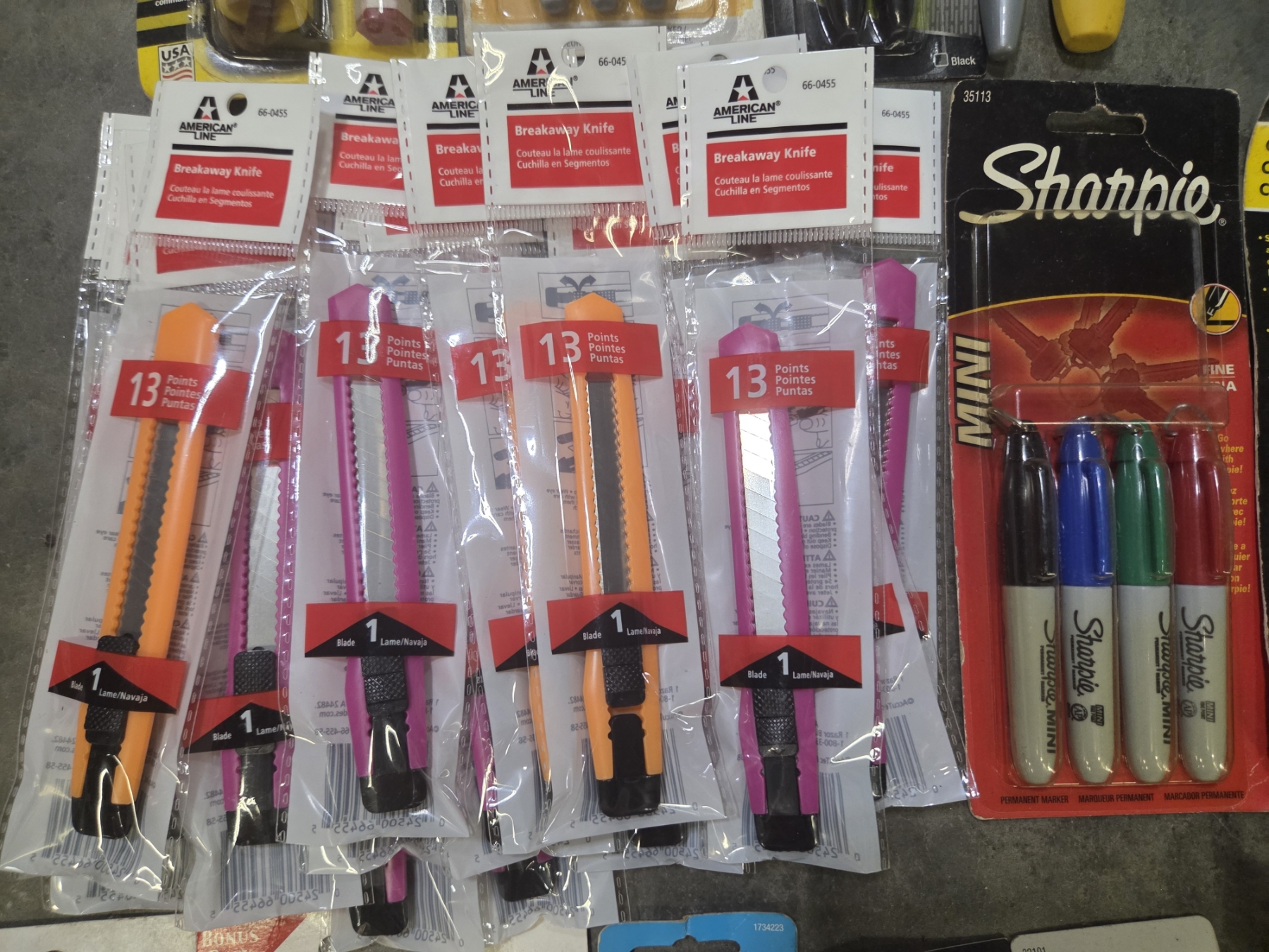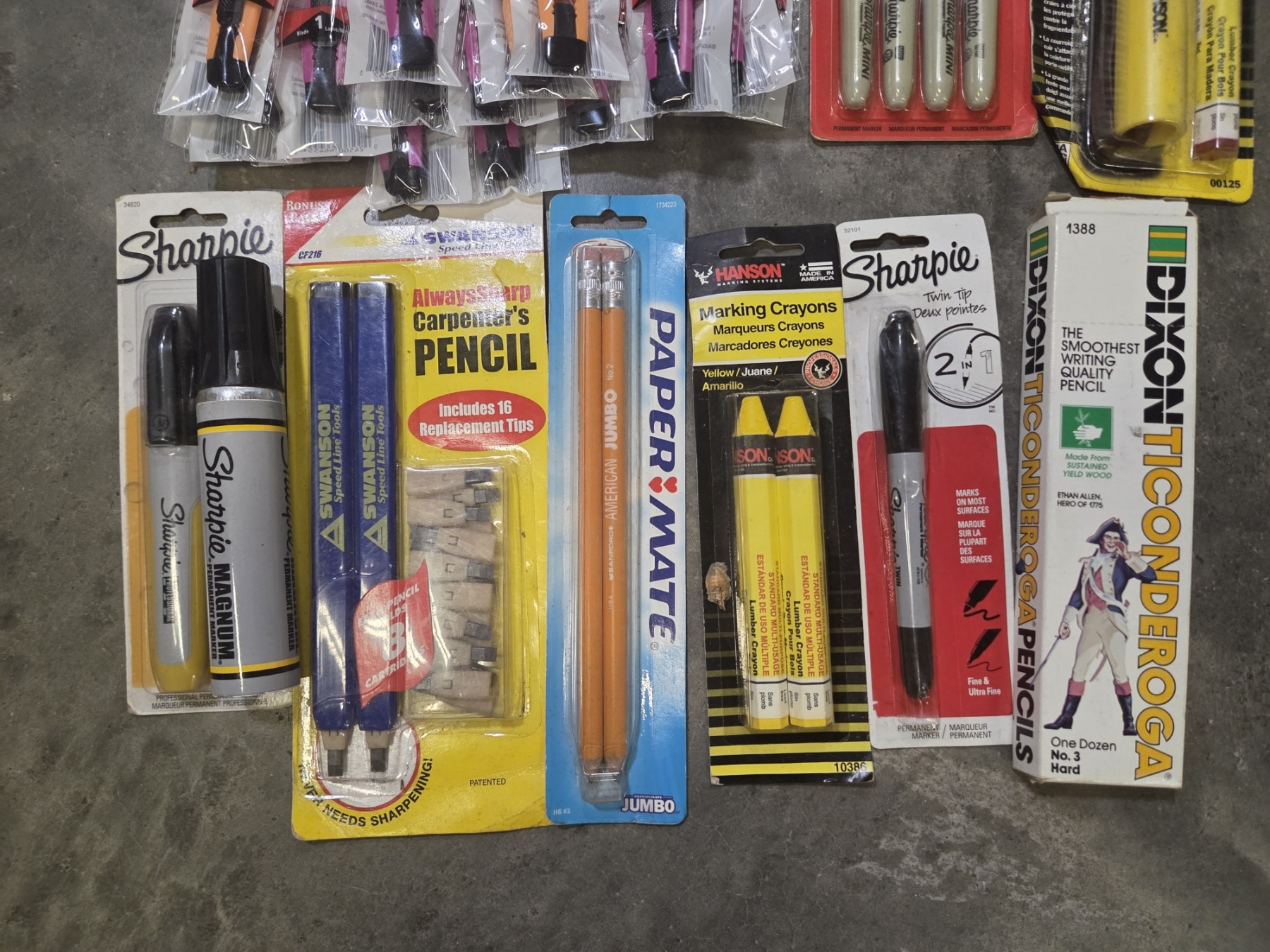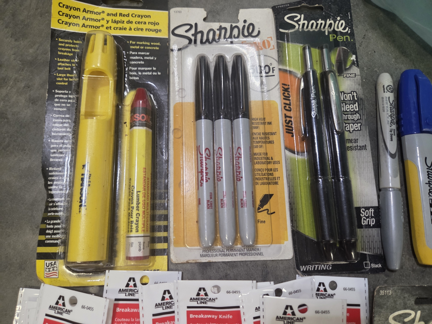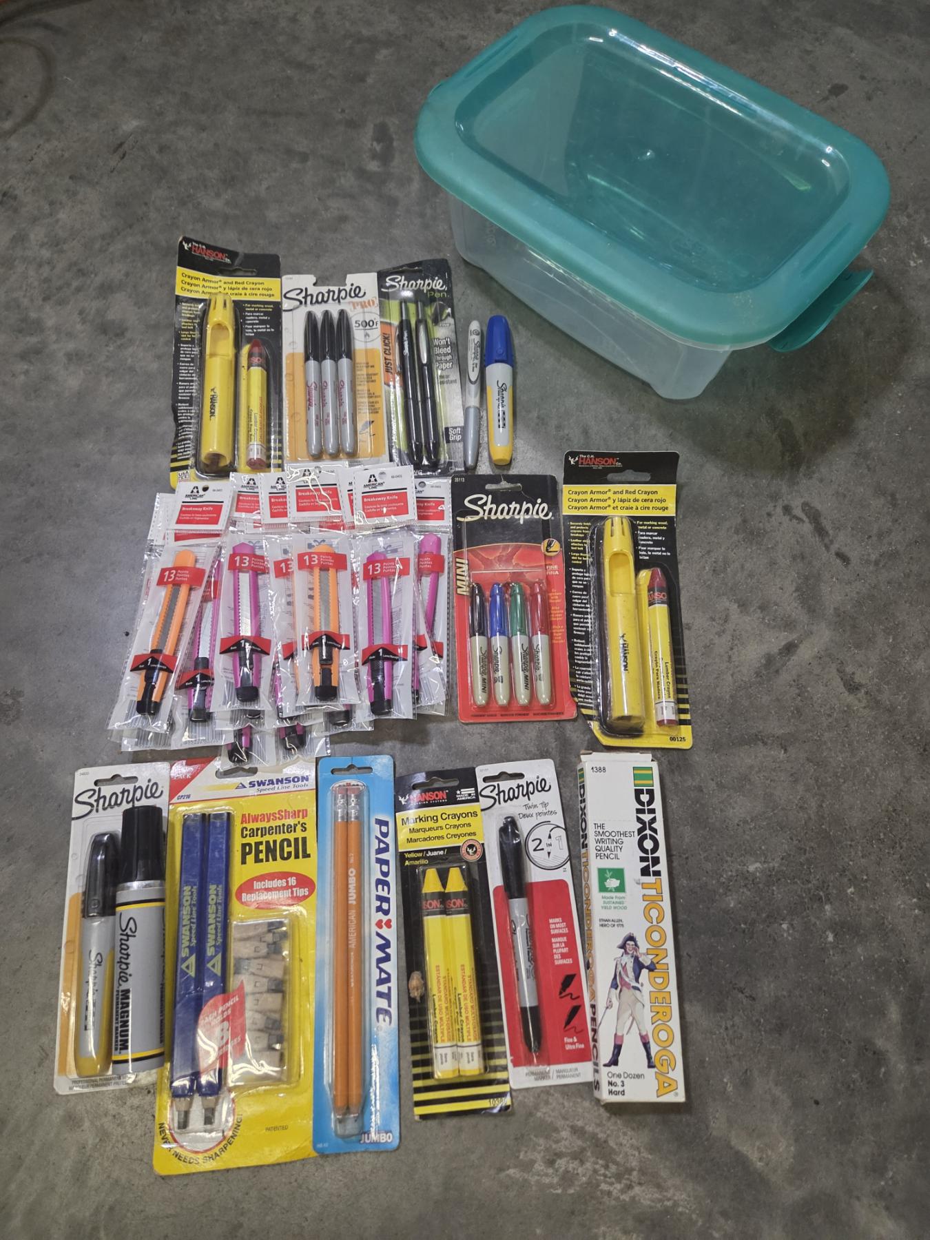 Storage Container With All New Sharpies, Pencils, Disposable Breakaway Knives & More