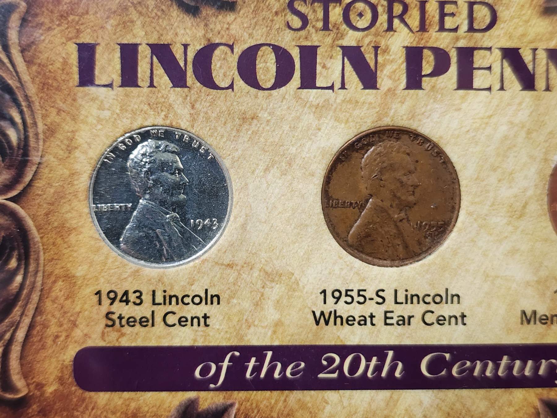 Storied Lincoln Pennies of the 20th Century Carded Penny Display