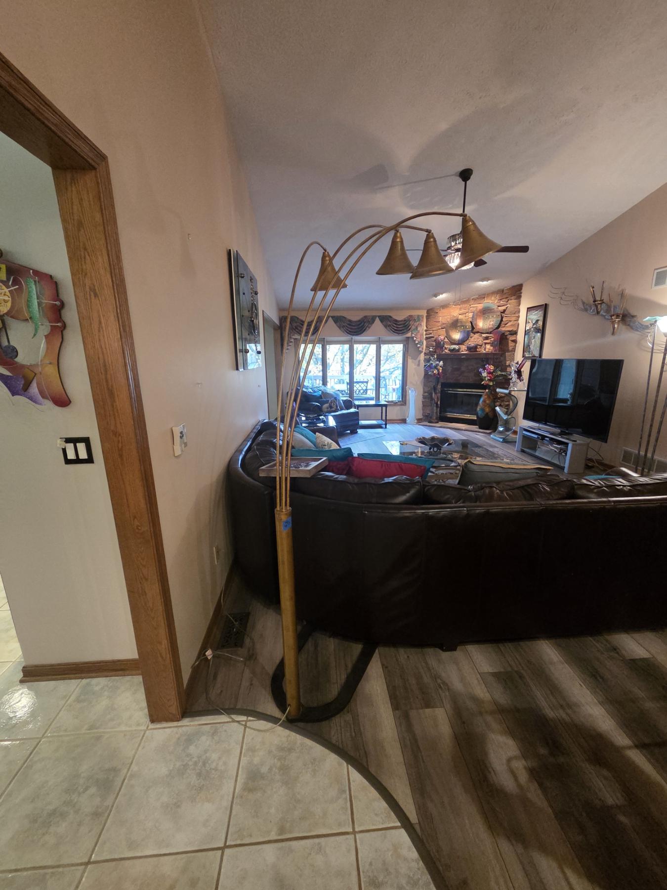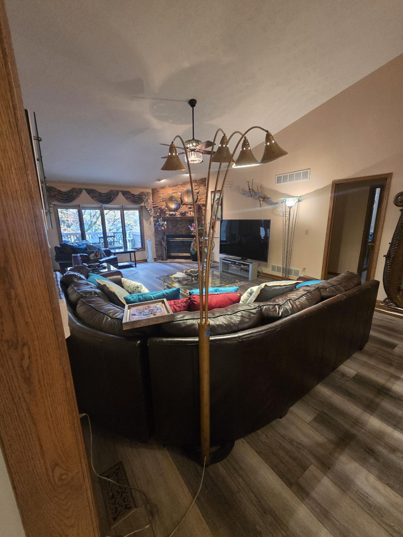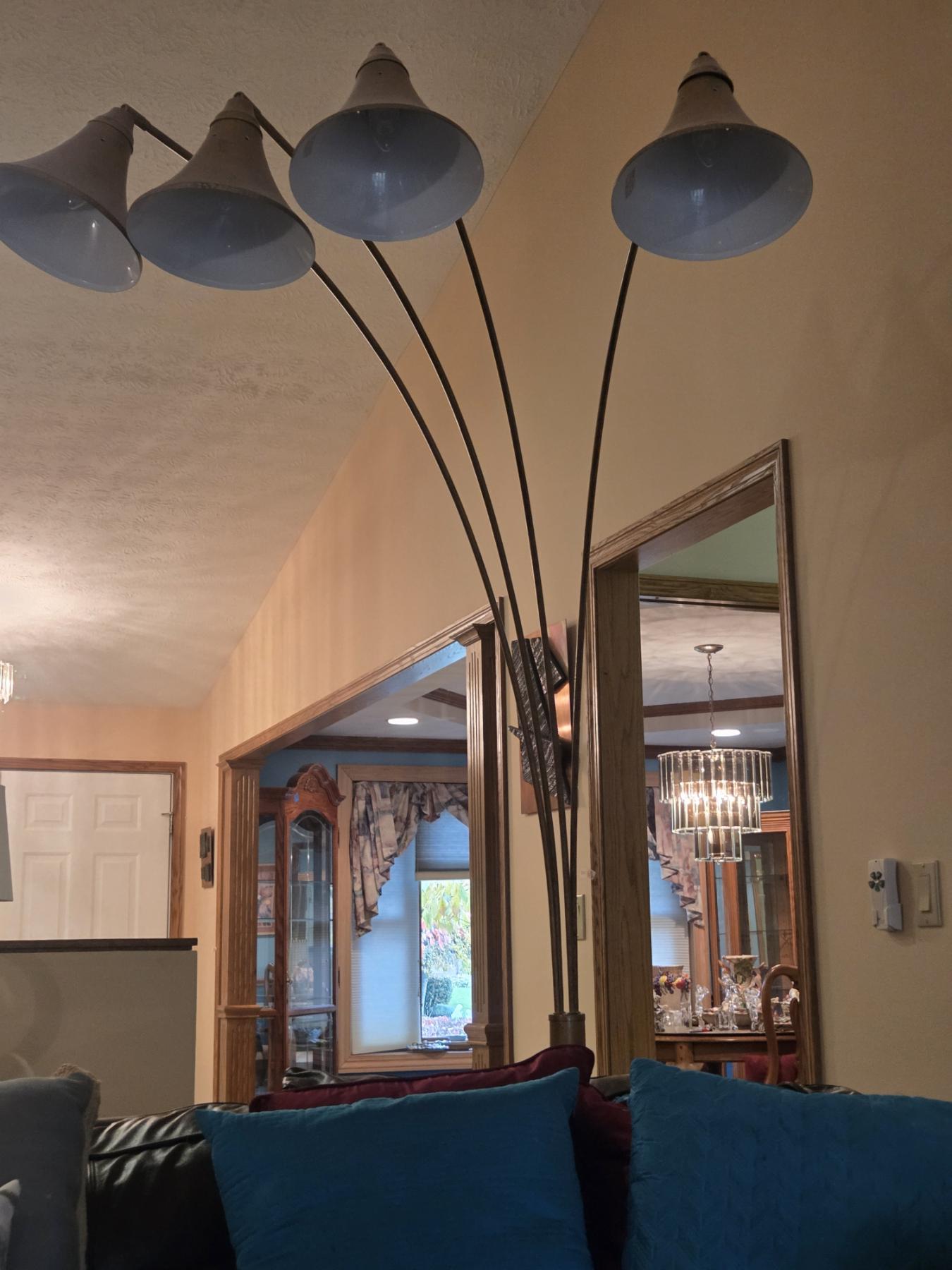 Stunning And Functional 8ft, Brass Tone Adjustable Floor Sofa Lamp