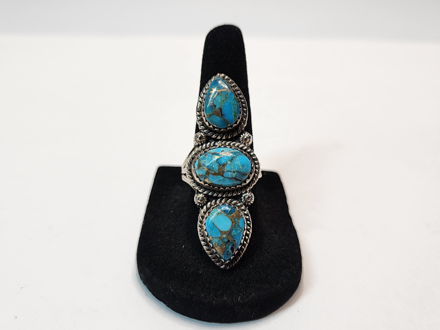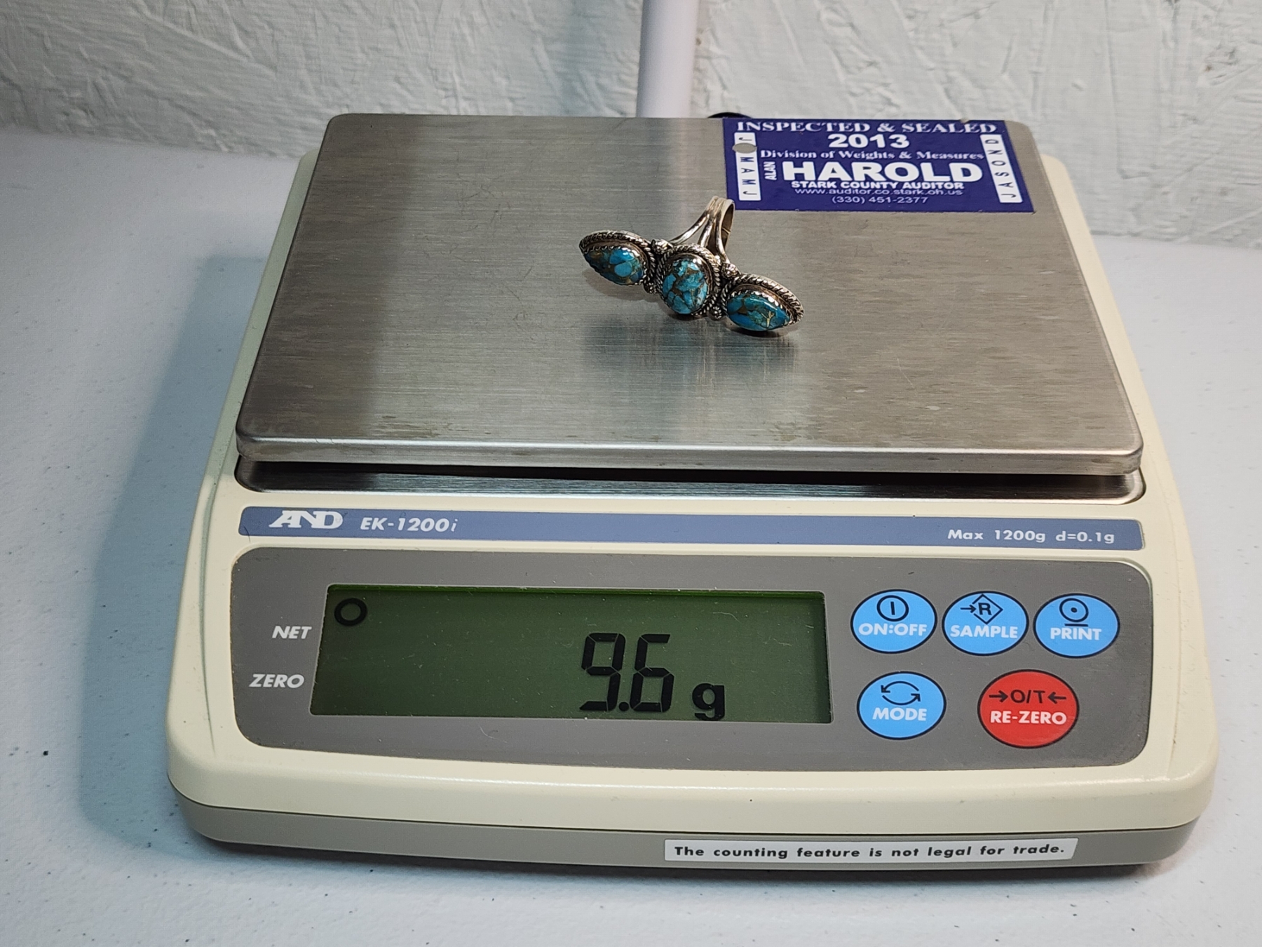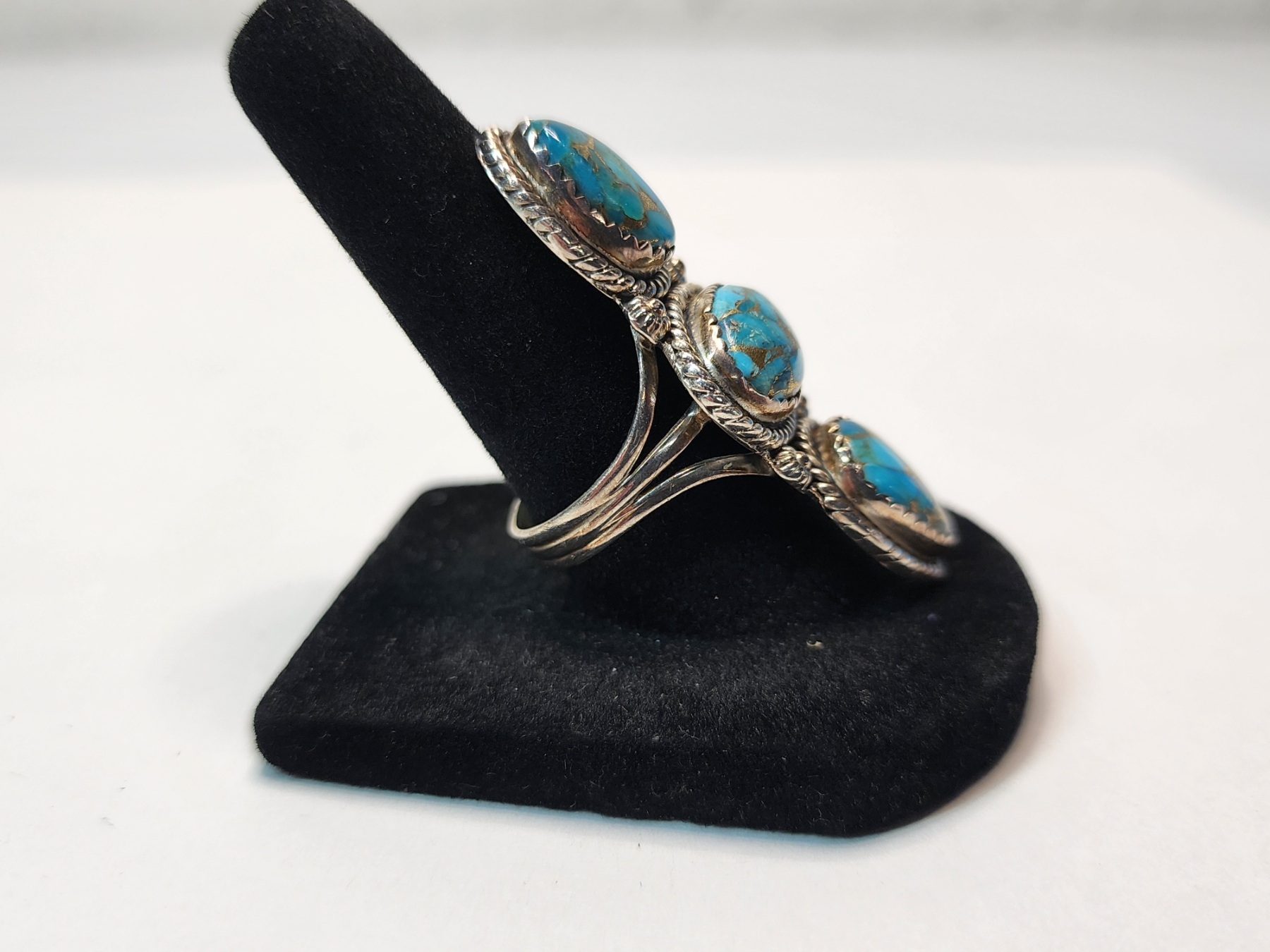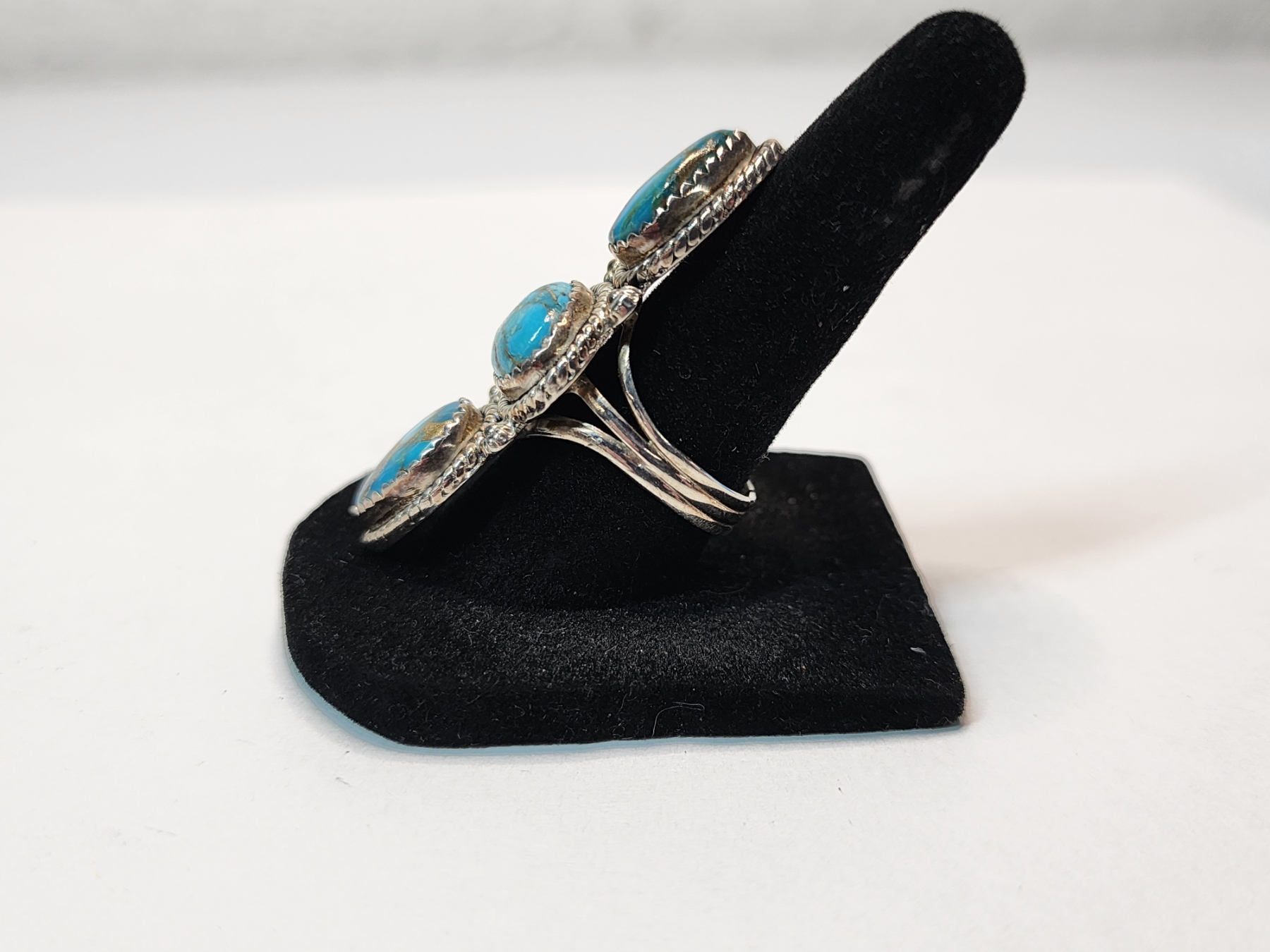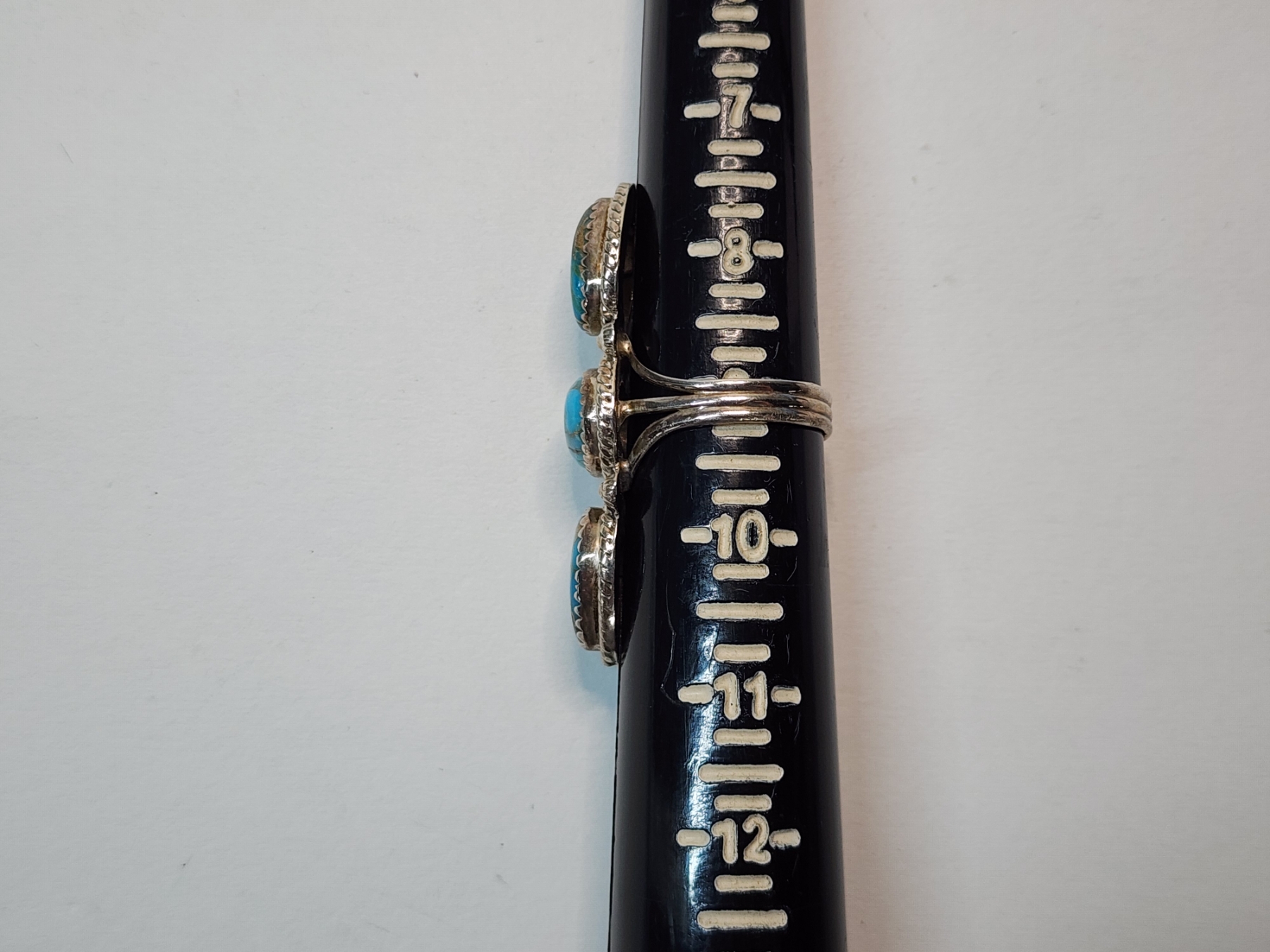 Stunning Sterling Silver Statement Ring With Three Turquoise Stones - Size 9 - TW: 9.6g