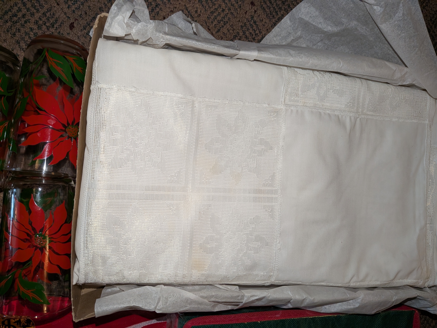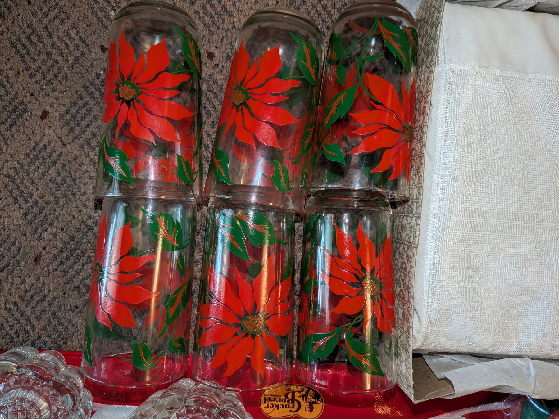Stunning Vintage Pointsetta Water Glasses, Table Cover, Bowl, & More