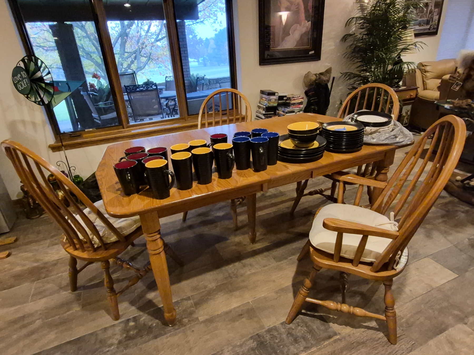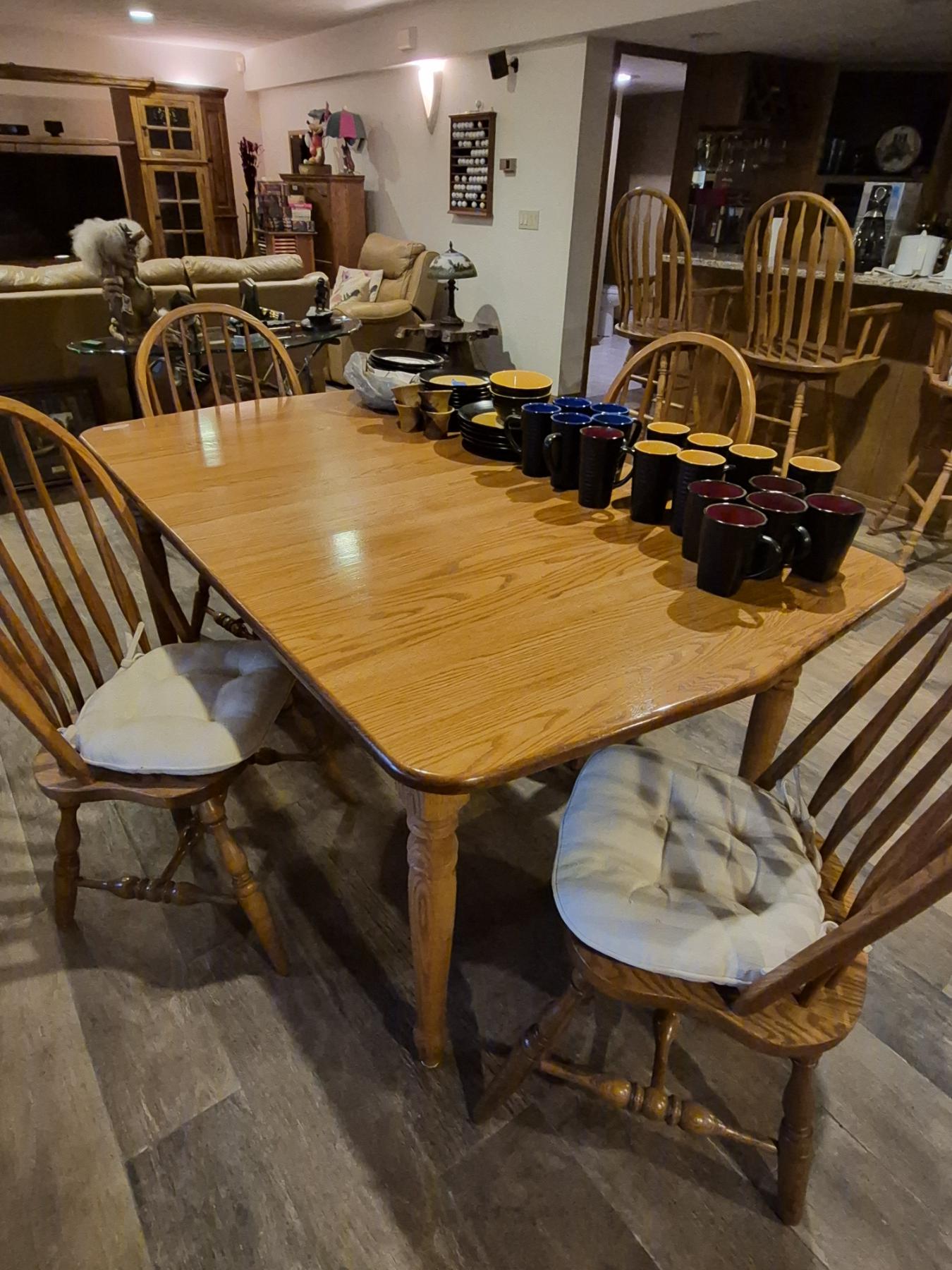 Superb Solid Hardwood Rectangular Table & 4 Chairs As Shown - 68 x 44 with removable leave included