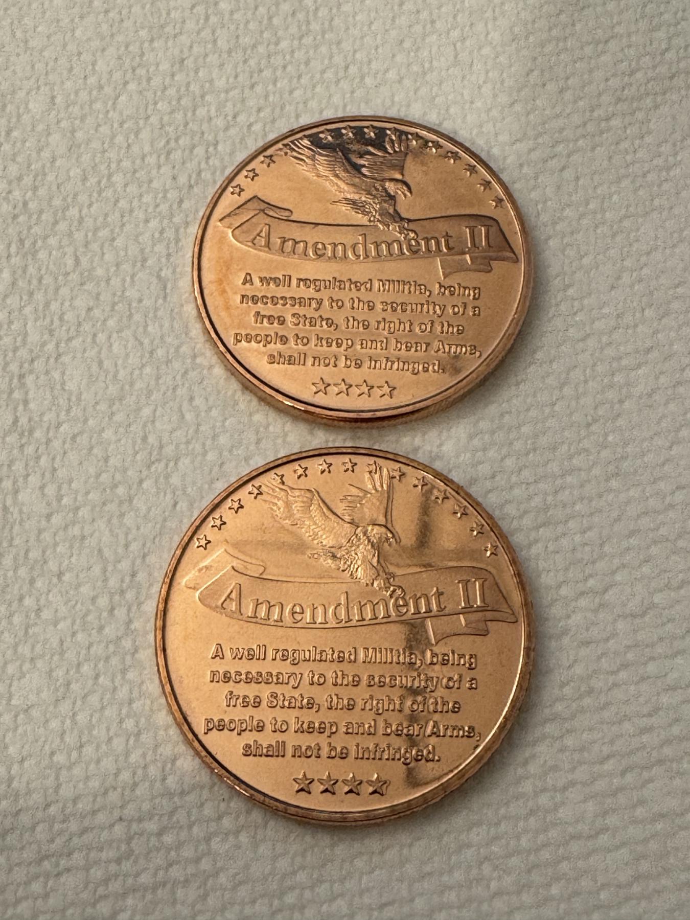 TWO - 2nd Amendment 1 oz .999 Fine Copper Round Coins - Brilliant Uncirculated - Limited Edition