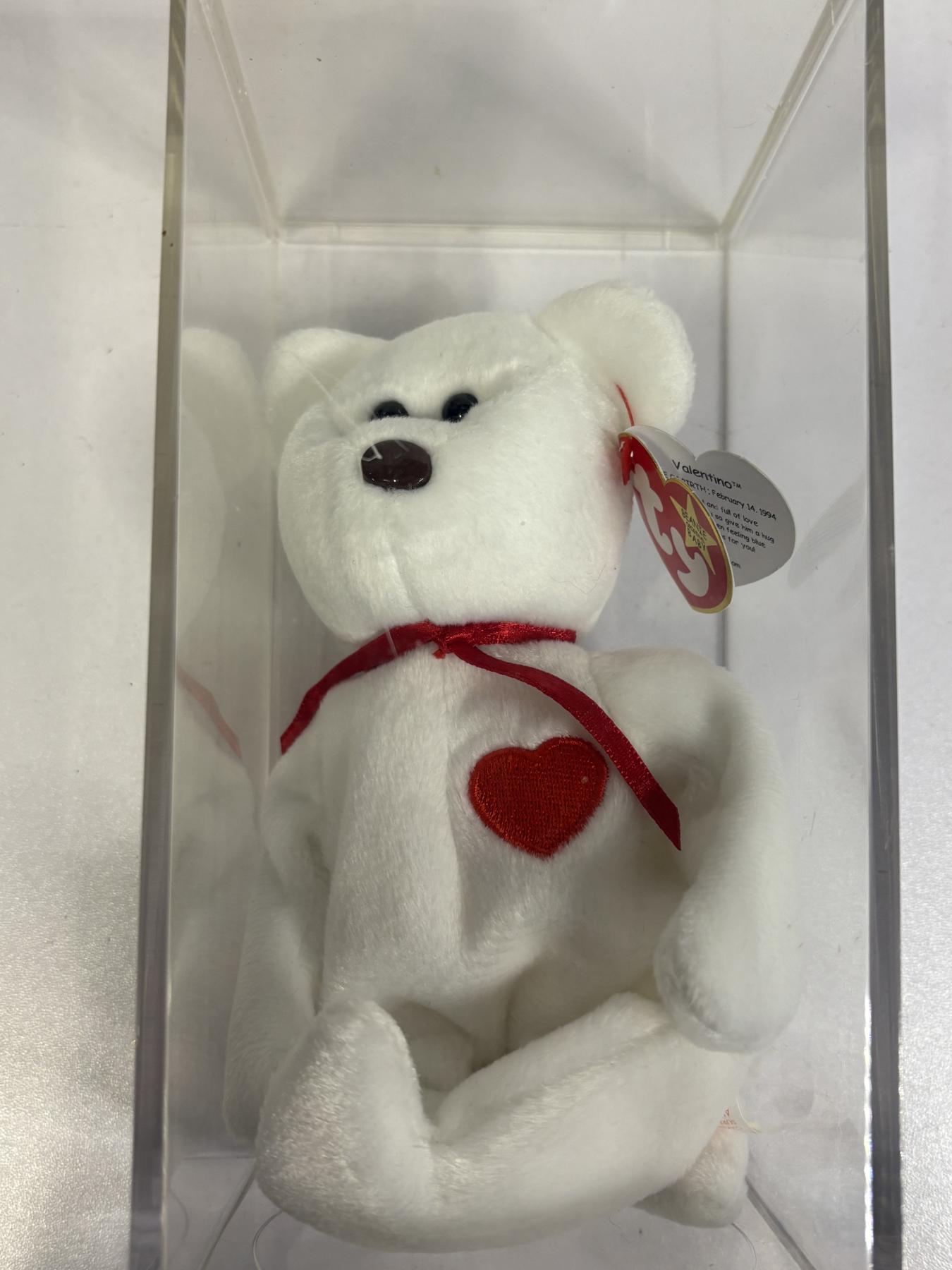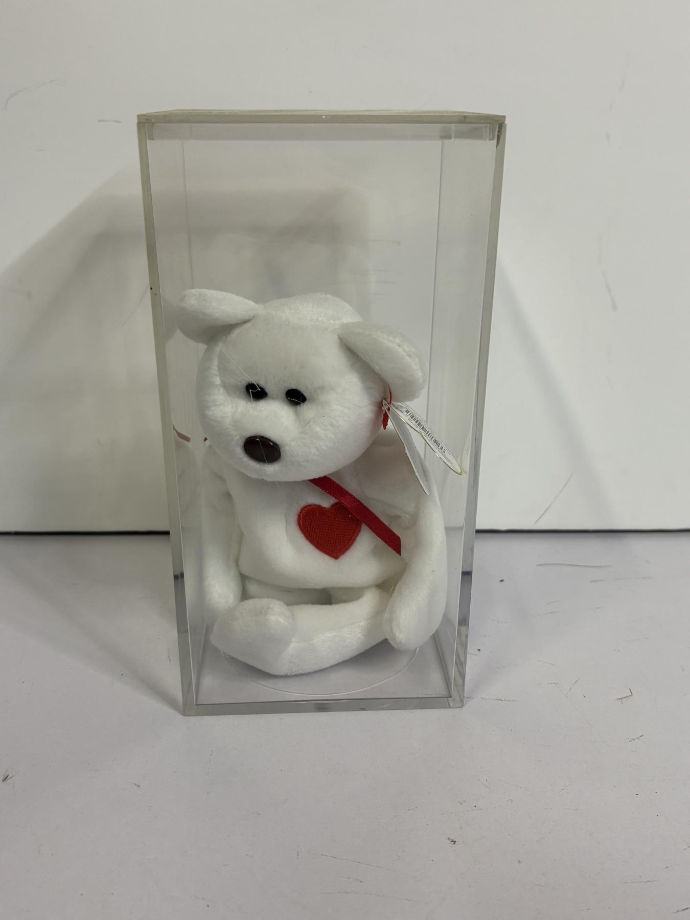 TY Beanie Baby Stuffed White Bear - Valentina in Plastic Case
